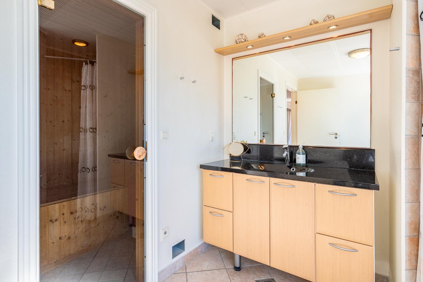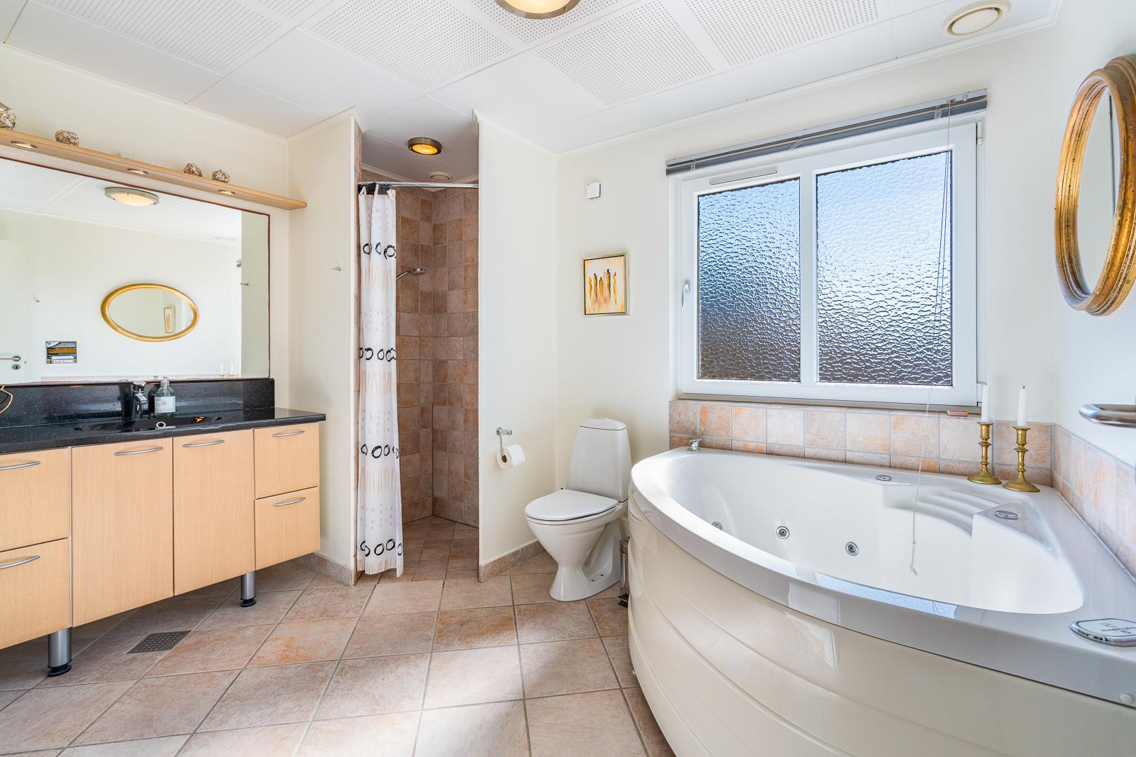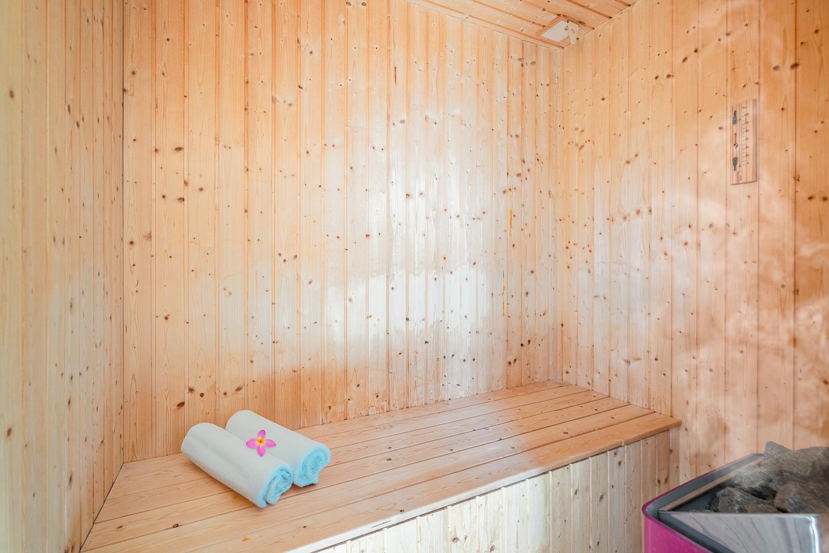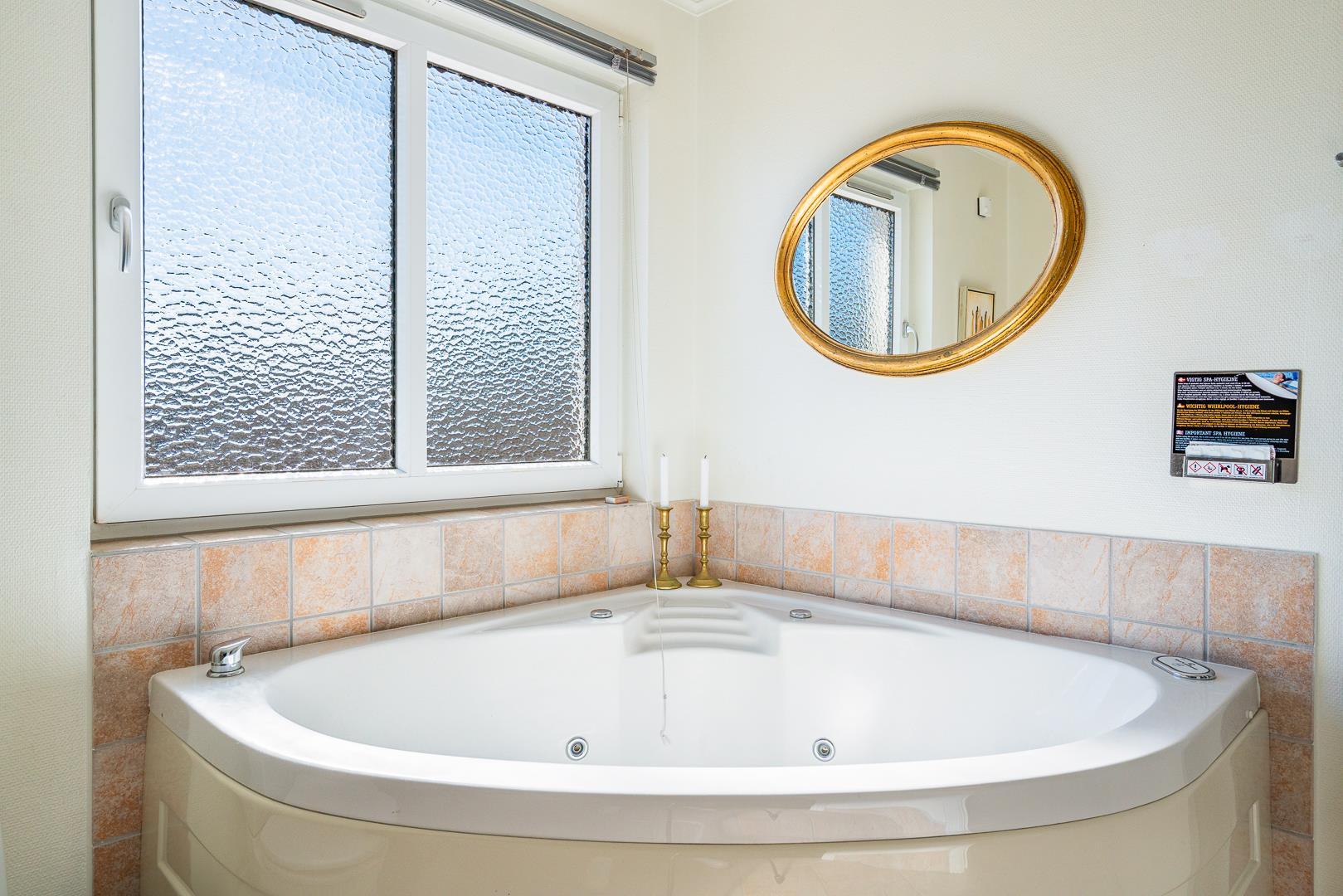 Nach einem Tag in der frischen Natur können Sie sich ein wenig Wellness gönnen. Das helle Badezimmer im Erdgeschoss bietet sowohl eine Sauna als auch einen Whirlpool – ideal, um Verspannungen zu lösen und neue Energie zu tanken.