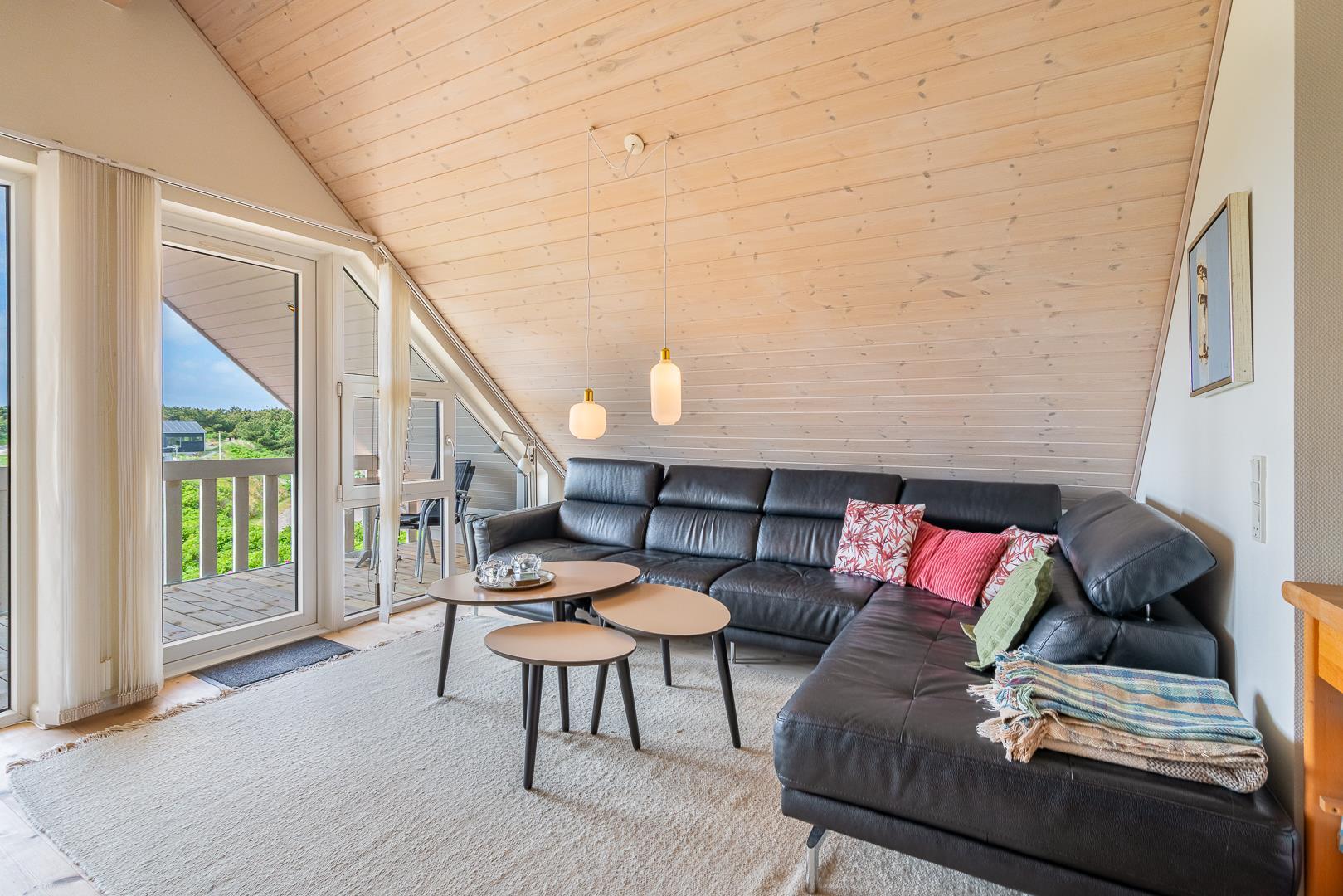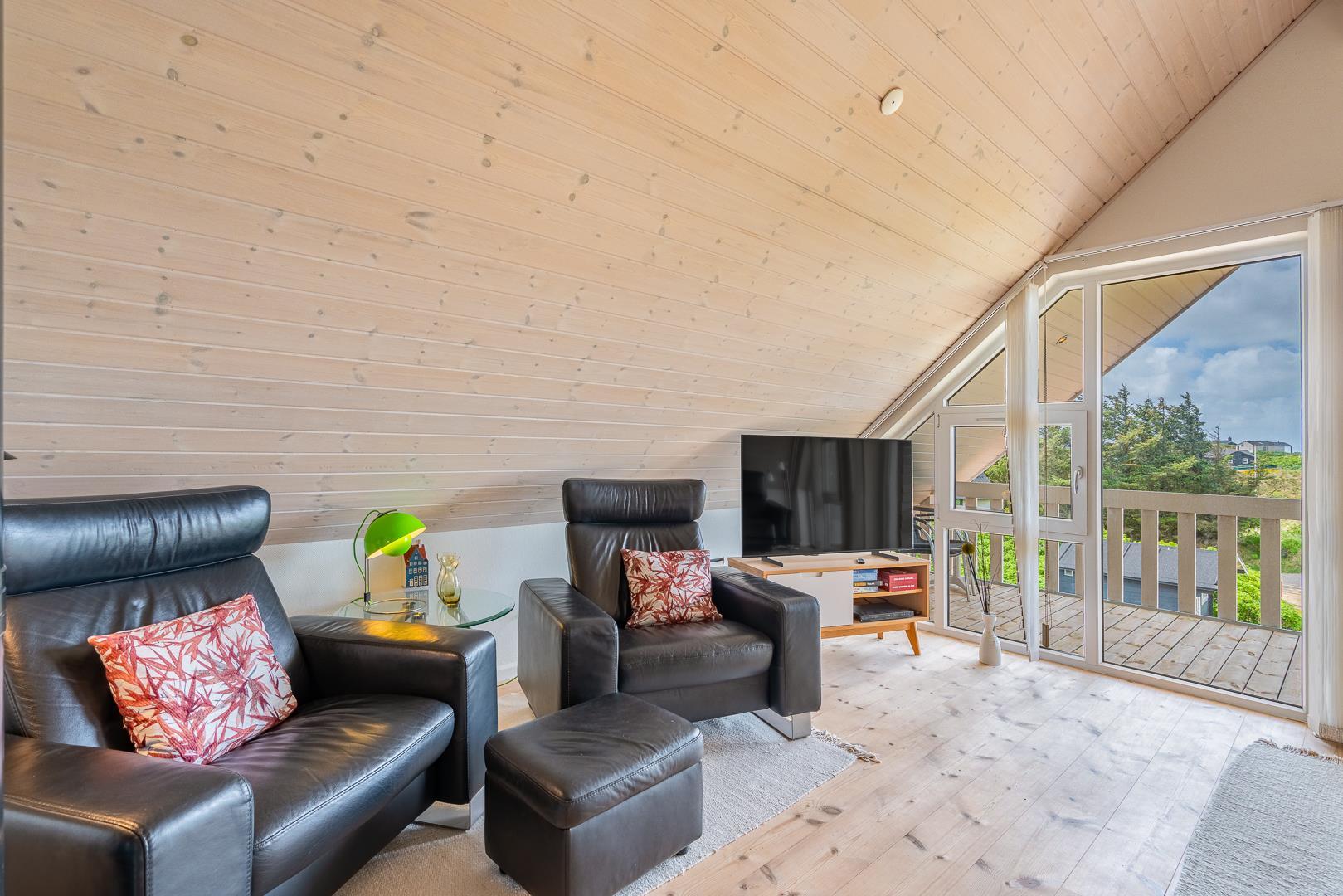 Im Obergeschoss gibt es ein zusätzliches TV-Wohnzimmer mit Zugang zu einem überdachten Balkon. Hier können Sie die Aussicht genießen oder einen ruhigen Abend verbringen.
