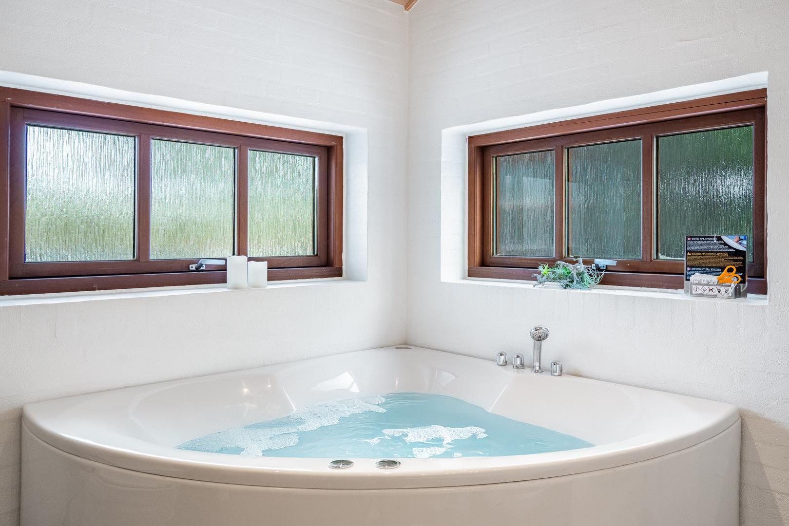 Die drei Schlafzimmer sind alle mit komfortablen Boxspringbetten ausgestattet. Das große Badezimmer bietet sowohl Whirlpool als auch Sauna – perfekt zum Entspannen. Zusätzlich gibt es ein weiteres Bad mit Dusche und WC.