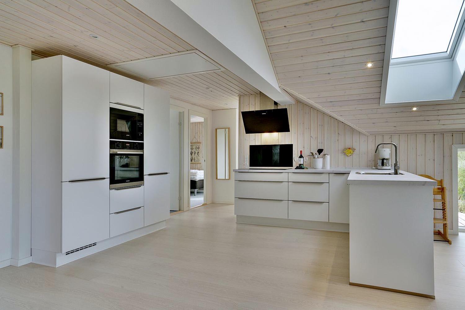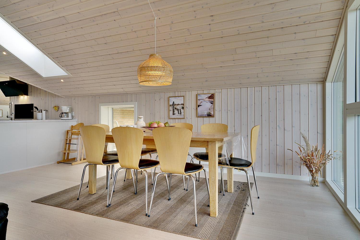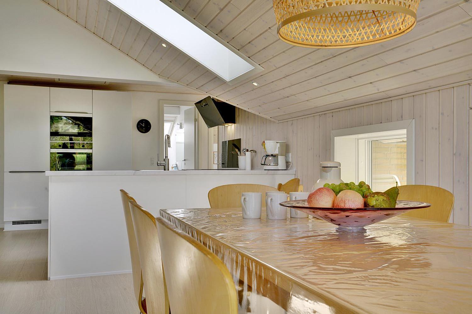 Das Ferienhaus im Ligustervej 6 hat eine helle und gemütliche Atmosphäre mit hellen Wänden und einer großen Fensterfront. Das Haus wurde 2021 gründlich renoviert mit neuem Bad, neuer Küche, Aufenthaltsraumund großem Eingangsbereich mit viel Platz für Schuhe und Kleidung. Die Küche liegt in offener Verbindung mit dem Wohnzimmer, so dass die ganze Familie bei der Zubereitung des Essens zusammen sein kann. Es gibt ein zusätzliches Badezimmer mit Whirlpool und Sauna.