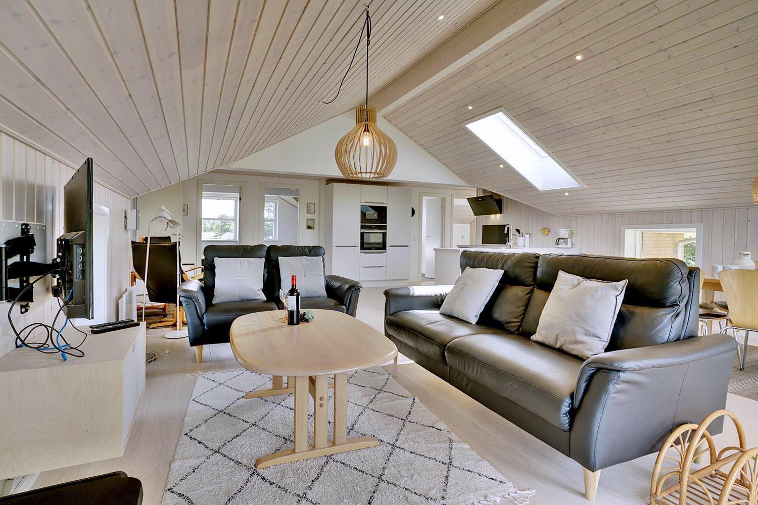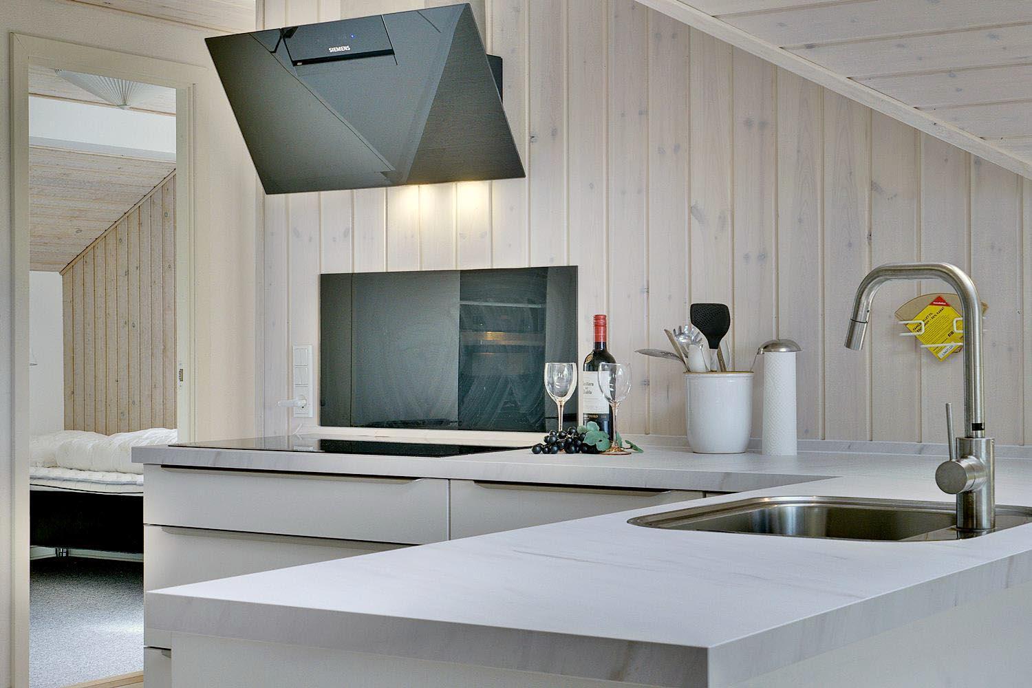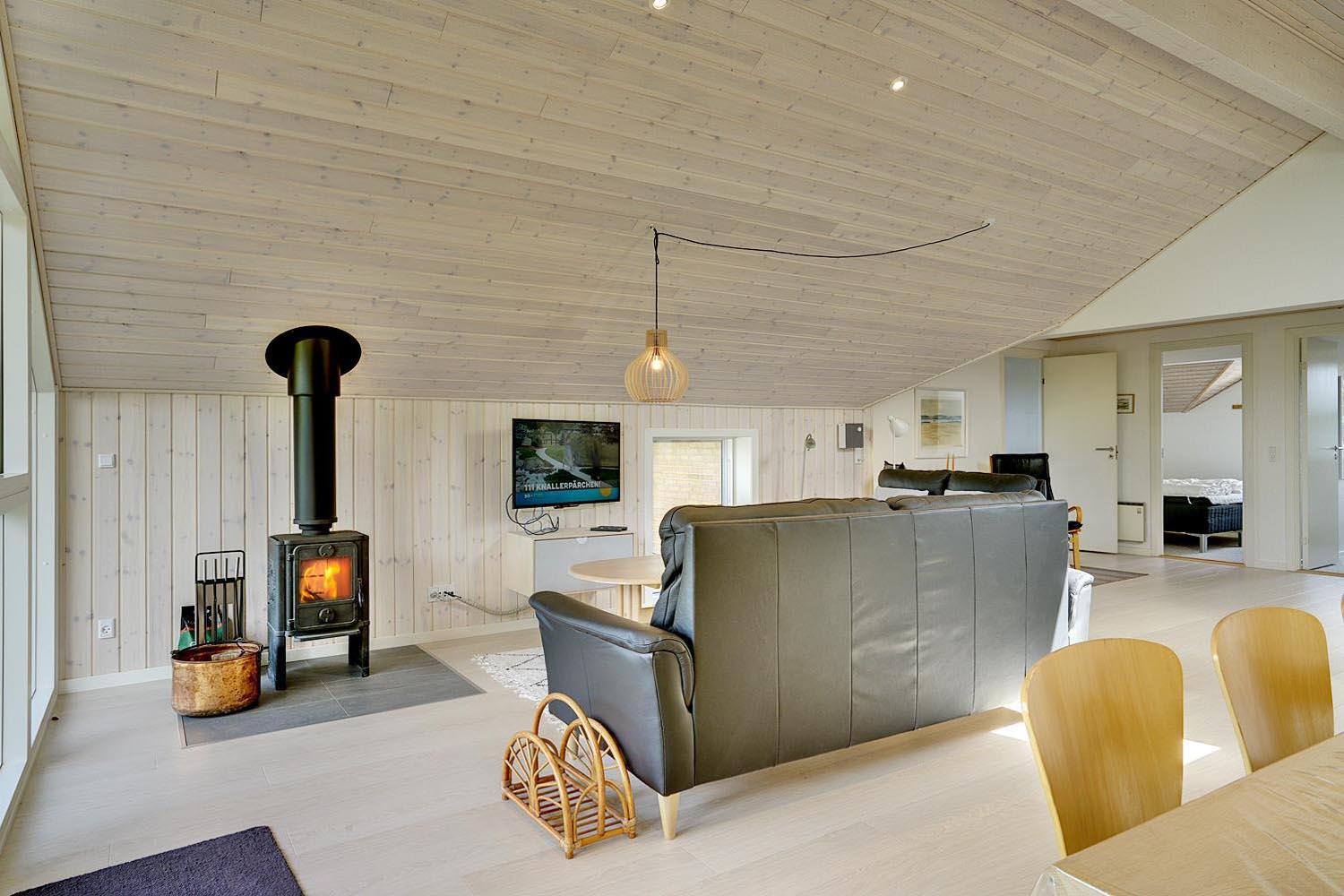 Das Ferienhaus im Ligustervej 6 hat eine helle und gemütliche Atmosphäre mit hellen Wänden und einer großen Fensterfront. Das Haus wurde 2021 gründlich renoviert mit neuem Bad, neuer Küche, Aufenthaltsraumund großem Eingangsbereich mit viel Platz für Schuhe und Kleidung. Die Küche liegt in offener Verbindung mit dem Wohnzimmer, so dass die ganze Familie bei der Zubereitung des Essens zusammen sein kann. Es gibt ein zusätzliches Badezimmer mit Whirlpool und Sauna.