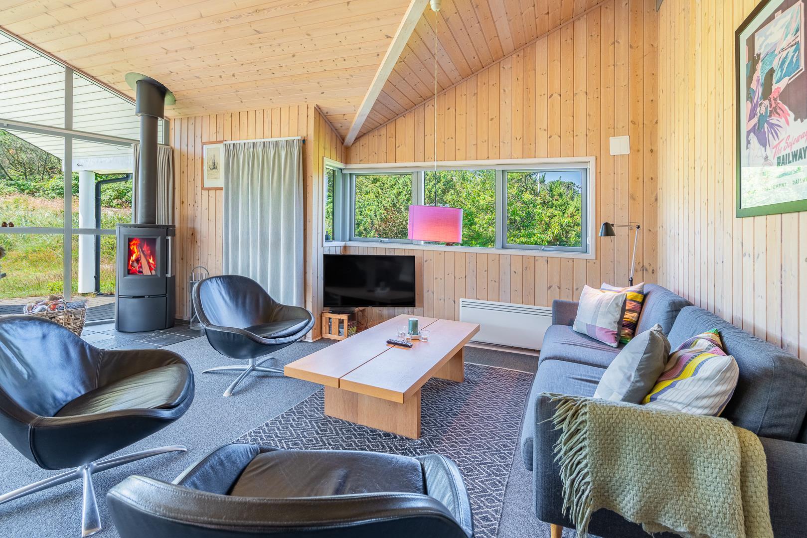 Tolles Ferienhaus in der ersten Dünenreihe nur 200m von der Nordsee. Um das Haus ist die fantastische Natur, die zu jeder Jahreszeit genossen werden kann. Zum Haus gehören sowohl offene als auch überdachte Terrassen. Badezimmer mit Sauna. Moderne Küche mit u. a. Spülmaschine. Die Stube ist ordentlich eingerichtet und liegt in Richtung Aussicht zur Terrasse. Gratis ADSL-Internetverbindung (eigener Computer muss mitgebracht werden). 2 Schlafräume mit Doppelbett und eines mit 2 Einzelbetten.