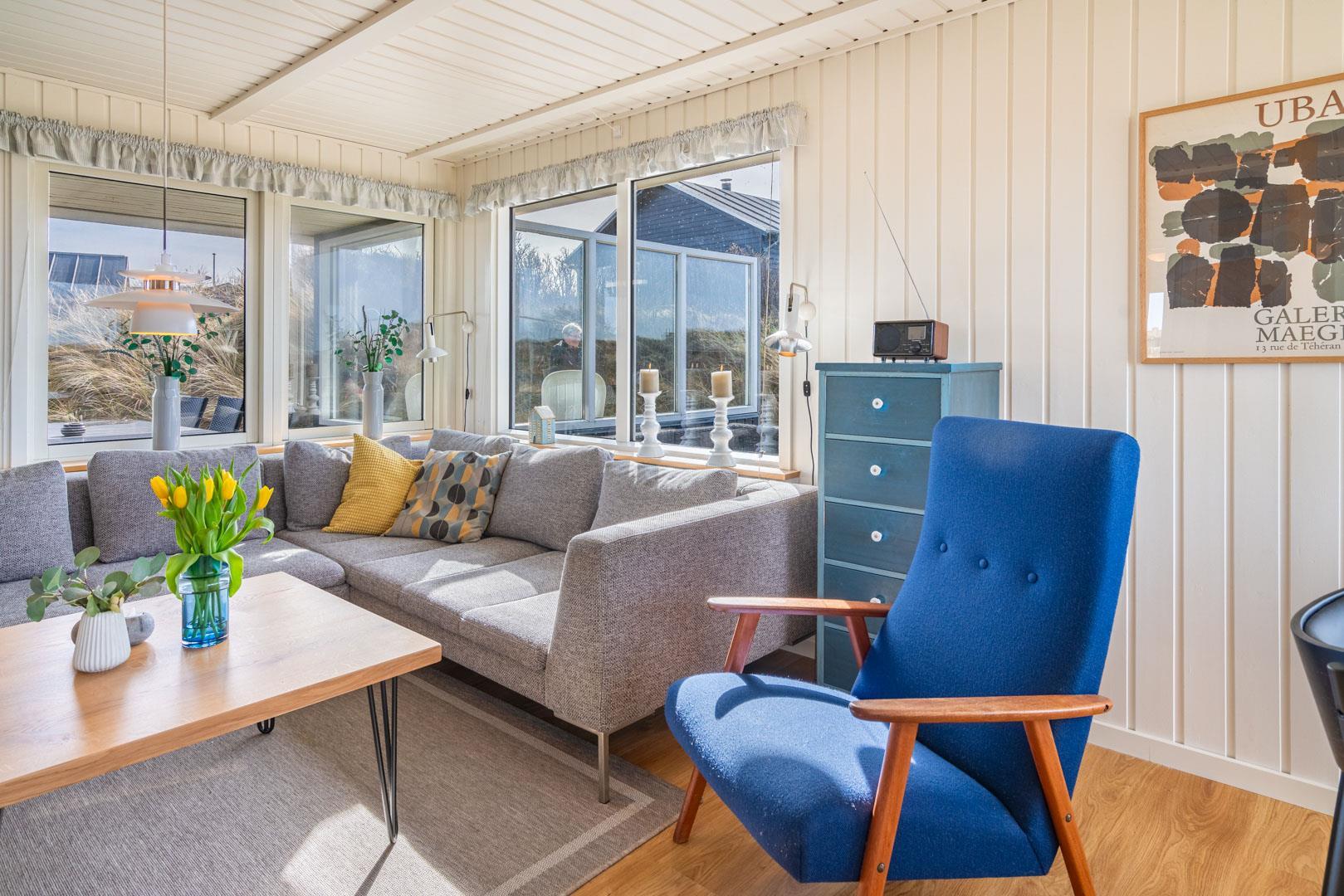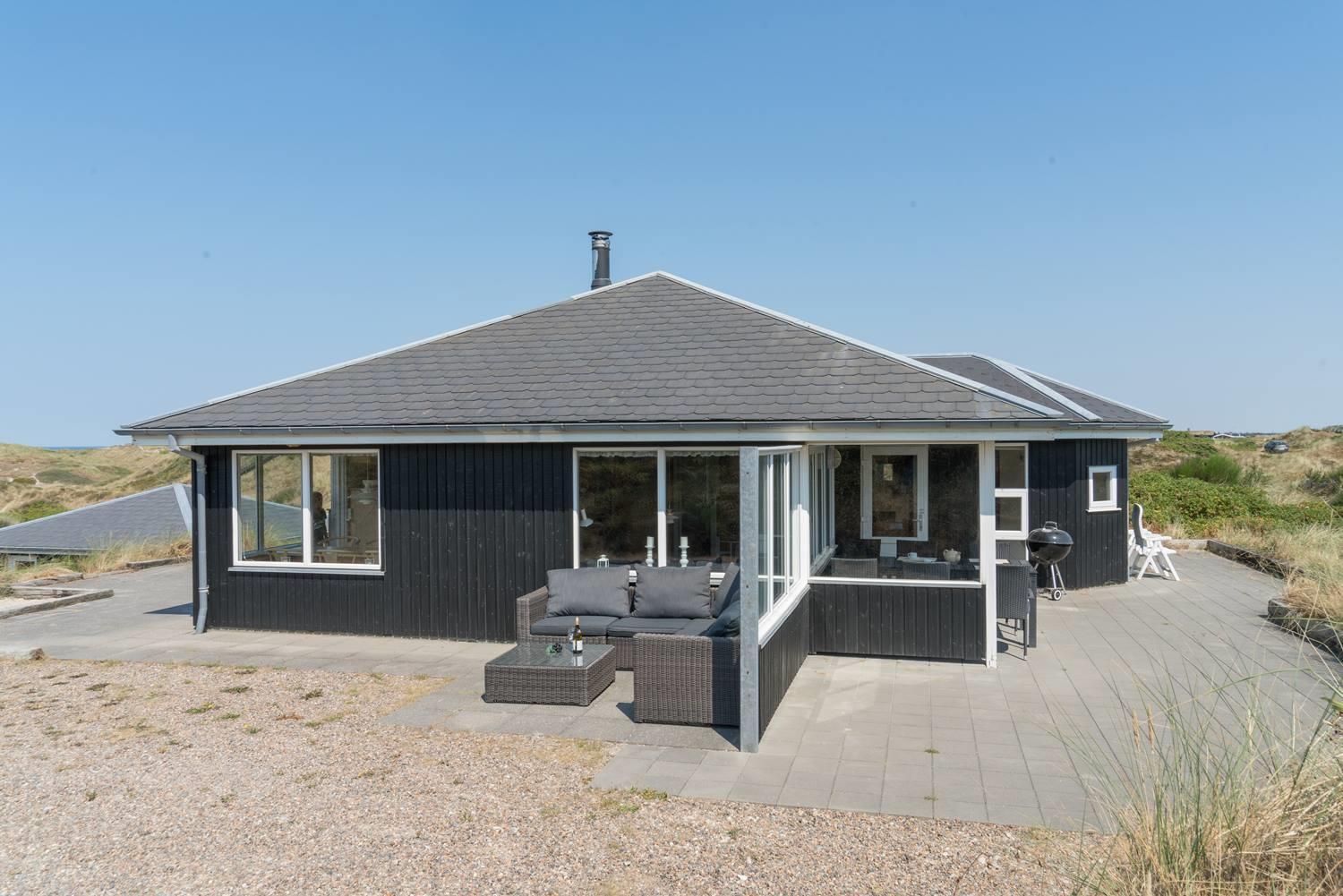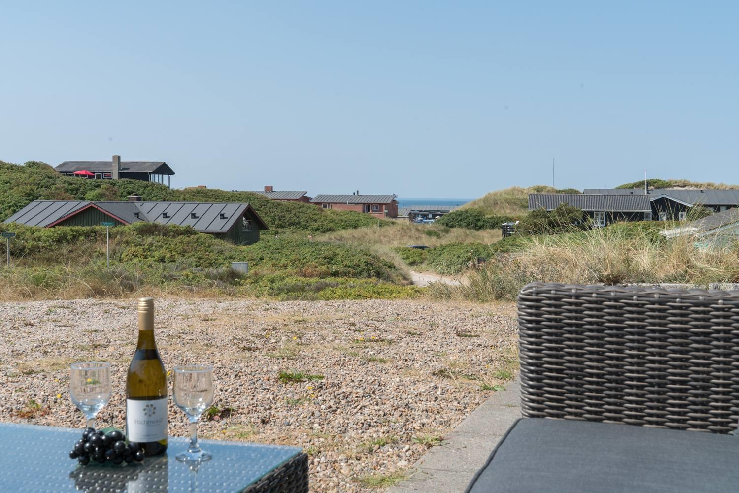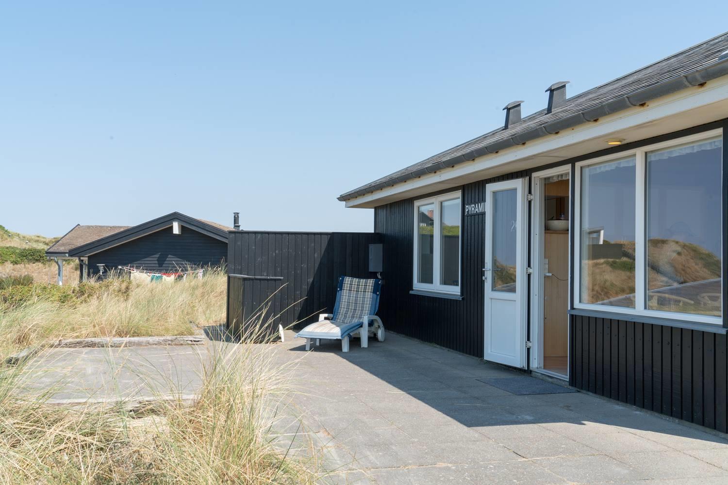 Hier kannst du deinen Urlaub in Dänemark ganz entspannt nach draußen verlagern. Die überdachte Terrasse bietet Schutz vor Wind und Wetter und ist ideal für gemütliche Mahlzeiten oder ruhige Momente zwischendurch. Von hier genießt du den Blick auf die Dünenlandschaft und die besondere Atmosphäre der Nordseeküste.