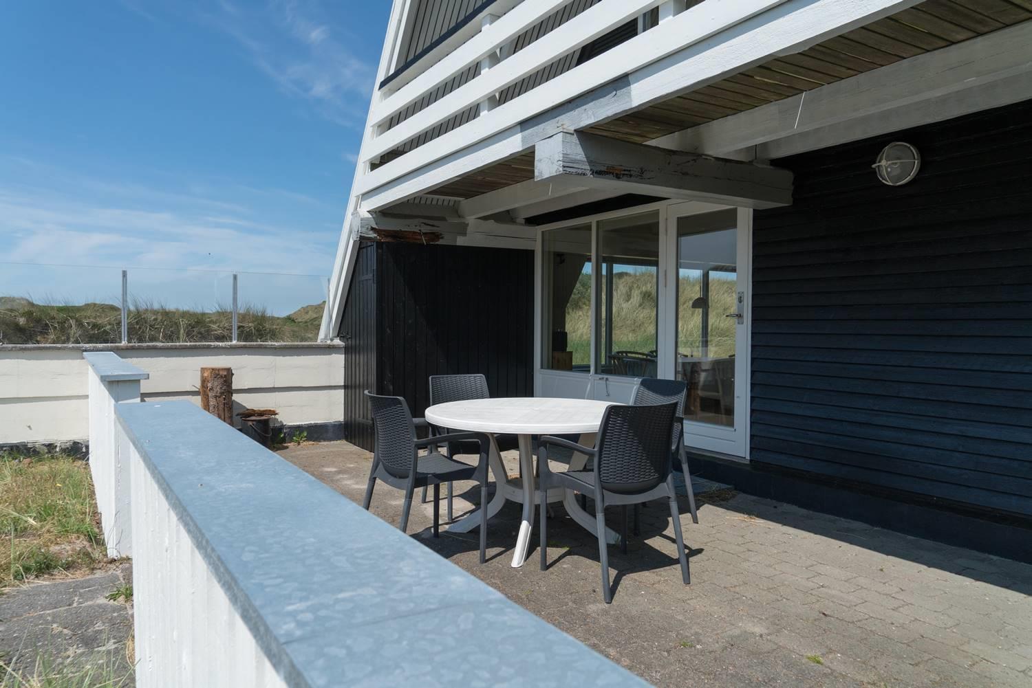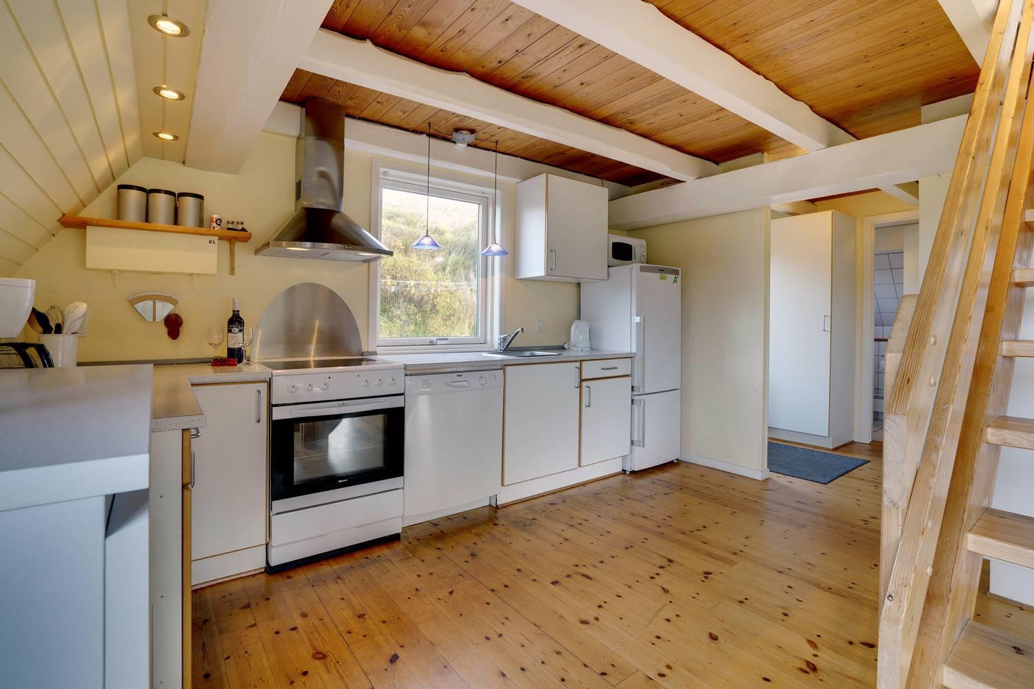 Auf einem wunderschönen, hügeligen und ungestörten Dünengrundstück direkt an der Naturschutzgrenze liegt dieses Ferienhaus mit ausgebautem Obergeschoss. Versuchen Sie, im gemütlichen Wohnzimmer im Obergeschoss zu sitzen und den herrlichen Ausblick über die Dünen.