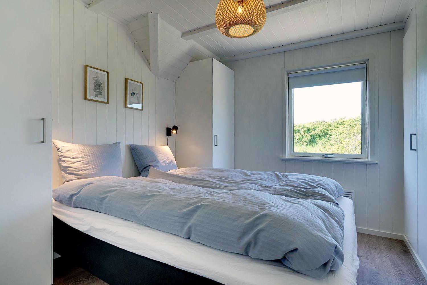 Auf Hyldebærvej 3 in Henne Strand genießen Sie Ihre Auszeit in einem stilvoll eingerichteten Haus mit Sauna, Außendusche und Platz für bis zu sechs Personen, die alle in neuen Doppelbetten (aus 2023) erholsam schlafen – eines der Zimmer ist sogar mit einem luxuriösen Kontinentalbett ausgestattet.