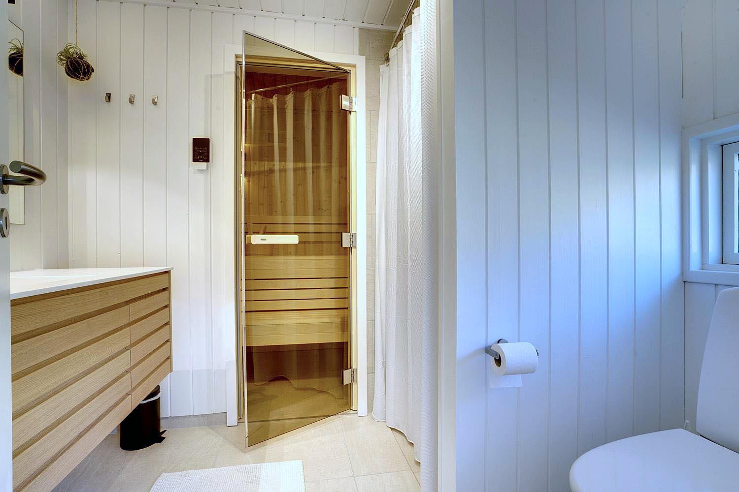 Insgesamt bietet das Haus vier Schlafzimmer mit Doppelbetten sowie zwei moderne Badezimmer, von denen eines mit Sauna ausgestattet ist – ideal für Entspannung nach einem Tag in der Natur.