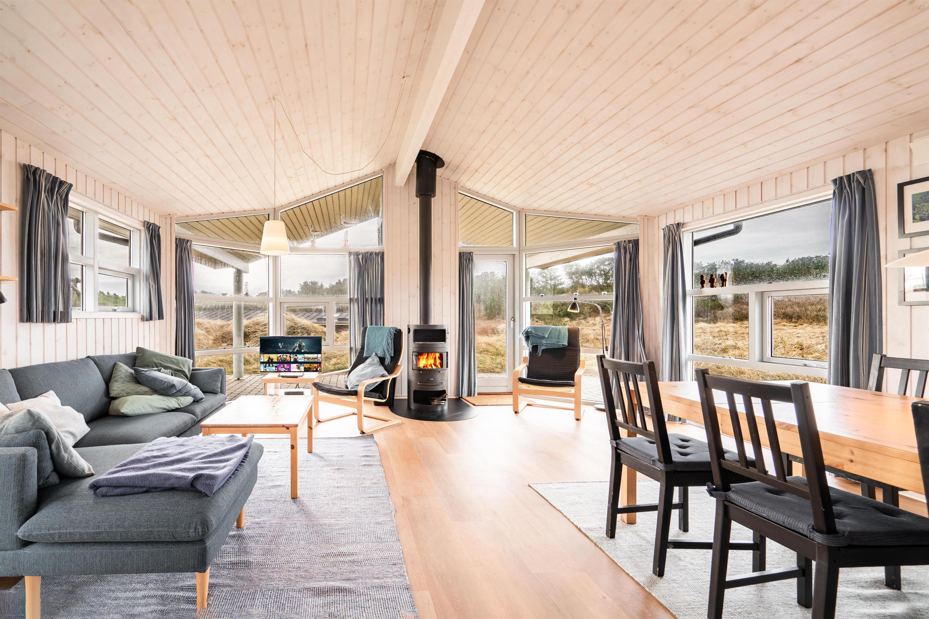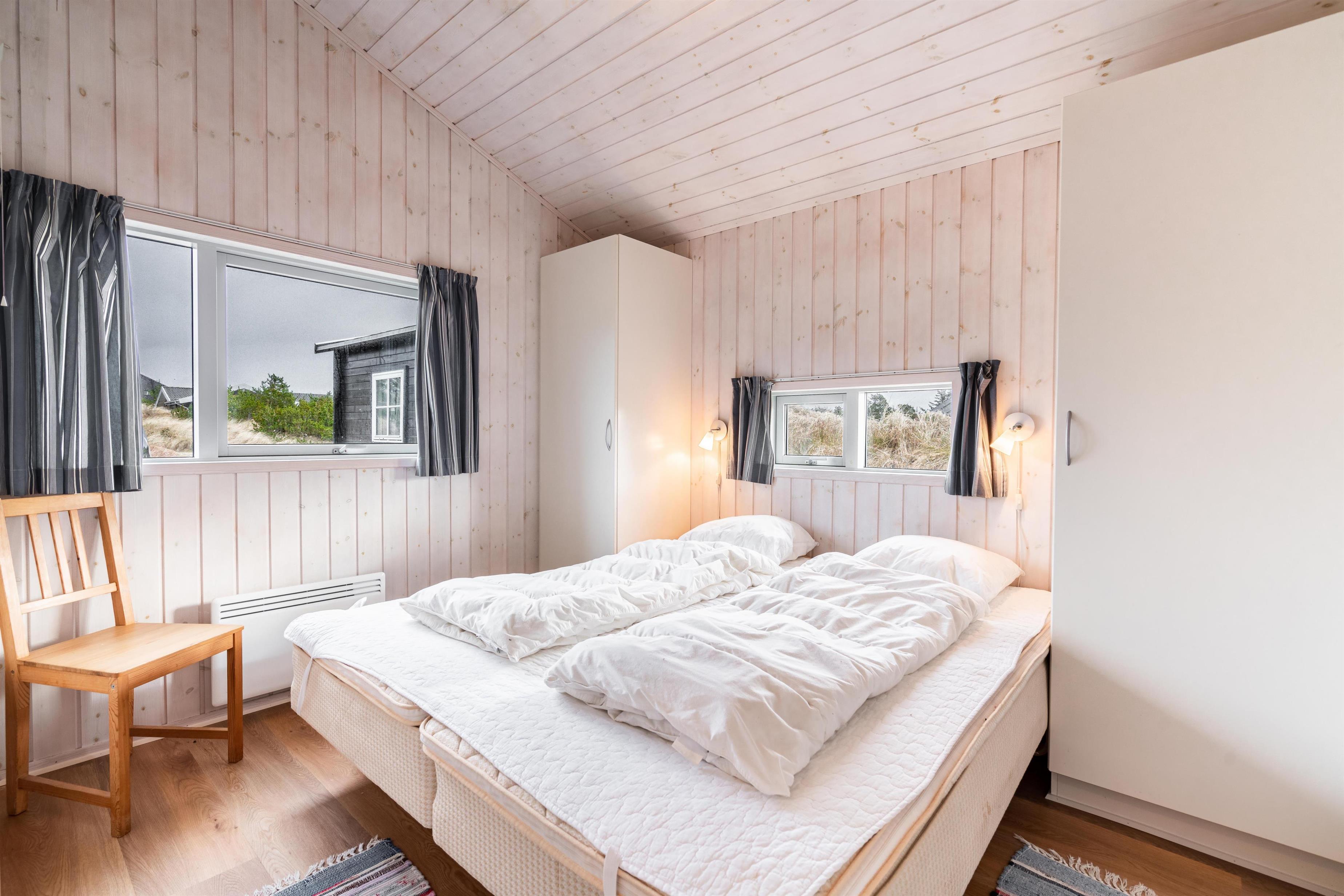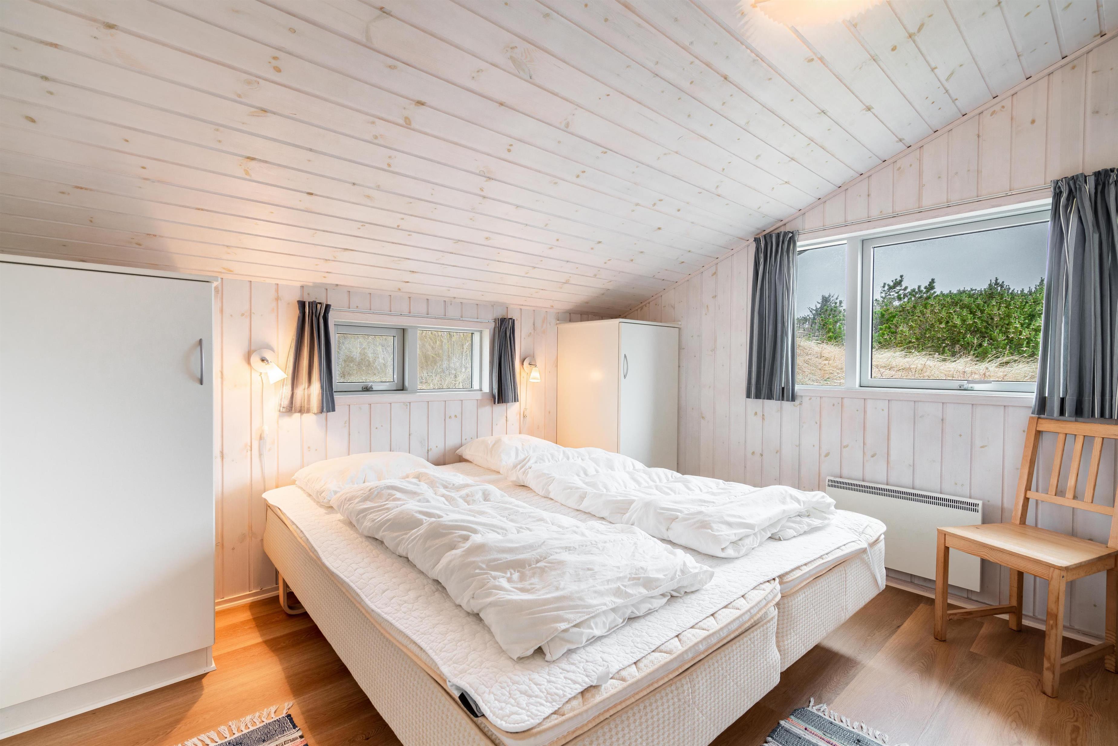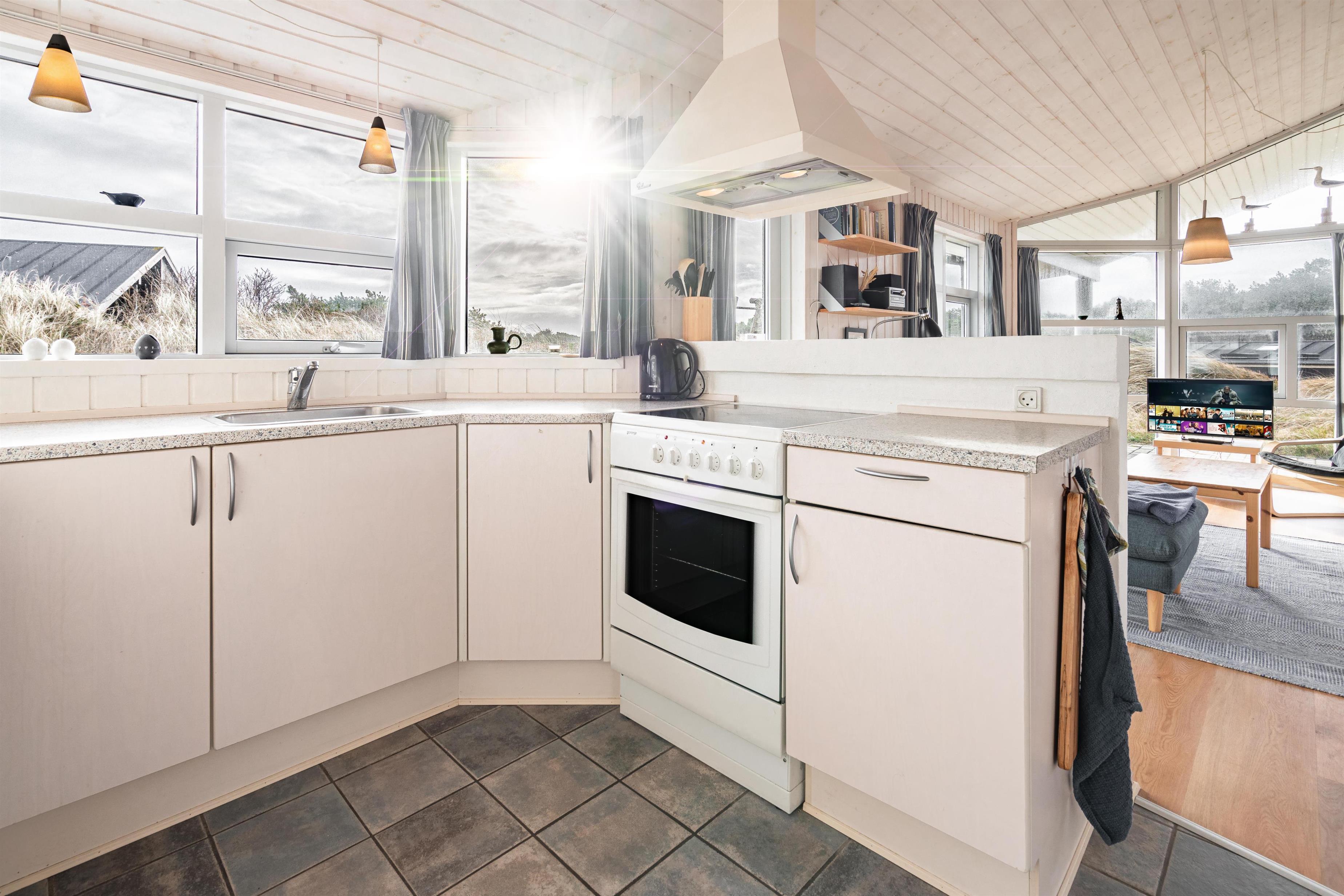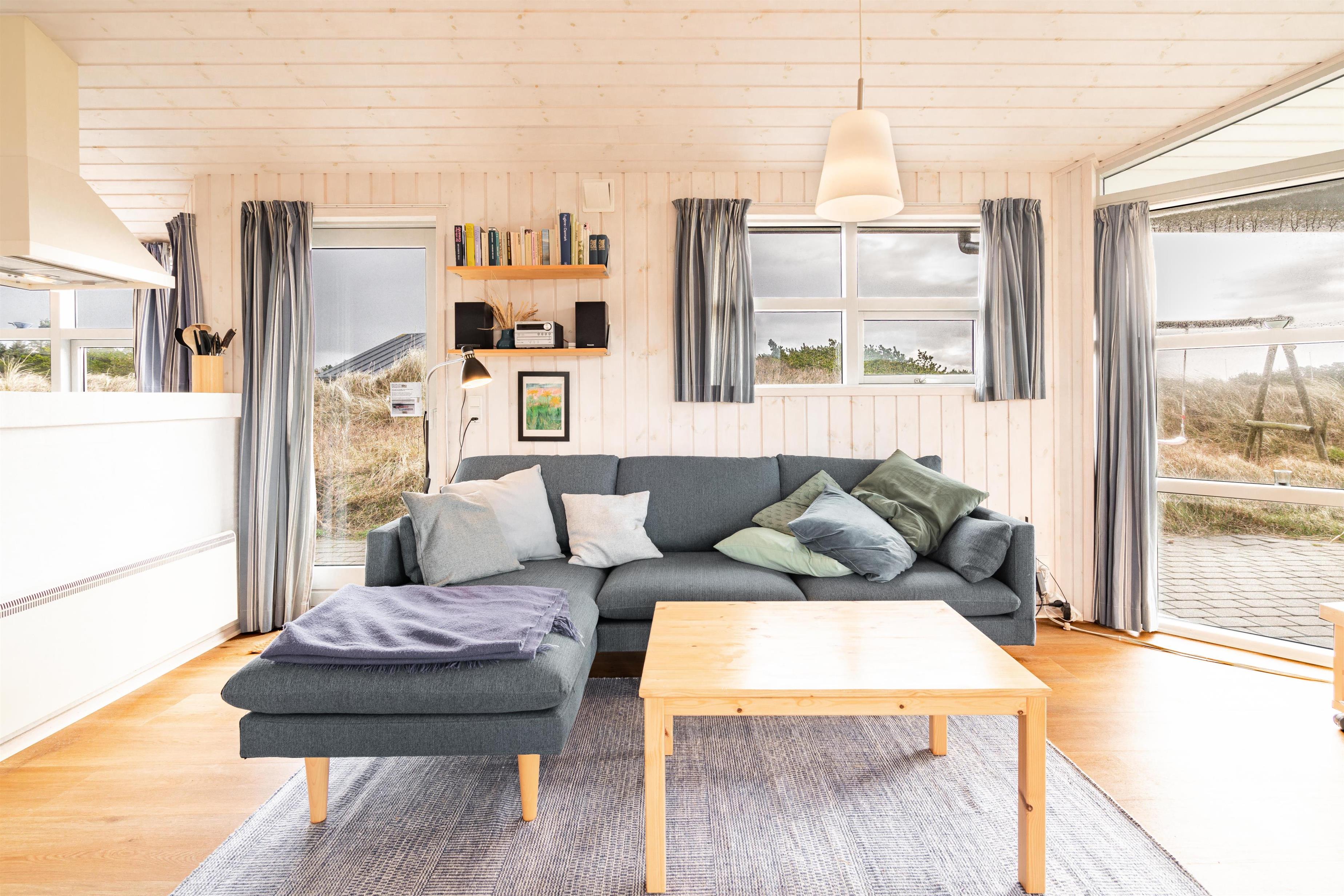 Fantastisches Ferienhaus gelegen in allererster Dünenreihe umgeben von schöner geschützter Natur - nur 200m von den Nordseewellen entfernt. Von der gut ausgestatteten hellen Stube gibt es wundervolle Aussicht über die Dünen und direkten Zugang zu den ungestörten Terrassen, die rund um das Haus liegen (sowohl offene als auch überdachte). Moderne und gut eingerichtete Küche mit u.a. Spülmaschine. Zwei gute Schlafzimmer mit Doppelbetten. Badezimmer mit Dusche, Sauna und Fußbodenheizung. Das Haus liegt am Ende einer Sackgasse - mitten in der Natur. Gut geeignet für Kinderfamilien oder für die, die Ruhe und Nähe zum Strand und zur schönen Natur wünschen - das ganze Jahr über.