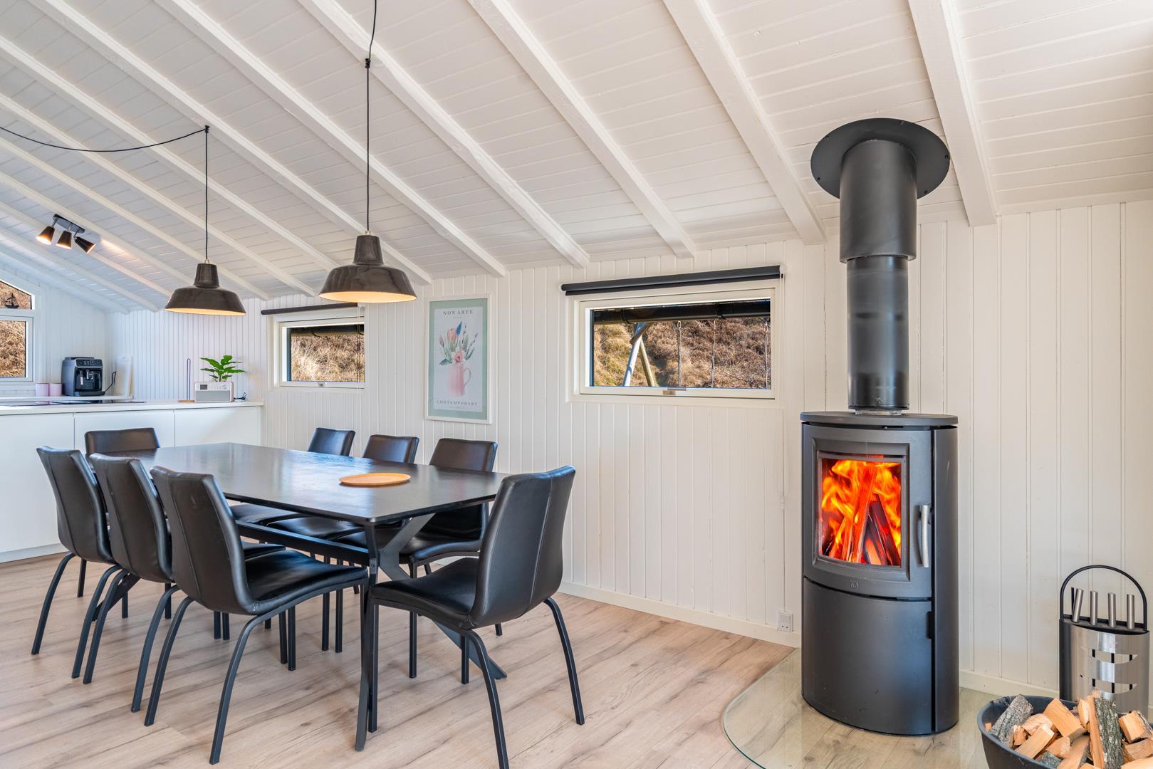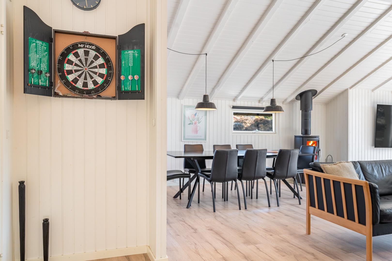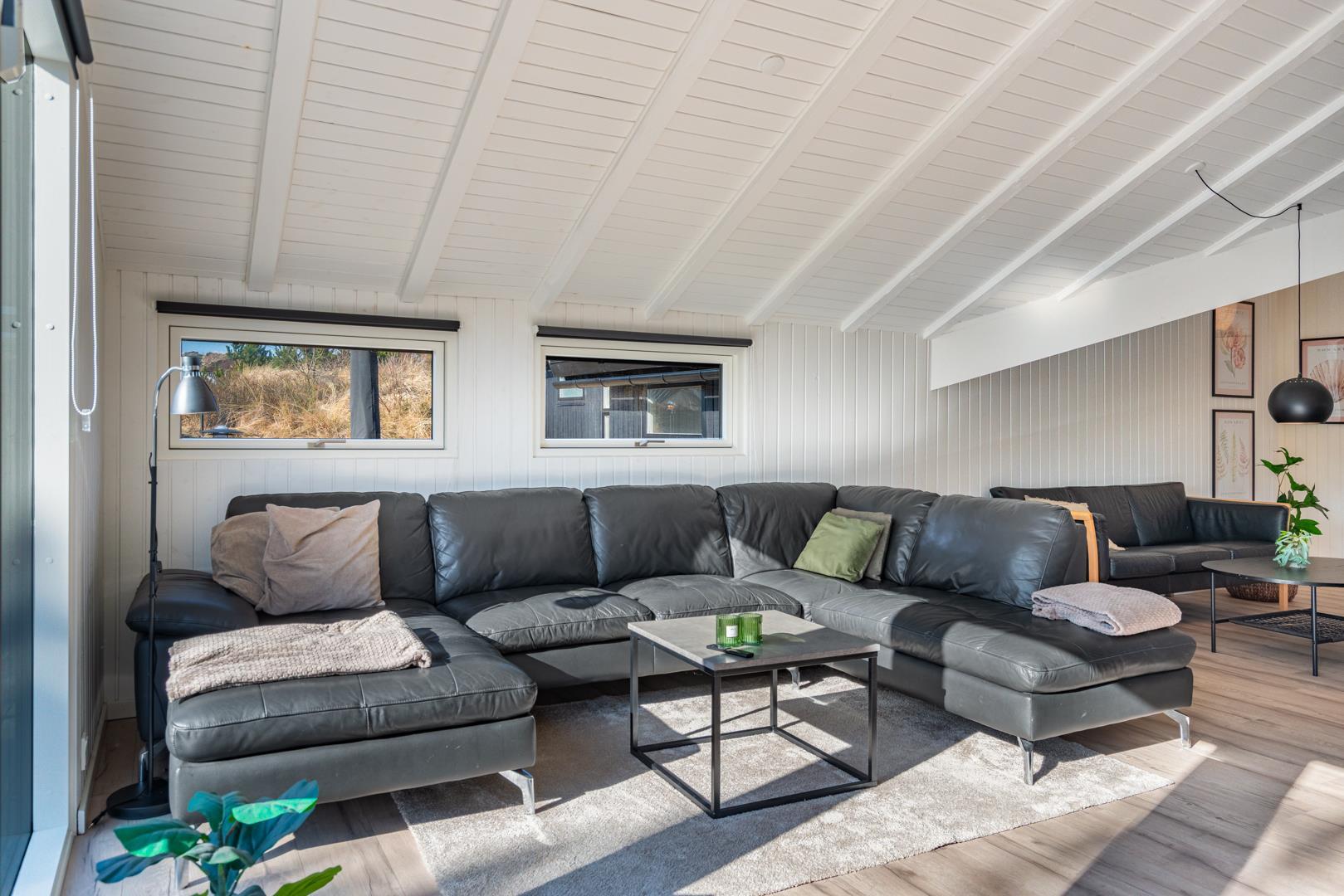 Auf einem schönen hügeligen Naturgrundstück und zurückgelegen von der Straße liegt dieses stilvolle und komplett renovierte Ferienhaus mit Platz für 8 Personen. Es gibt eine große Aktivitätsabteilung mit Billardtisch, Dart, Tischtennis und Playstation 5 mit dazugehörigen Spielen. Eine moderne Einrichtung mit hellen Farben und bequemen Möbeln schafft eine gemütliche Sommerhausatmosphäre, in der Sie im Winter auch vor dem Holzofen entspannen können. Zudem gibt es auch eine energiesparende Wärmepumpe im Haus. Das Haus ist mit 2 guten Badezimmern mit Dusche und 4 Schlafzimmern ausgestattet.