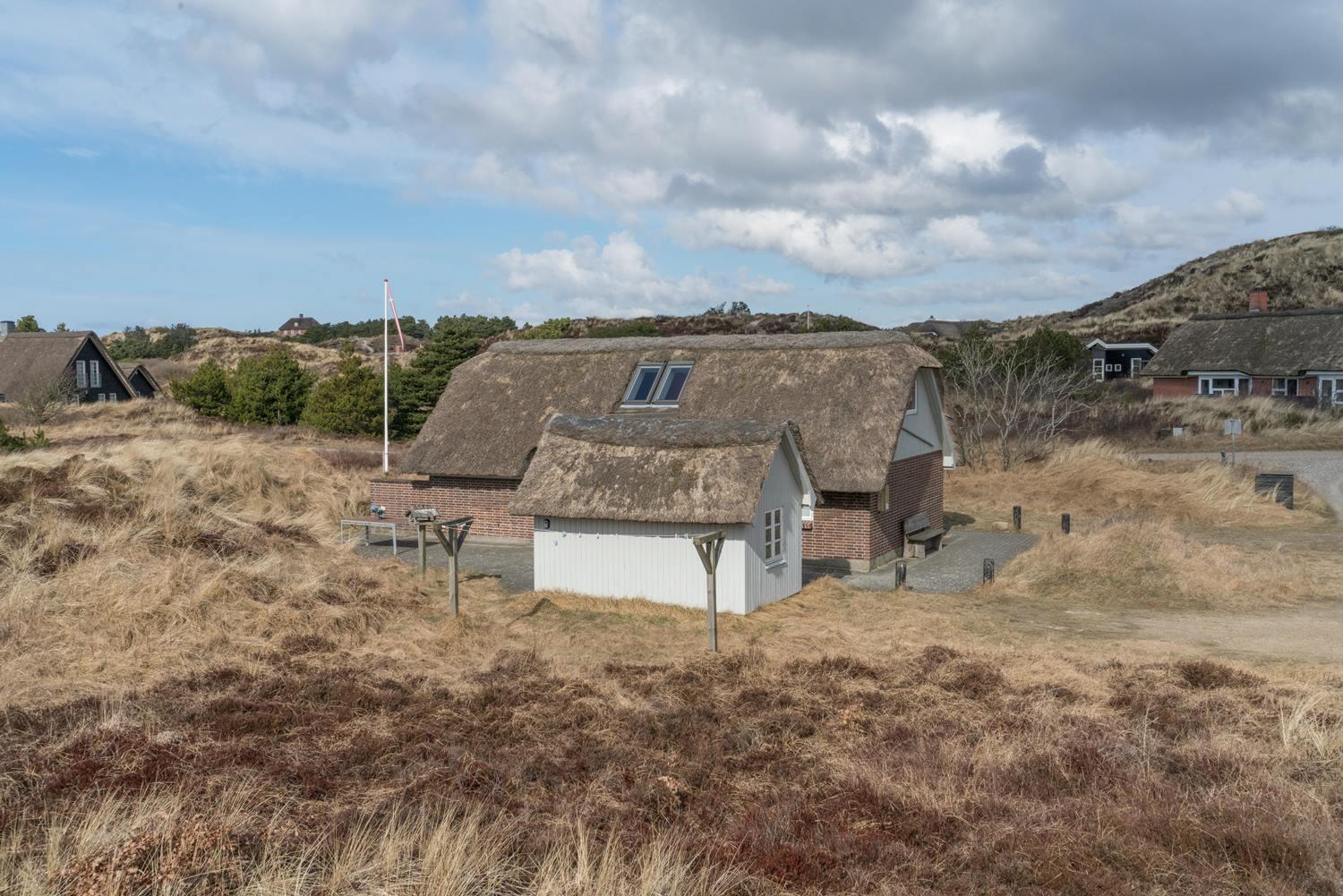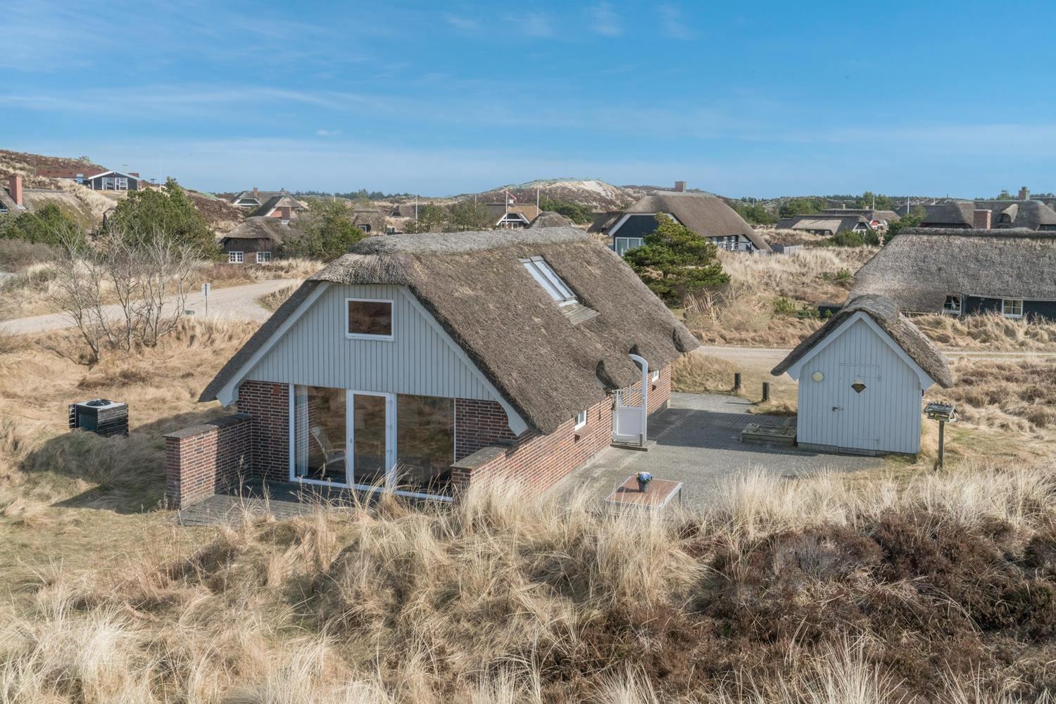 Ferienhaus mit Strohdach auf einem größeren Dünengrundstück am Henne Strand und nur wenige Gehminuten vom Strand und dem Ort entfernt. Das Ferienhaus wurde kontinuierlich renoviert, zuletzt 2011 mit einem neuen Bad, einer Gästetoilette und größeren Schlafzimmern, alle mit Fußbodenheizung.