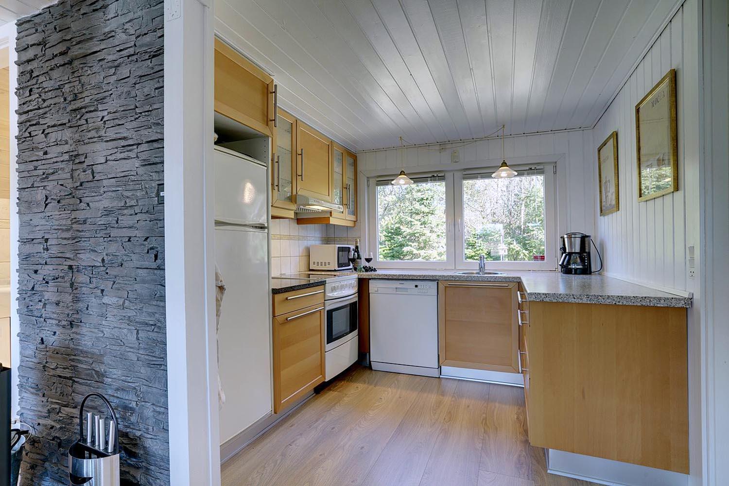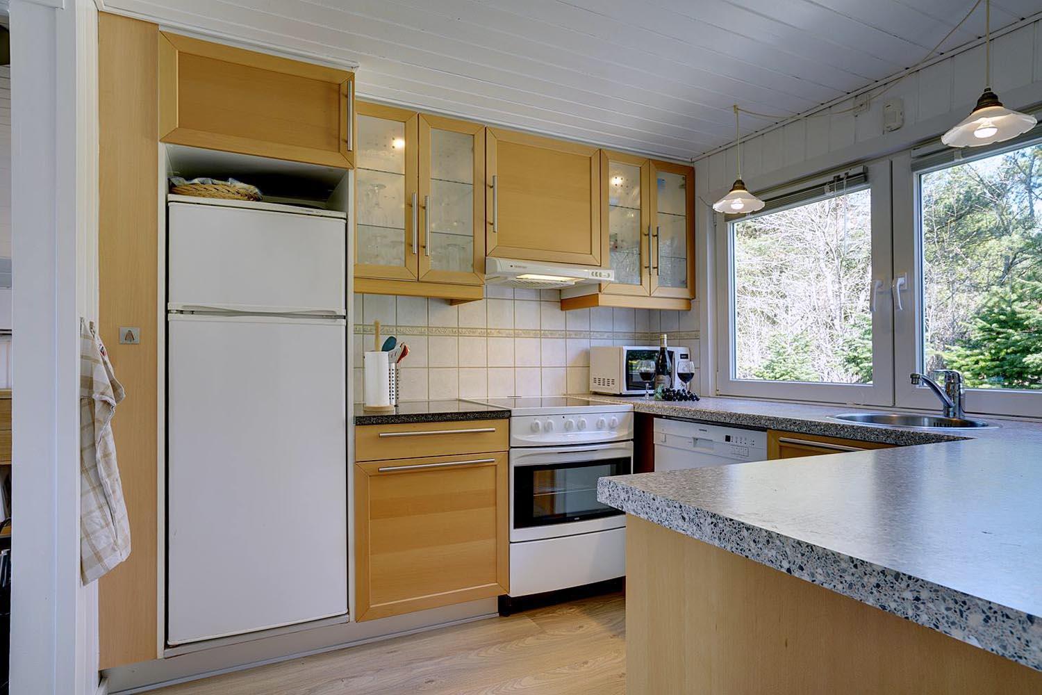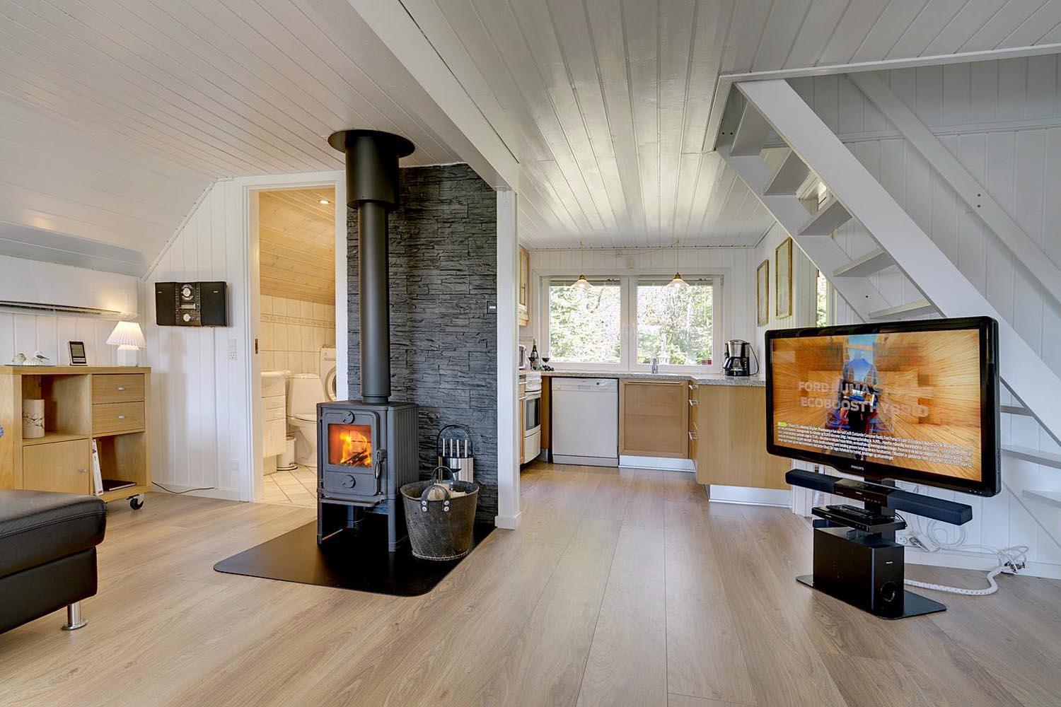 Der mit der Küche kombinierte Wohnbereich ist gemütlich und hübsch möbliert. Vom Wohnraum kommen Sie auf die große ungestörte Terrasse, die besonders geeignet ist für Kinderfamilien und Hundebesitzer.
