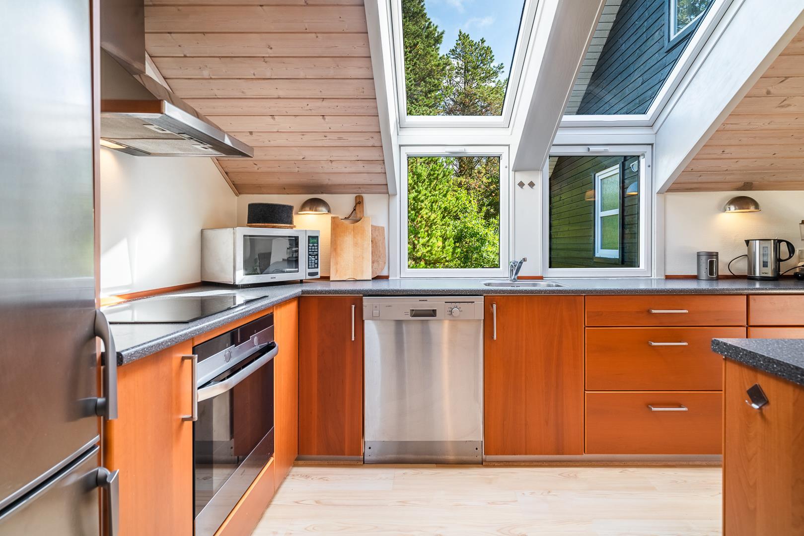 Natürlich gibt es auch etwas für die Erwachsenen im Haus, das 2018 modernisiert wurde. Ein Badezimmer ist ein echter Wellnessraum mit Whirlpool und Sauna. Hier kann man es sich gutgehen lassen. Das Haus ist im Allgemeinen gut ausgestattet - von der schönen Küche mit Oberlichtern bis zu den schönen Holzterrassen, die fast zum Grillen und Entspannen in der Sonne einladen.