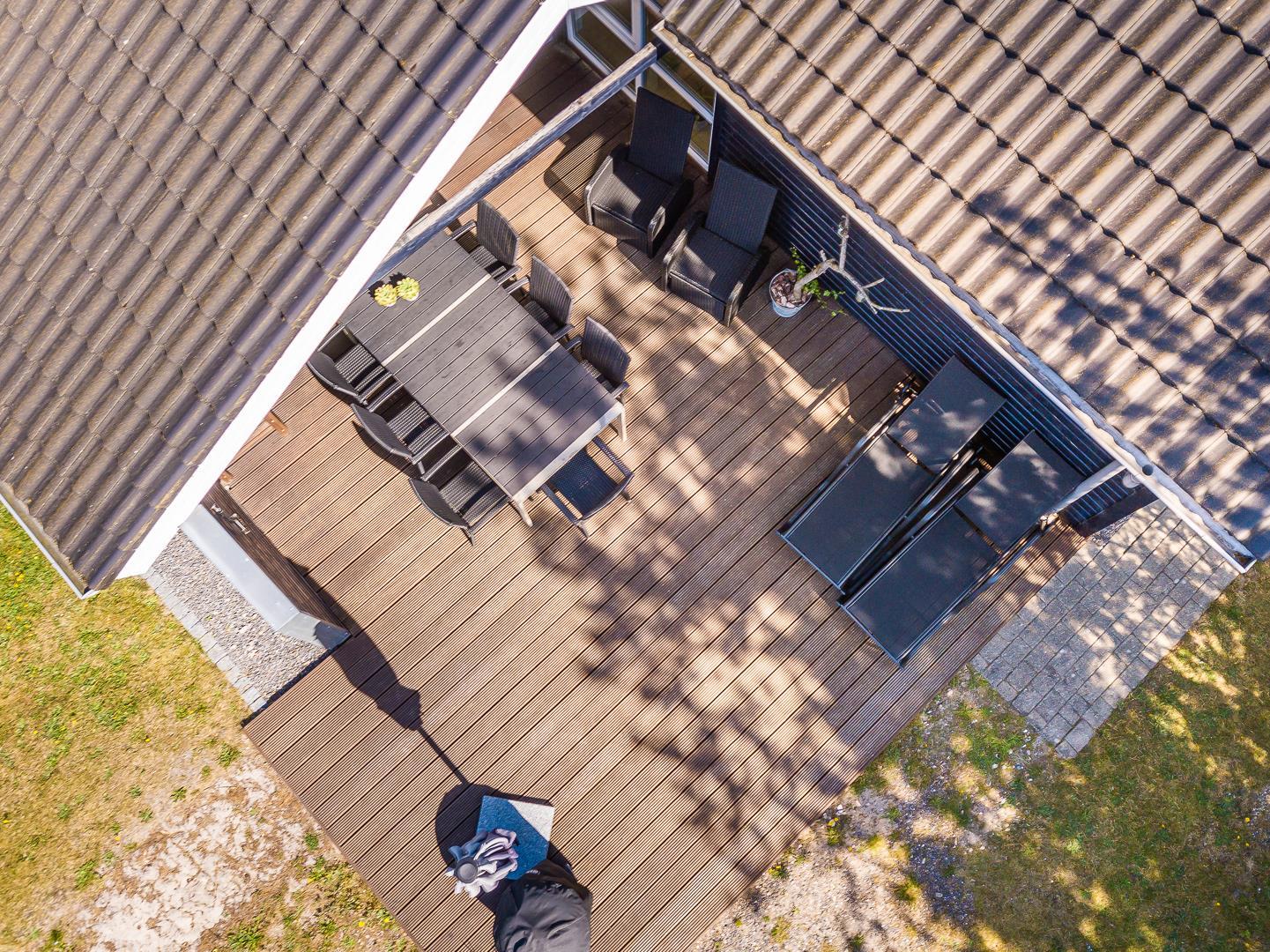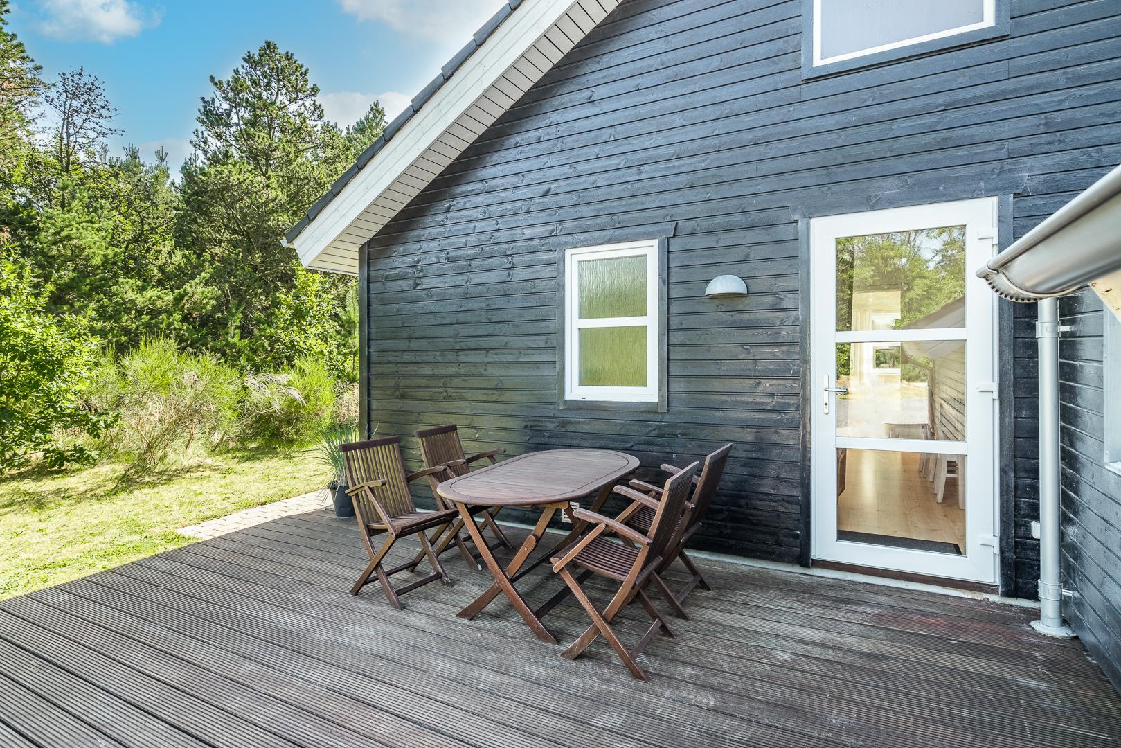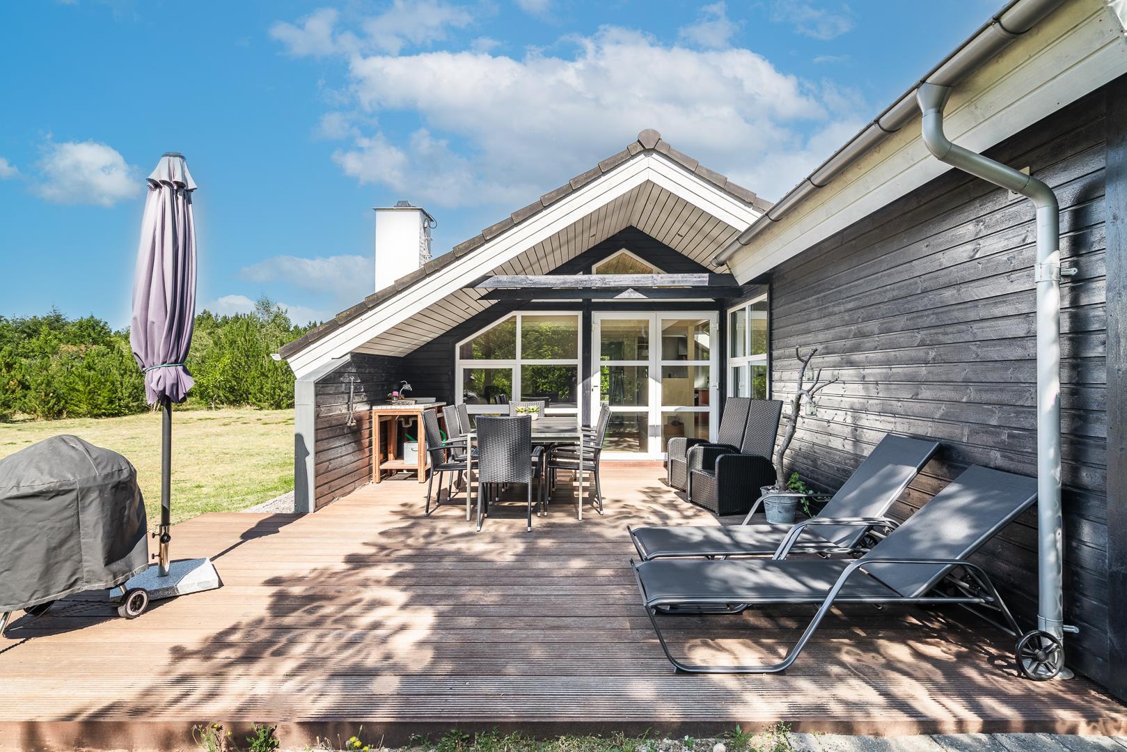 Von den Holzterrassen können Sie weiter in den Garten hinein gehen. Er ist umgeben von wunderschön gewachsenen Pflanzen mit Bäumen und Sträuchern, so dass es viele schöne Ecken gibt, in denen Sie das dänische Sommerwetter ungestört genießen können.