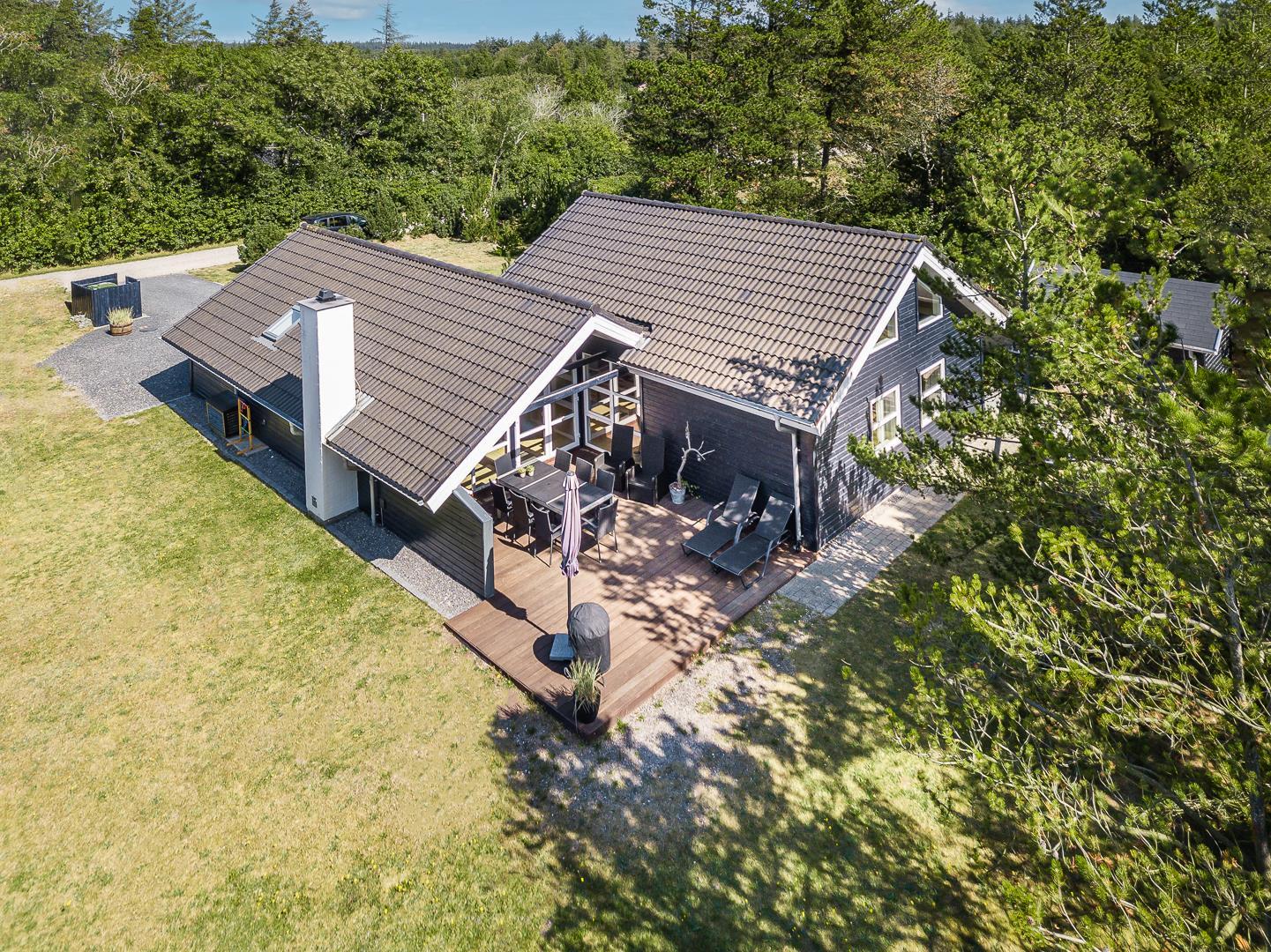 Das Haus liegt wunderschön am ruhigen Ende von Henne Strand, nicht weit von Blåbjerg Plantage entfernt. Es gibt auch die Möglichkeit in die Schwimmhalle sowie zum Bowling und Badminton zu gehen. Der Golfclub ist weniger als 2 km von hier entfernt und es gibt auch eine kurze Entfernung zu Henne Kirkeby Kro, Filsø und natürlich dem Strand und Strandvejen.