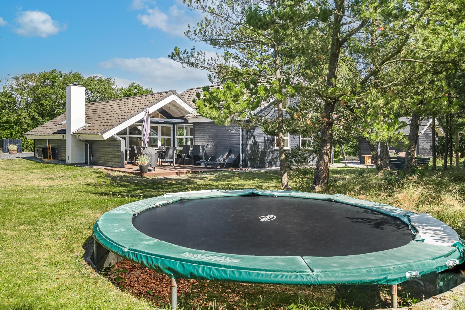 Wer kann den wildesten Trampolinsprung machen? Wenn Sie Kærvej 22 für Ihren nächsten Familienurlaub buchen, gibt es hier viele Möglichkeiten für lustige Spiele. Das Haus befindet sich in Henne Strand Ost und bietet Platz für 8 Übernachtungsgäste.