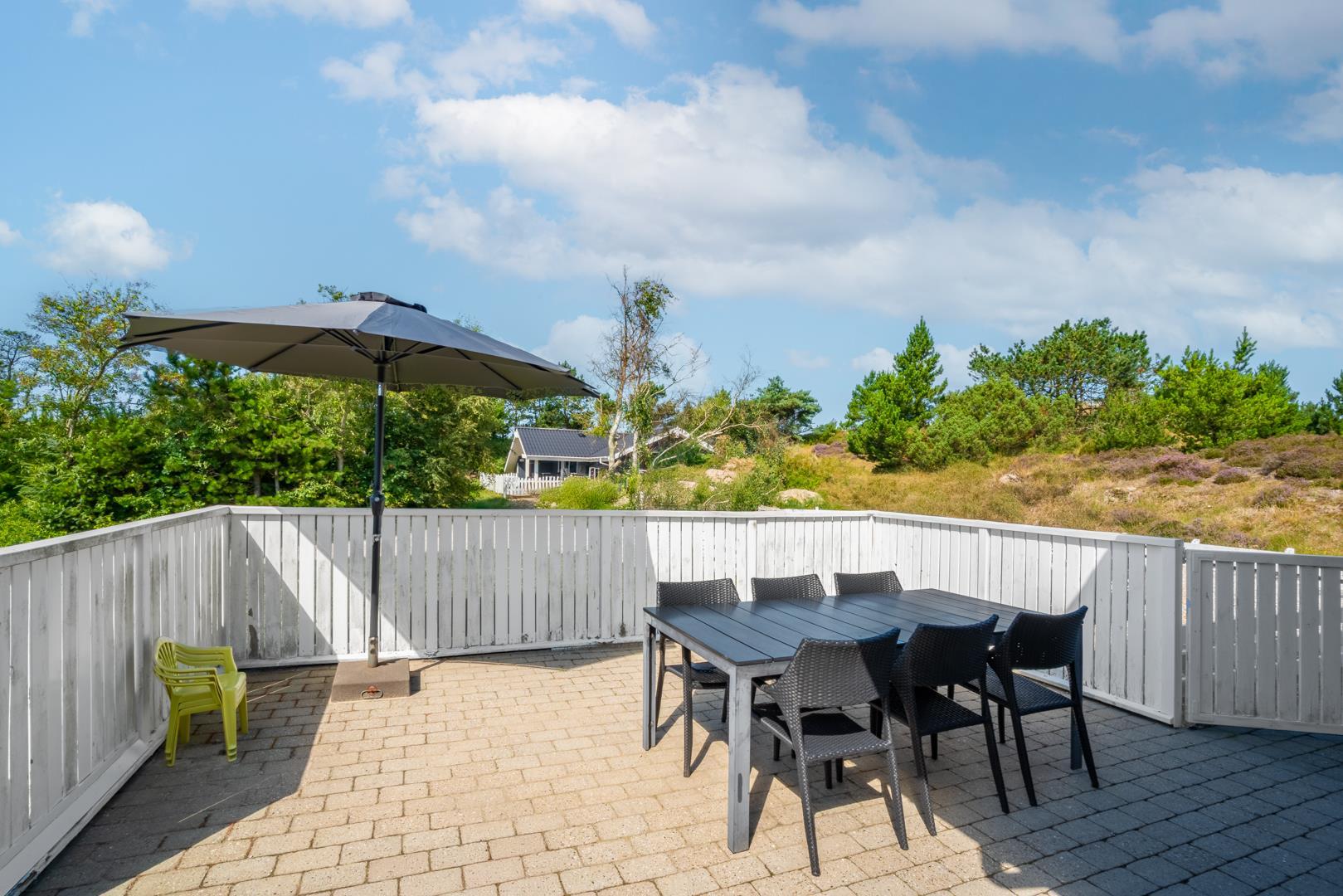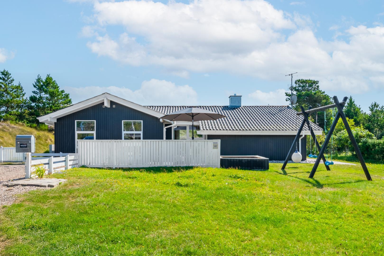 Dieses sehr gepflegte und stimmungsvolle Ferienhaus bietet eine attraktive Lage auf einem großen Naturgrundstück, auf dem man ungestört und privat wohnt – und gleichzeitig ist es nur ein kurzer Spaziergang ins Zentrum von Henne Strand sowie zum herrlichen Sandstrand.