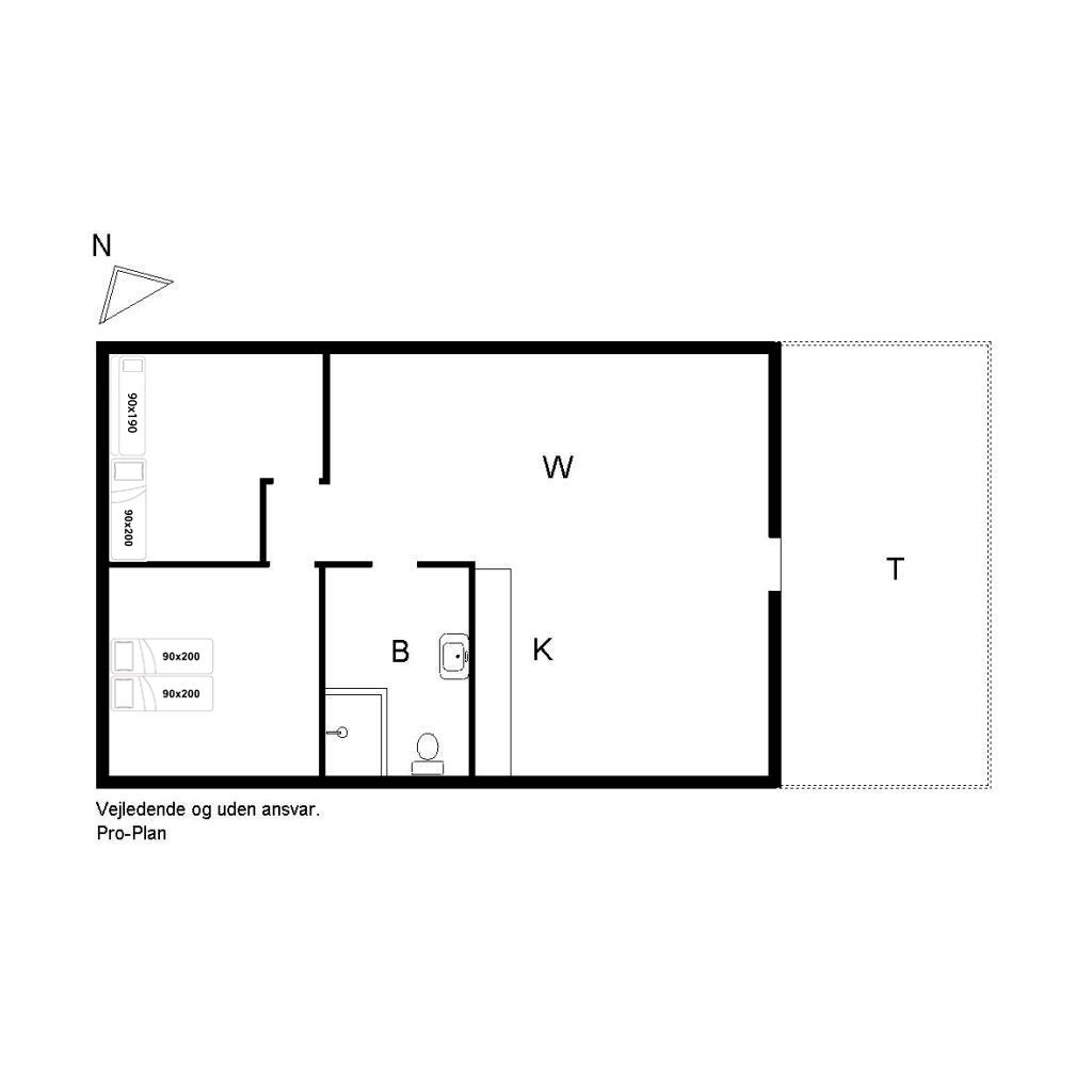 – 1 Einzelbett (90 x 200 cm)