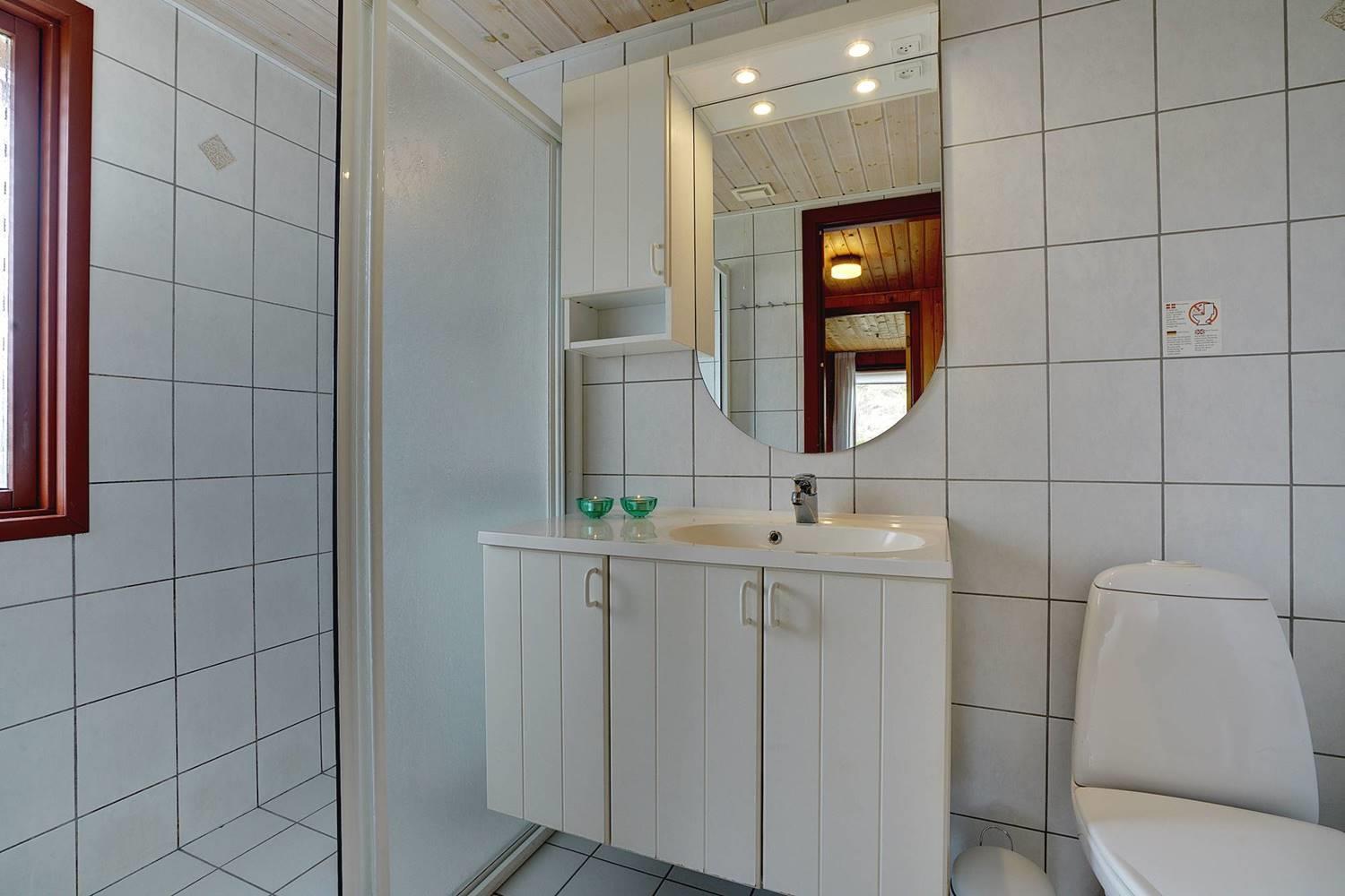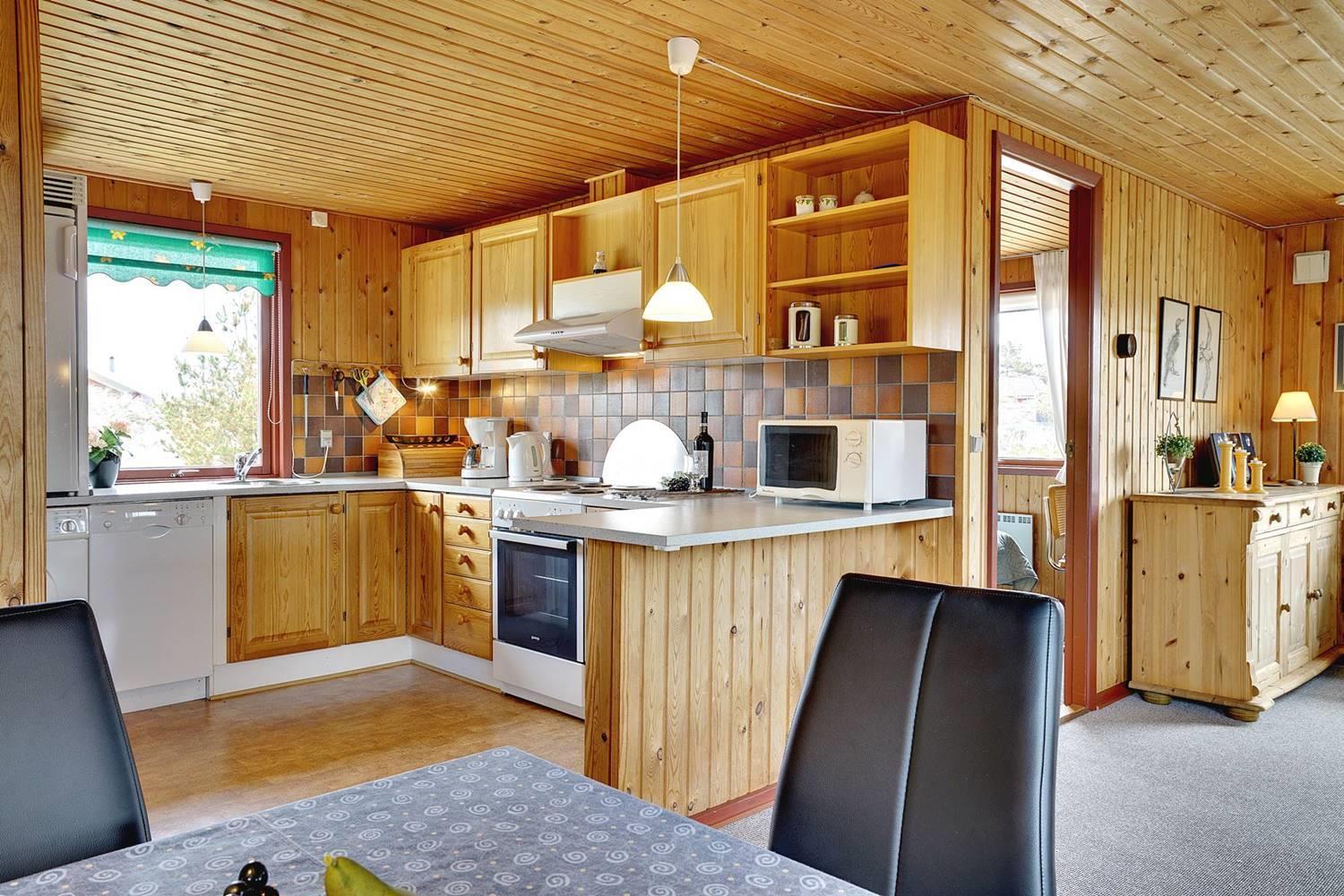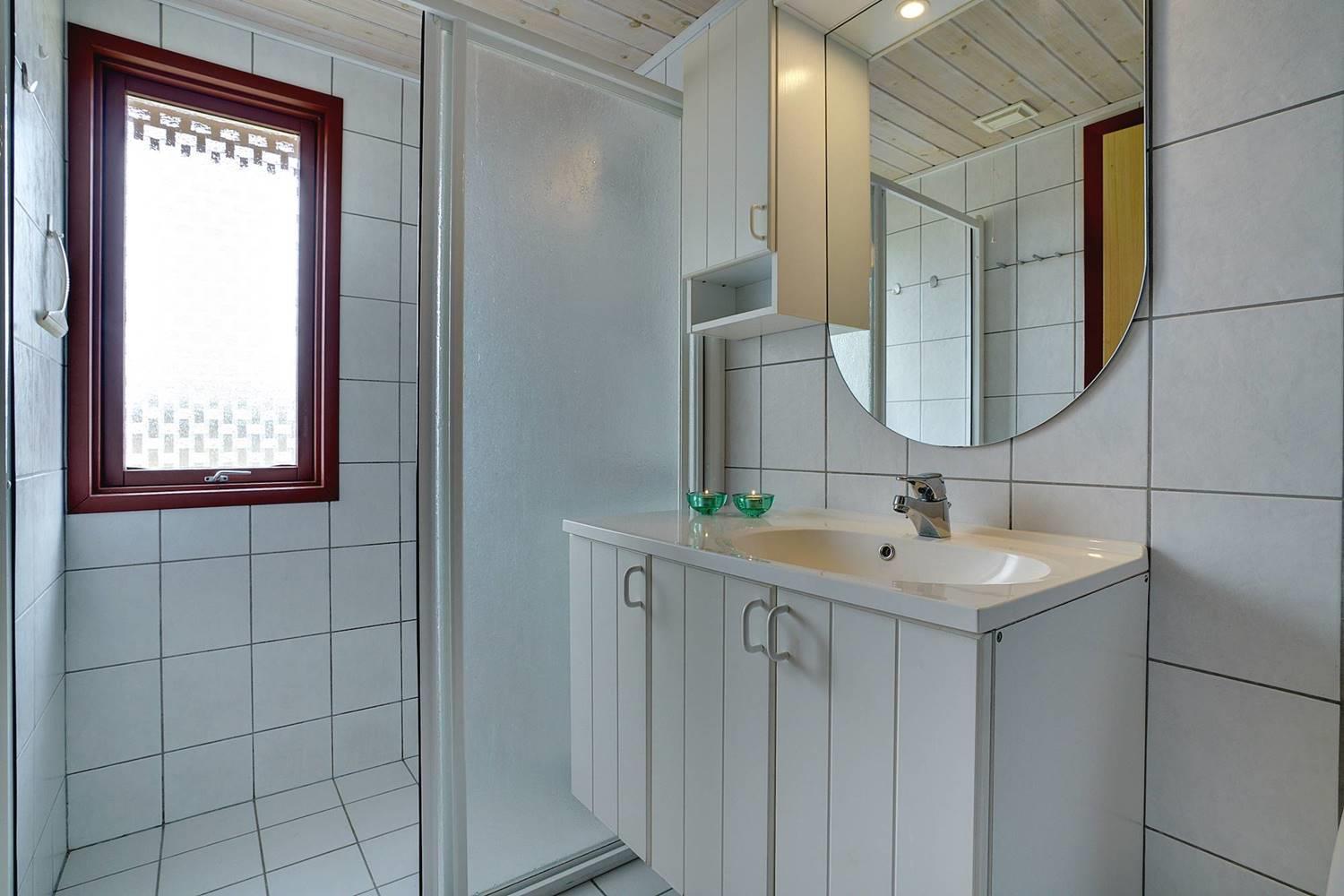 Am Ende einer Sackgasse liegt dieses gepflegte Ferienhaus. Die Küche und der geräumige Wohnbereich sind kombiniert. Das Wohnzimmer ist mit einem Brennofen mit Glasscheibe ausgestattet. Von hier aus gelangt man direkt auf die schöne, eingezäunte und ungestörte Holzterrasse in Richtung Süd-Westen. Das Badezimmer verfügt über eine Duschkabine.