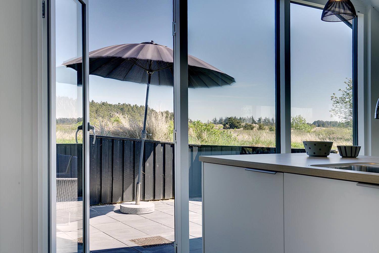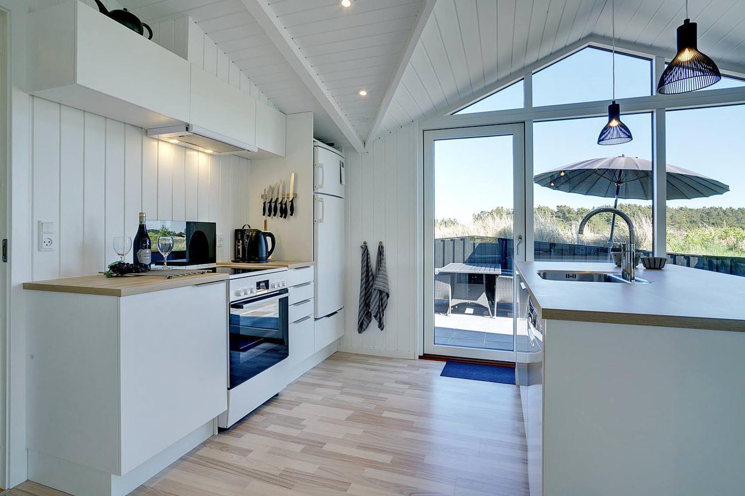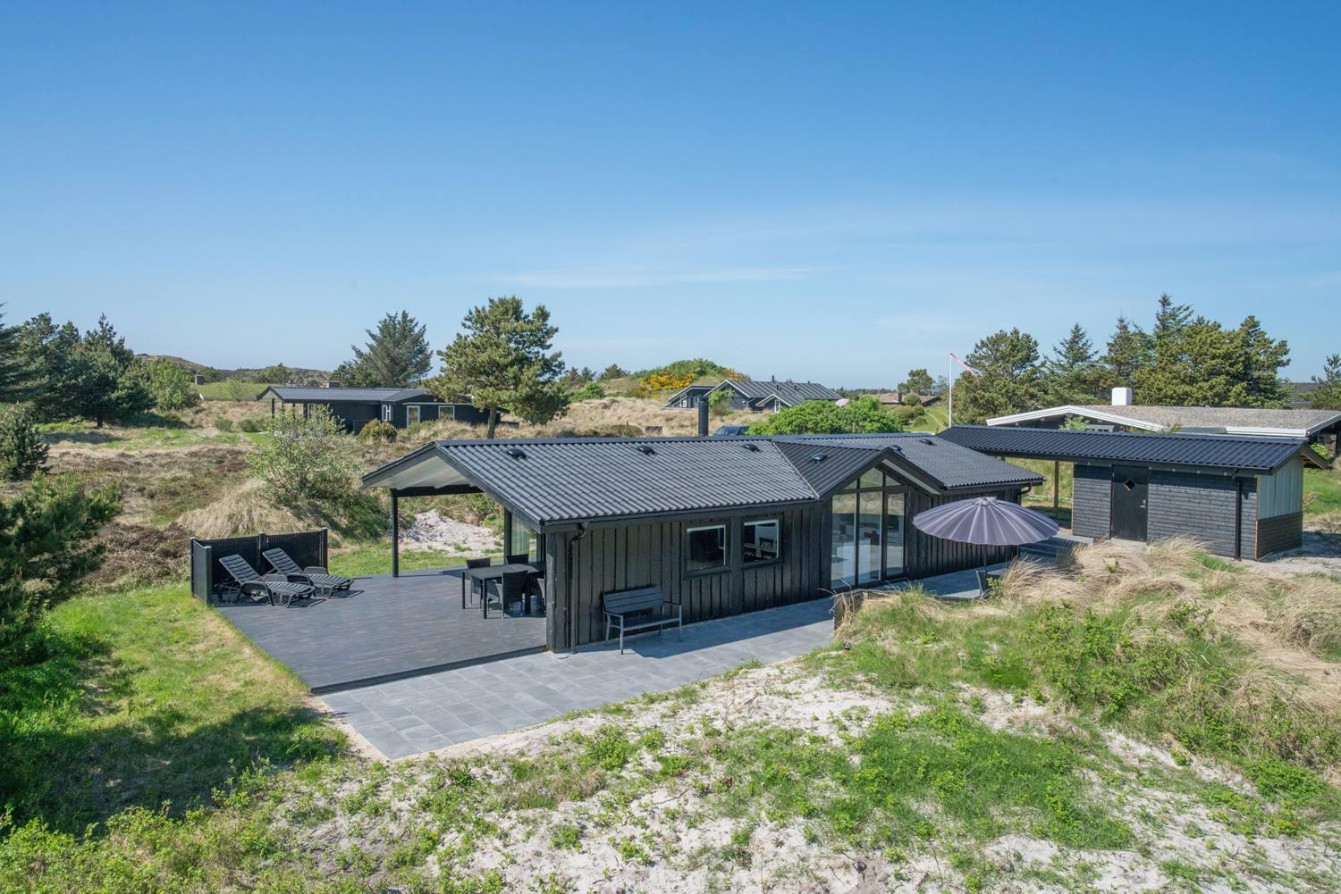 Schönes, helles und freundliches Ferienhaus auf einem tollen, hügeligen Naturgrundstück direkt an einer geschützten Dünen - / Waldumgebung. Von der Terrasse kann man die prachtvolle Aussicht genießen. Schöne Küche die mit der gemütlichen Stube verbunden ist. Ab 2021 schönes neues Badezimmer