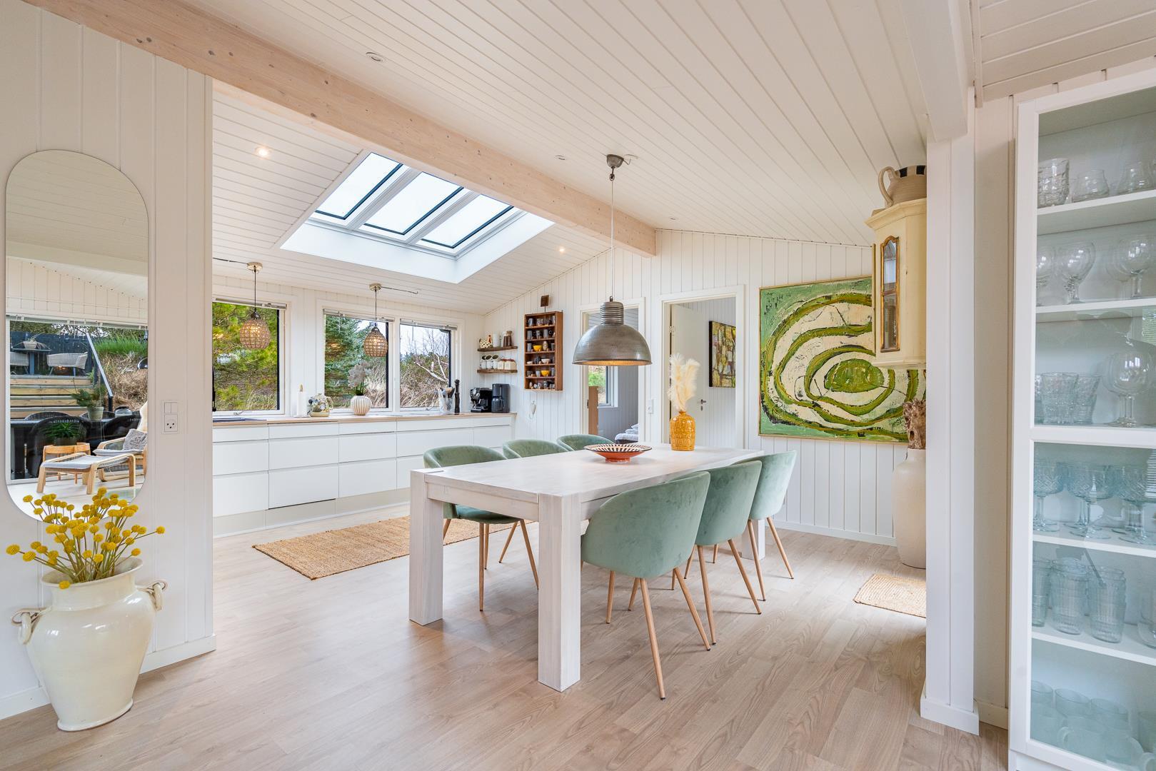 Willkommen in diesem einzigartigen Ferienhaus auf einem großen, hügeligen Naturgrundstück bei Henne Strand – perfekt für alle, die eine ruhige Urlaubsatmosphäre, Natur und Komfort an einem Ort suchen. Das wunderschöne Ferienhaus befindet sich am Ende einer Sackgasse, was für viel Ruhe und Privatsphäre in einer malerischen Umgebung sorgt.