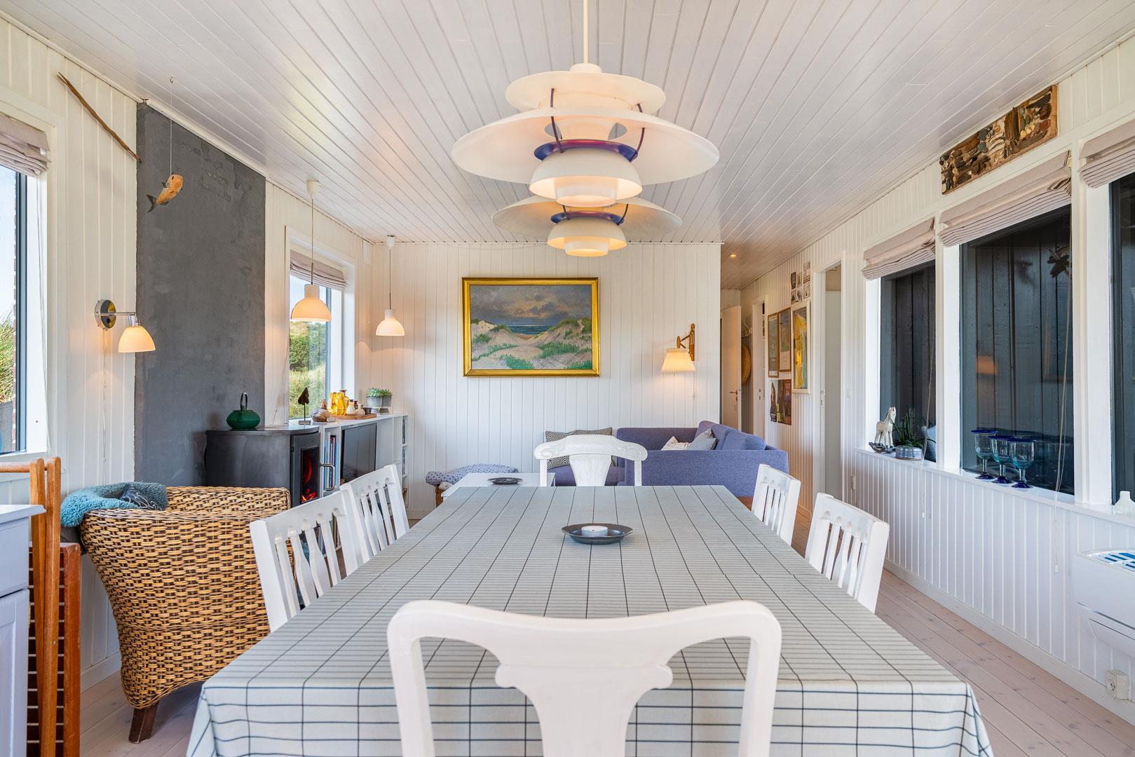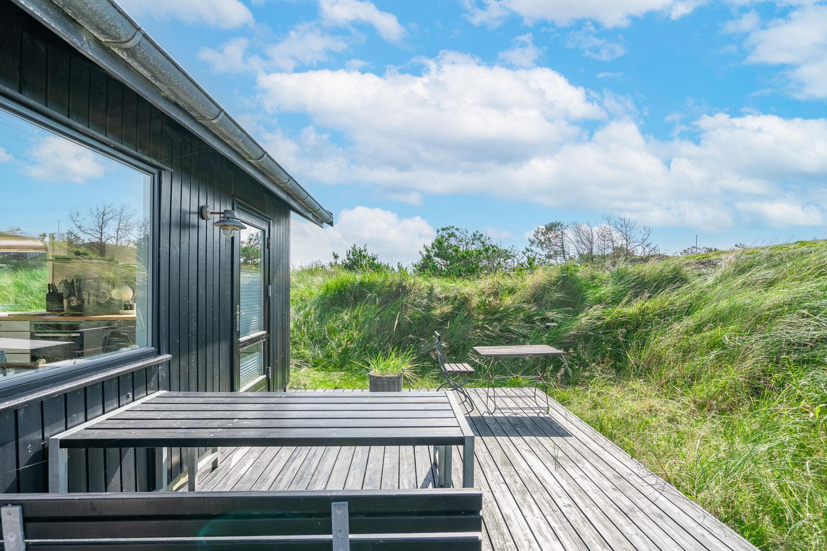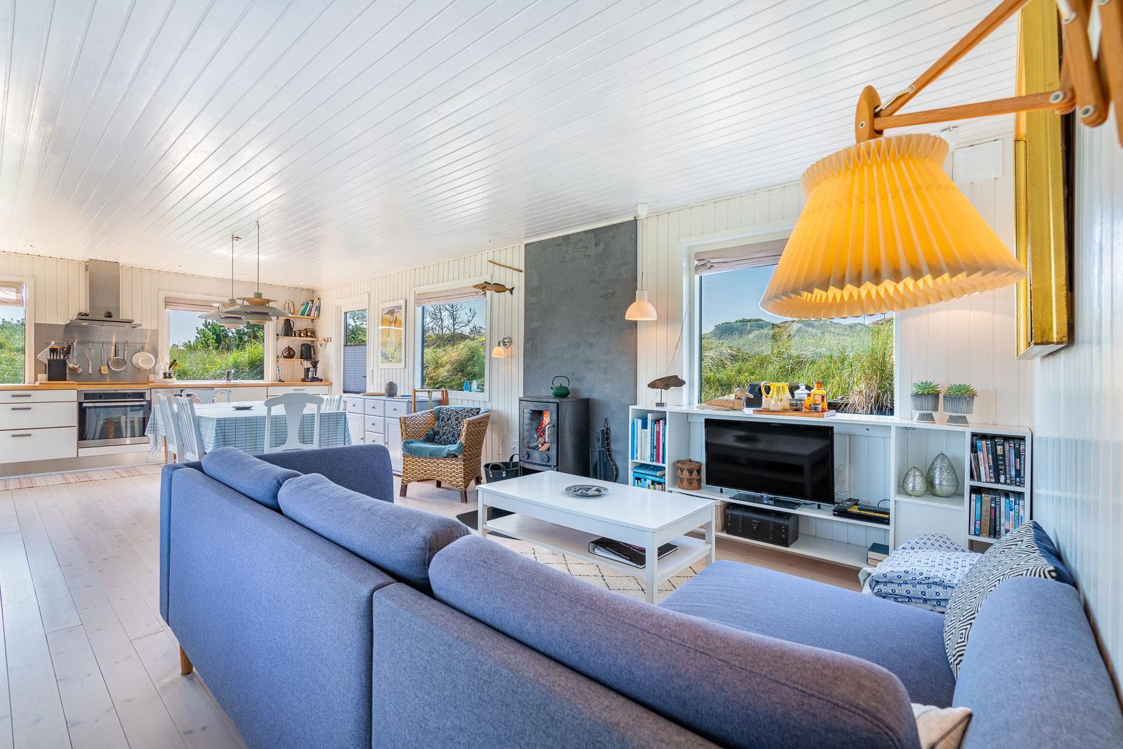 Prachtvolles und geschmackvoll eingerichtetes Holzhaus mit Fokus auf helle und freundliche Ferienhausstimmung gelegen auf einem tollen und hügeligen Naturgrundstück nahe am Naturschutzgebiet. Tolle Küche mit Spülmaschine, die kombiniert ist mit der schönen Stube mit Kaminofen, von der es Zugang zur ungestörten Terrasse gibt auf er man die schöne Umgebung und die Sonne genießen kann. Das Haus verfügt über eine Außendusche. Im Frühjahr 2011 wurde angebaut und das Haus hat seitdem ein großes Badezimmer mit Whirlpool und Sauna. Es gibt 3 gute Schlafzimmer mit Holzfußboden. Das Haus ist überall gut gepflegt und hat Stil und Charme.