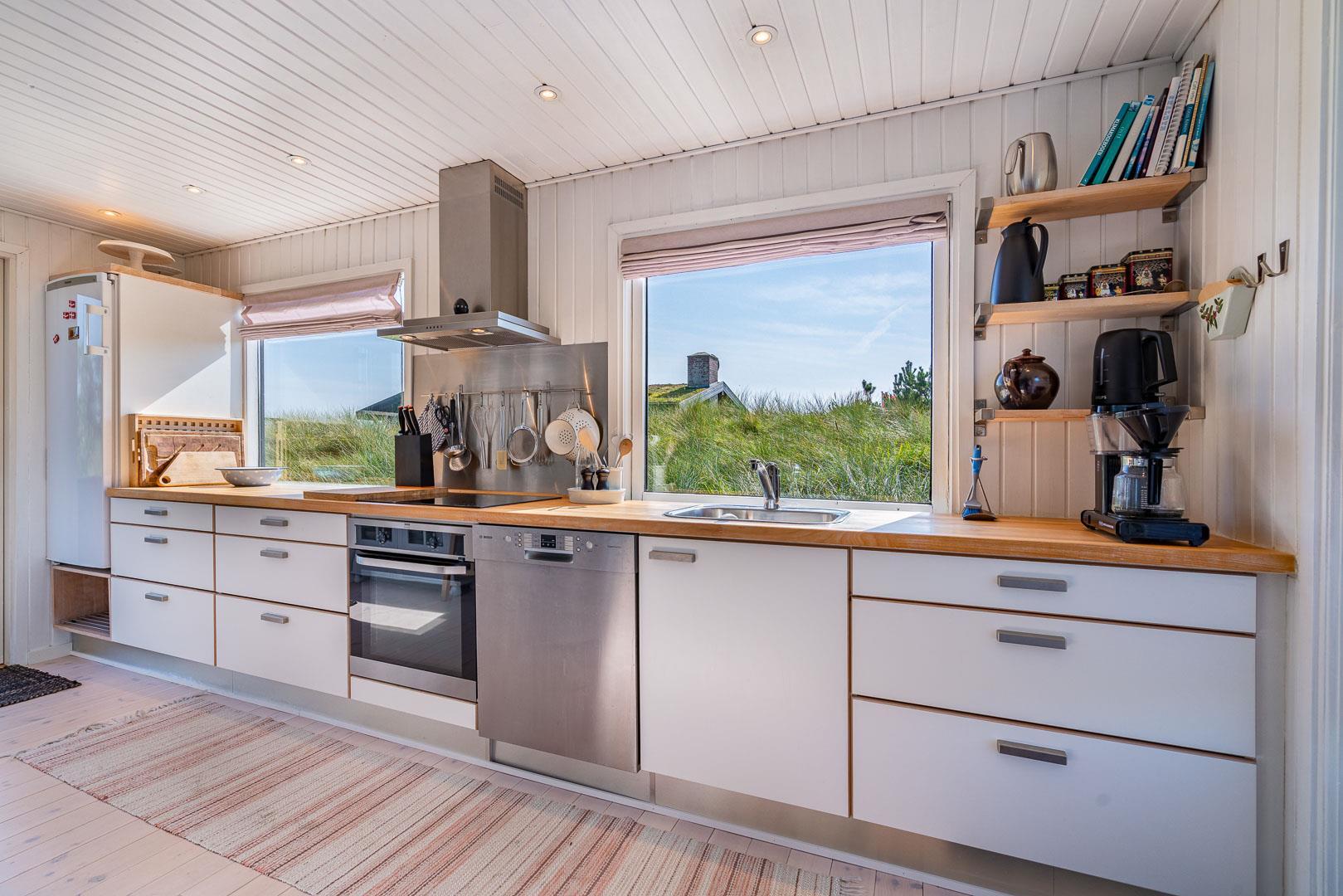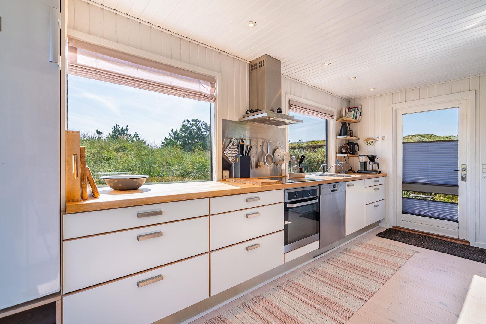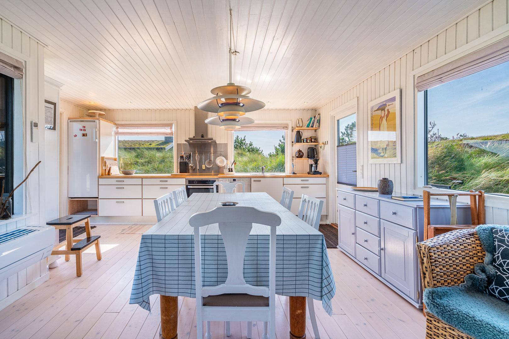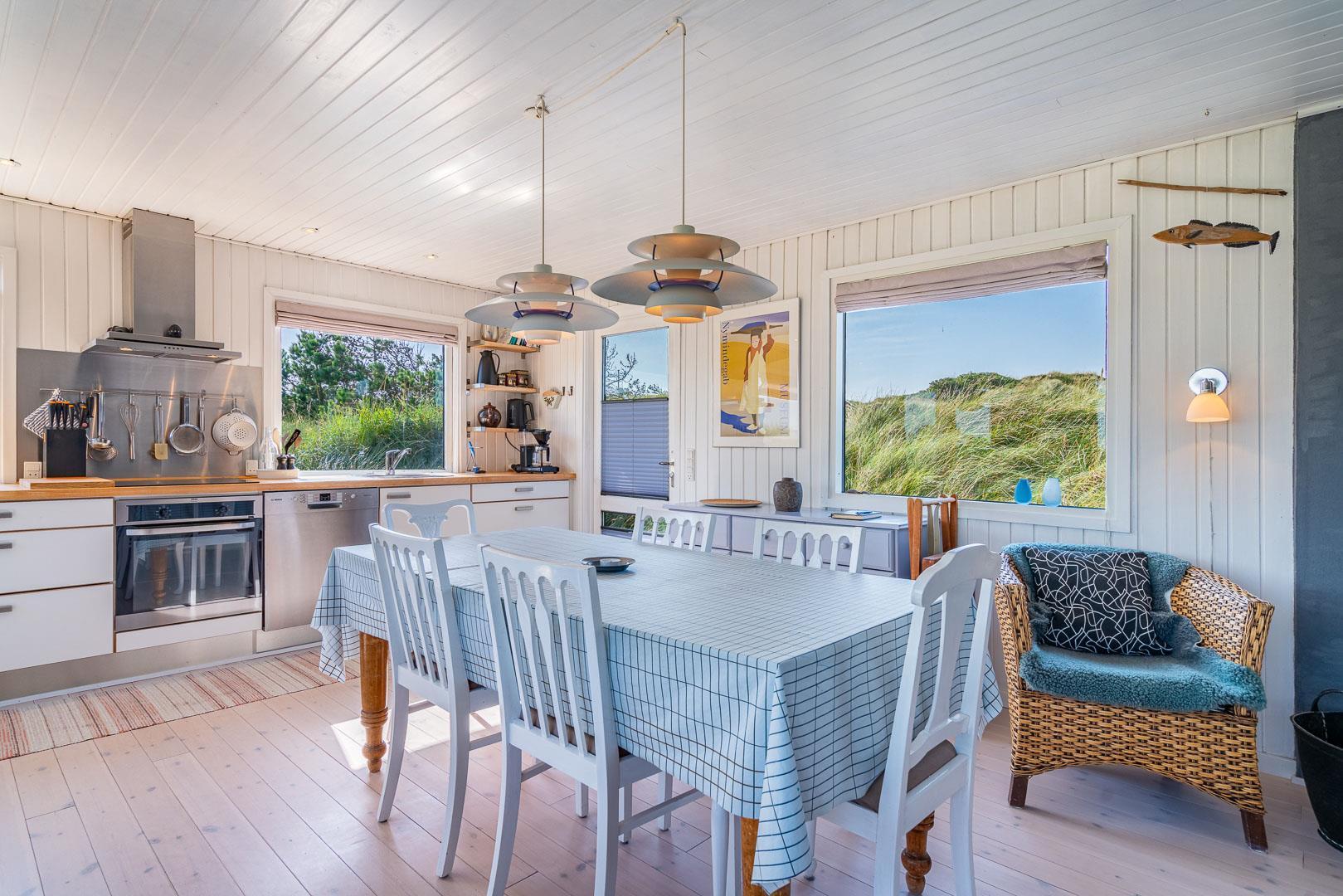 Prachtvolles und geschmackvoll eingerichtetes Holzhaus mit Fokus auf helle und freundliche Ferienhausstimmung gelegen auf einem tollen und hügeligen Naturgrundstück nahe am Naturschutzgebiet. Tolle Küche mit Spülmaschine, die kombiniert ist mit der schönen Stube mit Kaminofen, von der es Zugang zur ungestörten Terrasse gibt auf er man die schöne Umgebung und die Sonne genießen kann. Das Haus verfügt über eine Außendusche. Im Frühjahr 2011 wurde angebaut und das Haus hat seitdem ein großes Badezimmer mit Whirlpool und Sauna. Es gibt 3 gute Schlafzimmer mit Holzfußboden. Das Haus ist überall gut gepflegt und hat Stil und Charme.
