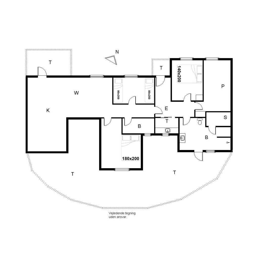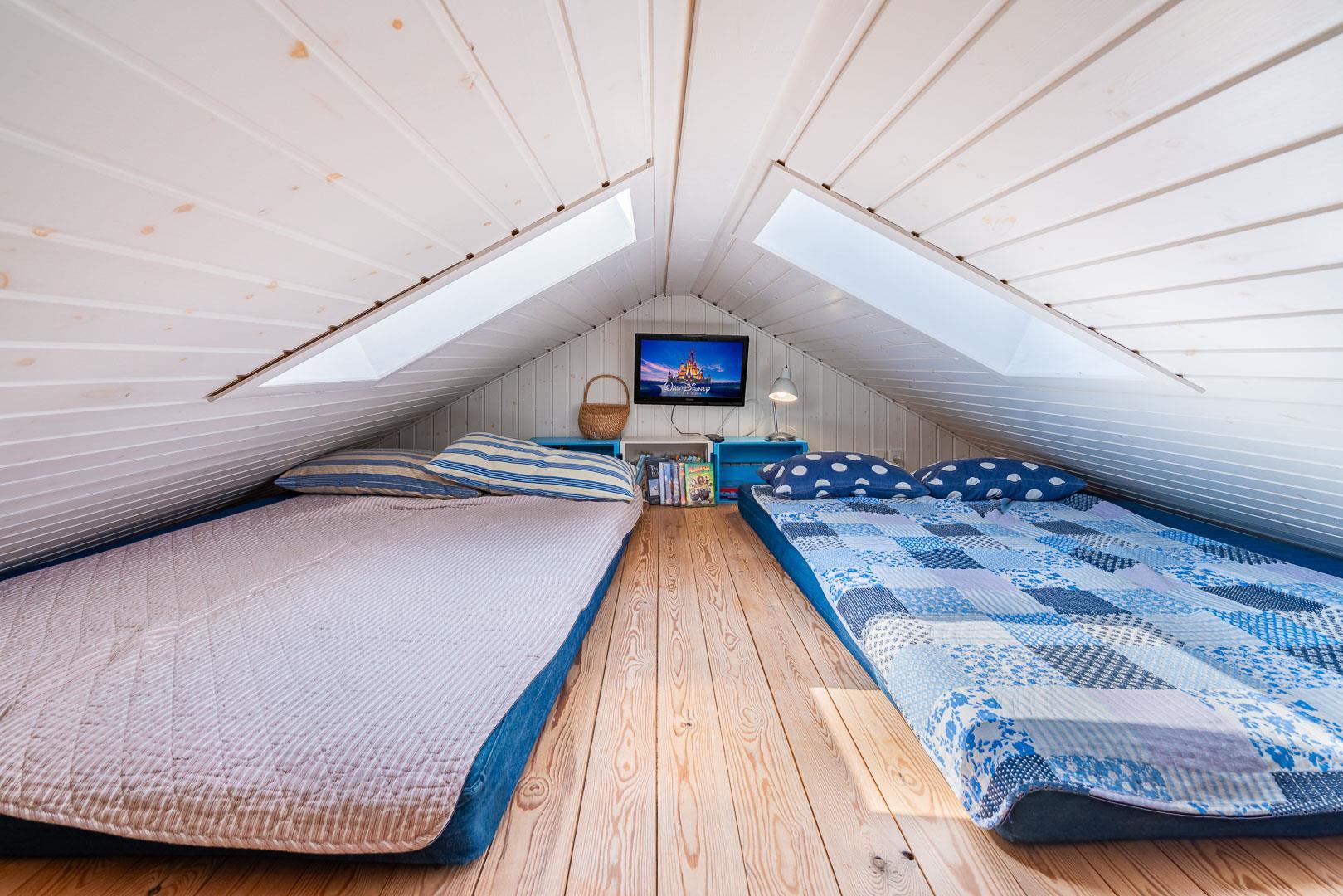 Bettengröße: 1 Doppelbett 180 x 200 cm + 1 Doppelbett 140 x 200 cm + 2 Einzelbetten 80 x 200 cm.