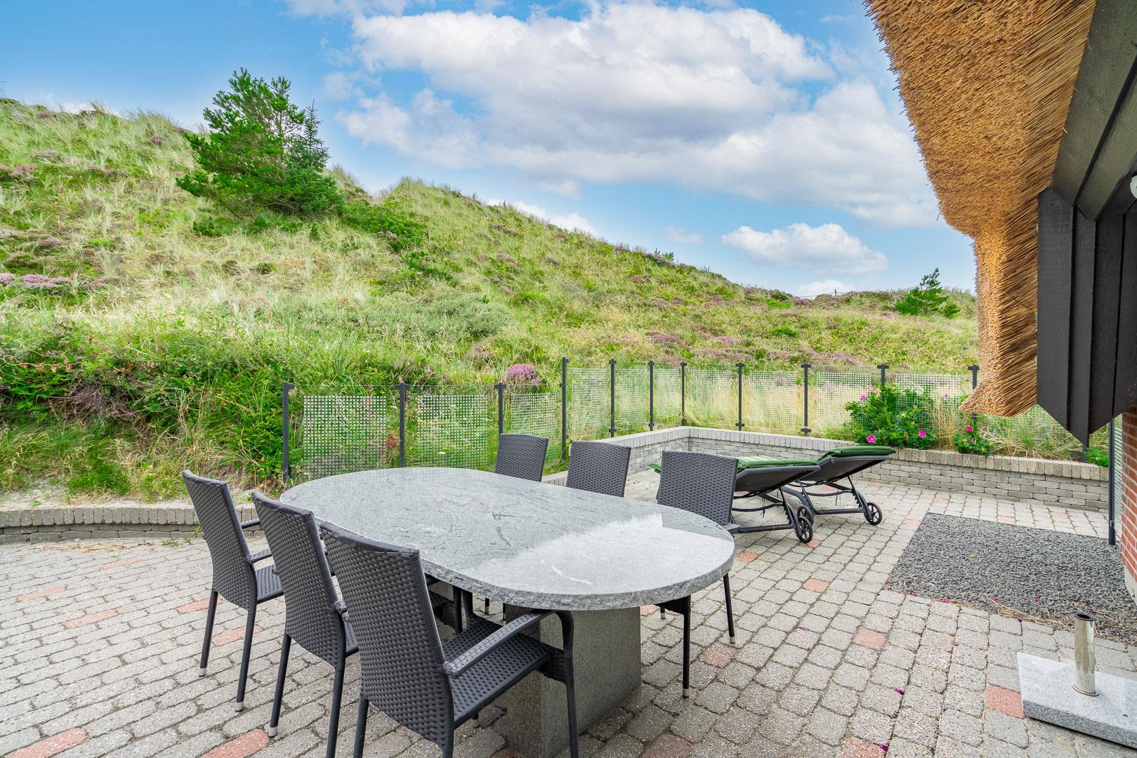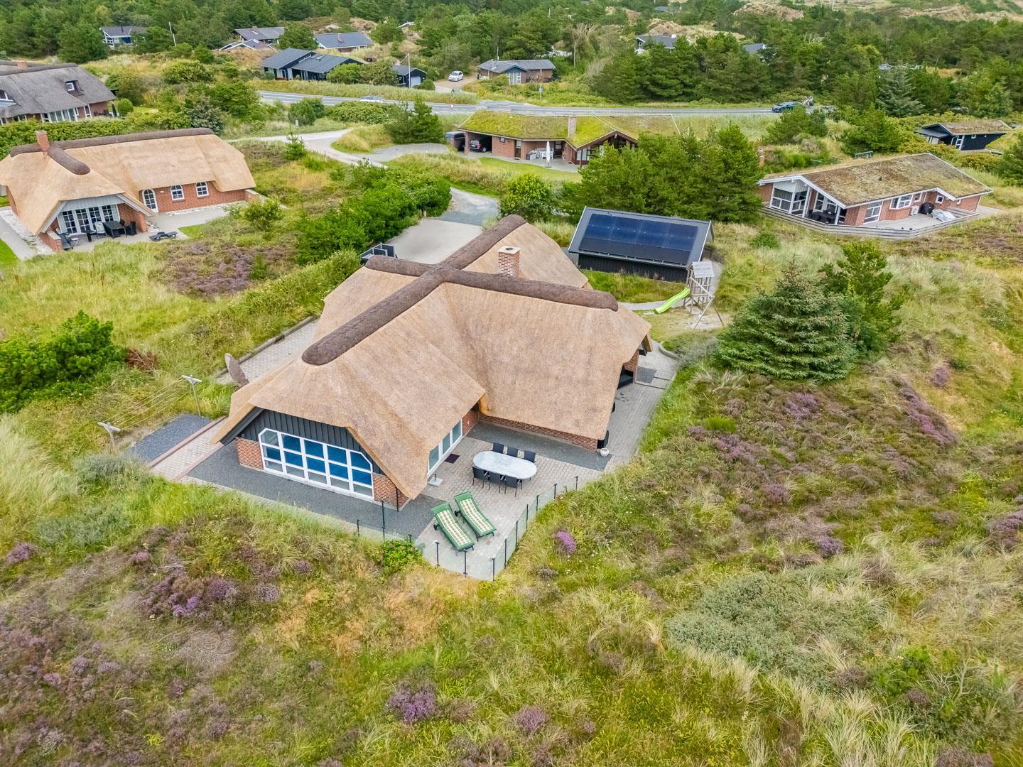 Schöne ruhige Lage und doch sehr zentral. Die Stadt mit allen Einkaufs- und Speisemöglichkeiten ist nur 500 Meter entfernt. Den Strand erreichen Sie nach 800 Metern. Die Düne am Haus überzeugt nicht nur mit Blick auf Henne Strand. Aber auch von hier aus genießt man ungestört einen grandiosen Blick auf die Nordsee.
