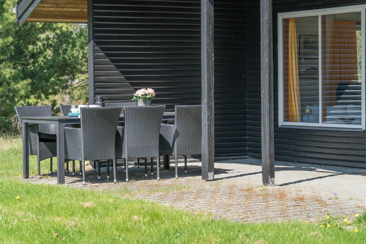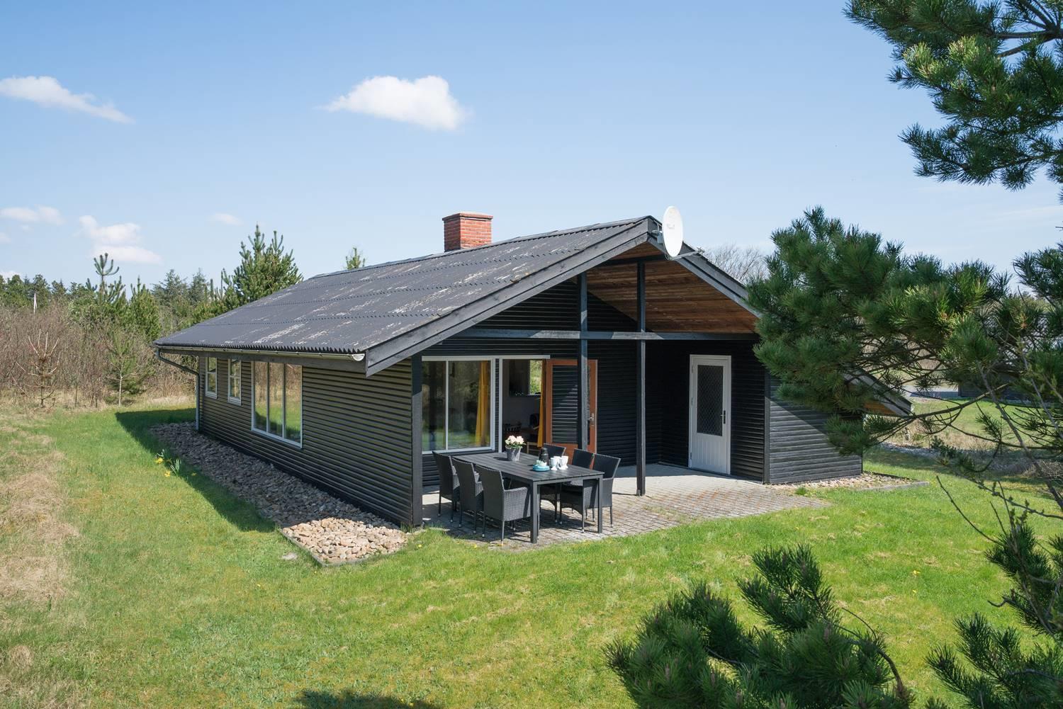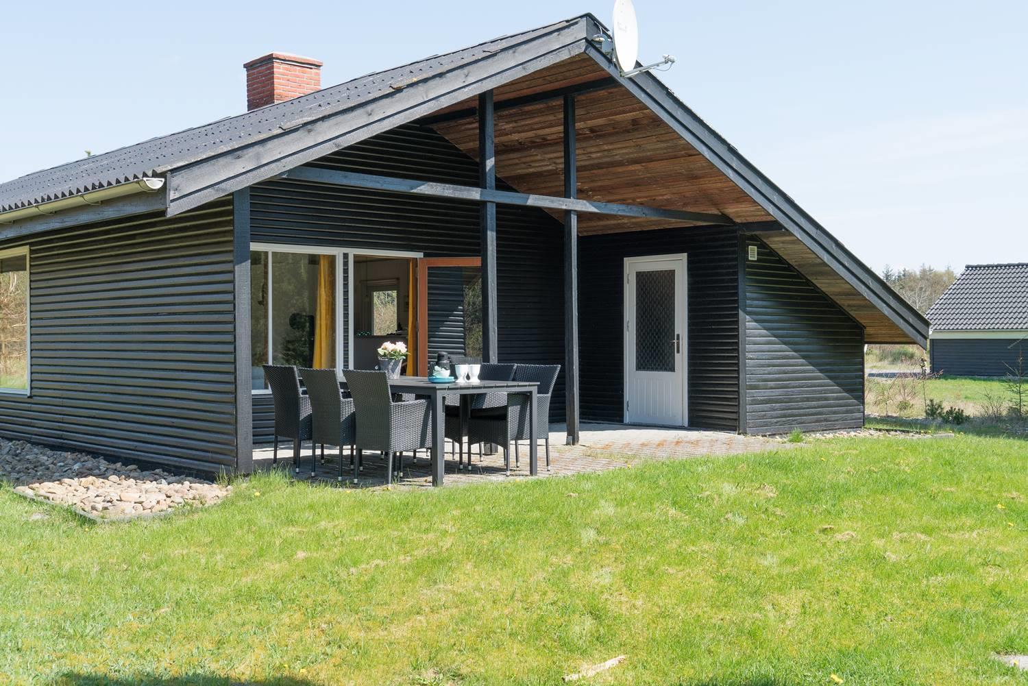 Dieses gemütliches Ferienhaus befindet sich auf einem Naturgrundstück mit kleiner Grasfläche nahe der Blåbjerg Plantage. Das Haus ist gepflegt und verfügt unter anderen über eine Küche neueren Datums die mit dem Wohnbereich verbunden ist. Der Wohnraum verfügt über einen Brennofen mit Glasscheibe. Vom Wohnbereich hat man Zugang zur teilweise überdachten und ungestörten Terrasse.