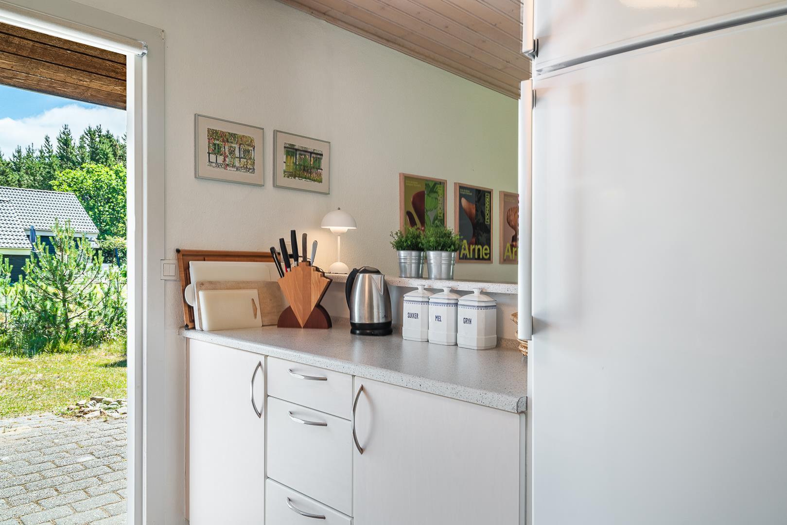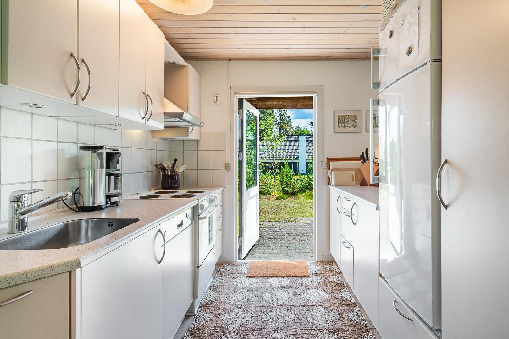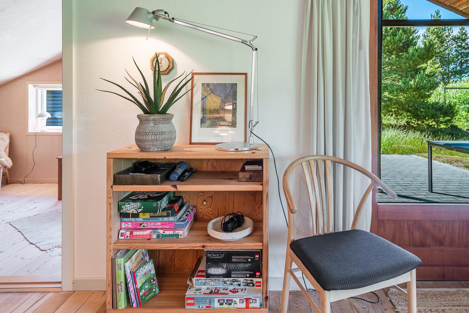 Dieses gemütliches Ferienhaus befindet sich auf einem Naturgrundstück mit kleiner Grasfläche nahe der Blåbjerg Plantage. Das Haus ist gepflegt und verfügt unter anderen über eine Küche neueren Datums die mit dem Wohnbereich verbunden ist. Der Wohnraum verfügt über einen Brennofen mit Glasscheibe. Vom Wohnbereich hat man Zugang zur teilweise überdachten und ungestörten Terrasse.