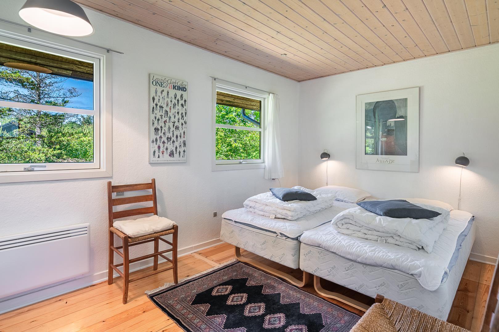 Bettengrösse: 1 Dobbeltbett mit je 2 Matratzen á 85 x 200 cm + 2 Einzelbetten 85 x 200 cm.