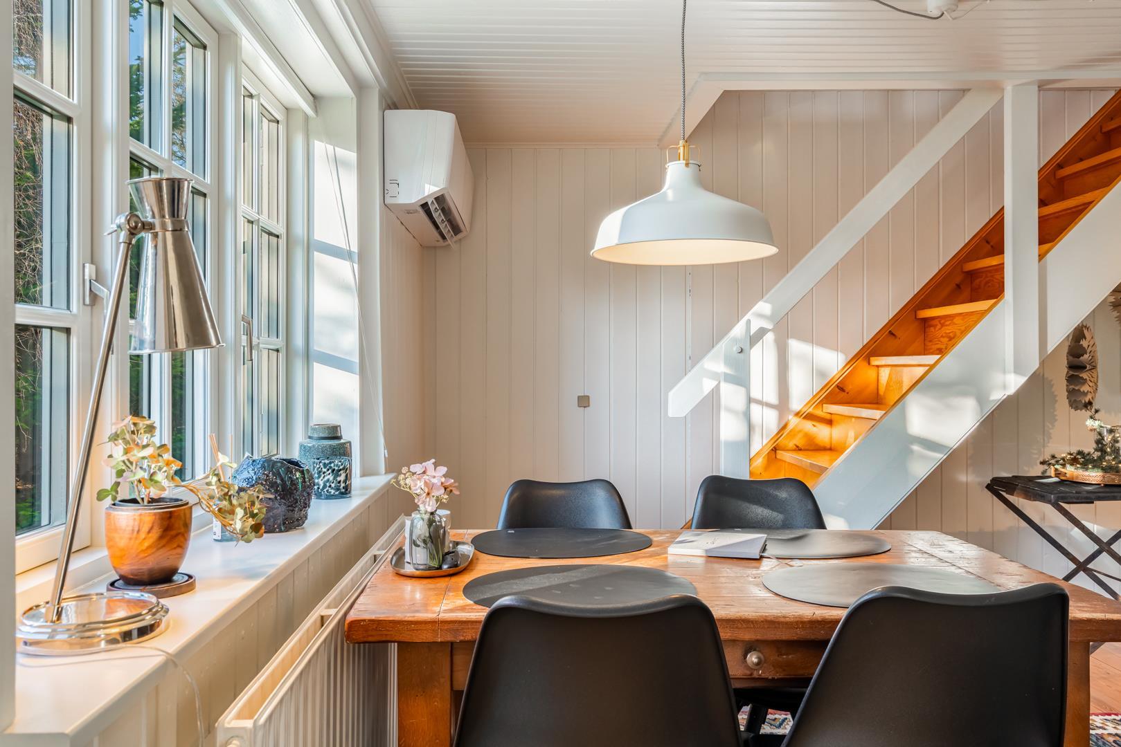 Der offene Wohnbereich ist freundlich, hell und lädt mit seiner durchdachten Einrichtung sofort zum Entspannen ein. An kühleren Tagen sorgt der Kaminofen für eine besonders behagliche Atmosphäre, während eine moderne Wärmepumpe das Raumklima zu jeder Jahreszeit angenehm reguliert.