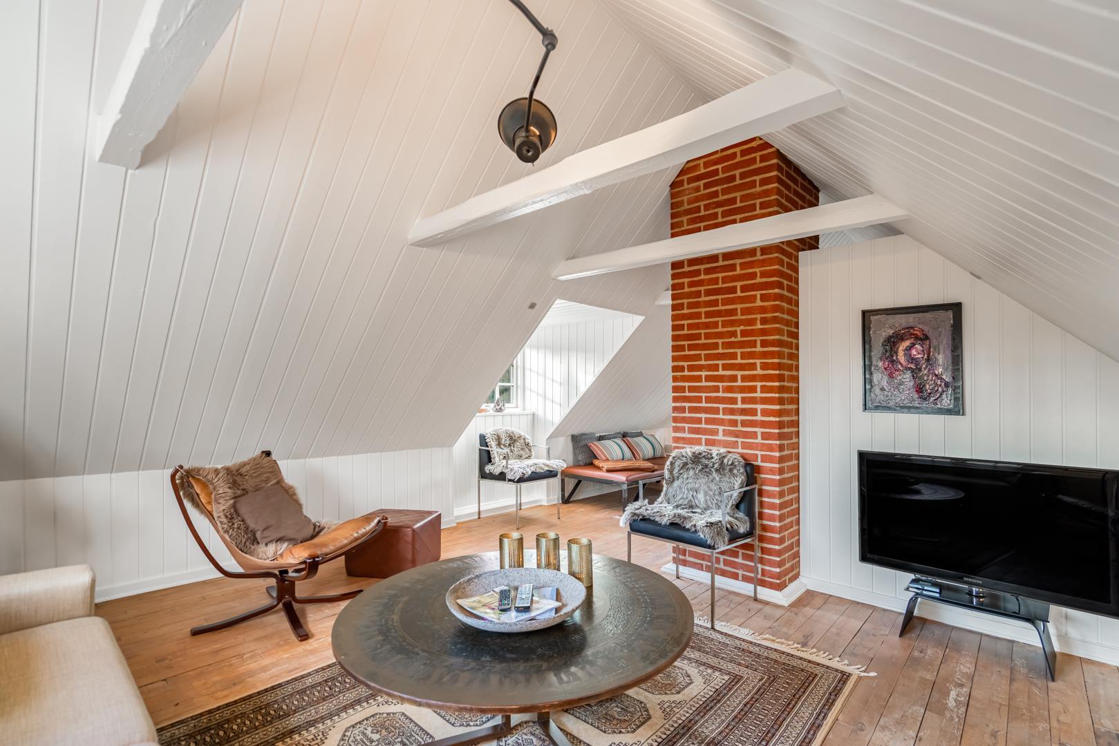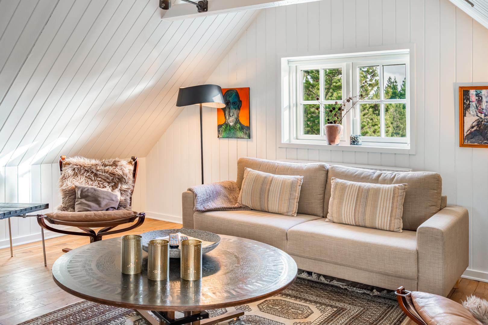 Gemütlicher Wohnbereich mit Kamin und moderner Ausstattung