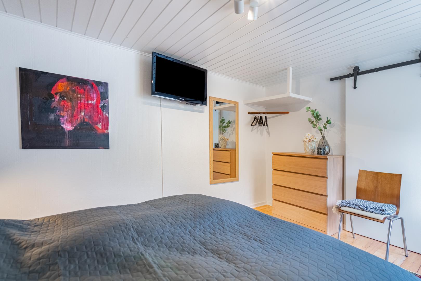 Das Ferienhaus verfügt über zwei Schlafzimmer, die jeweils mit komfortablen Doppelbetten ausgestattet sind. Ob als Paar, mit Kindern oder mit Freunden – hier finden alle ihren Rückzugsort. Das Badezimmer ist funktional gestaltet.