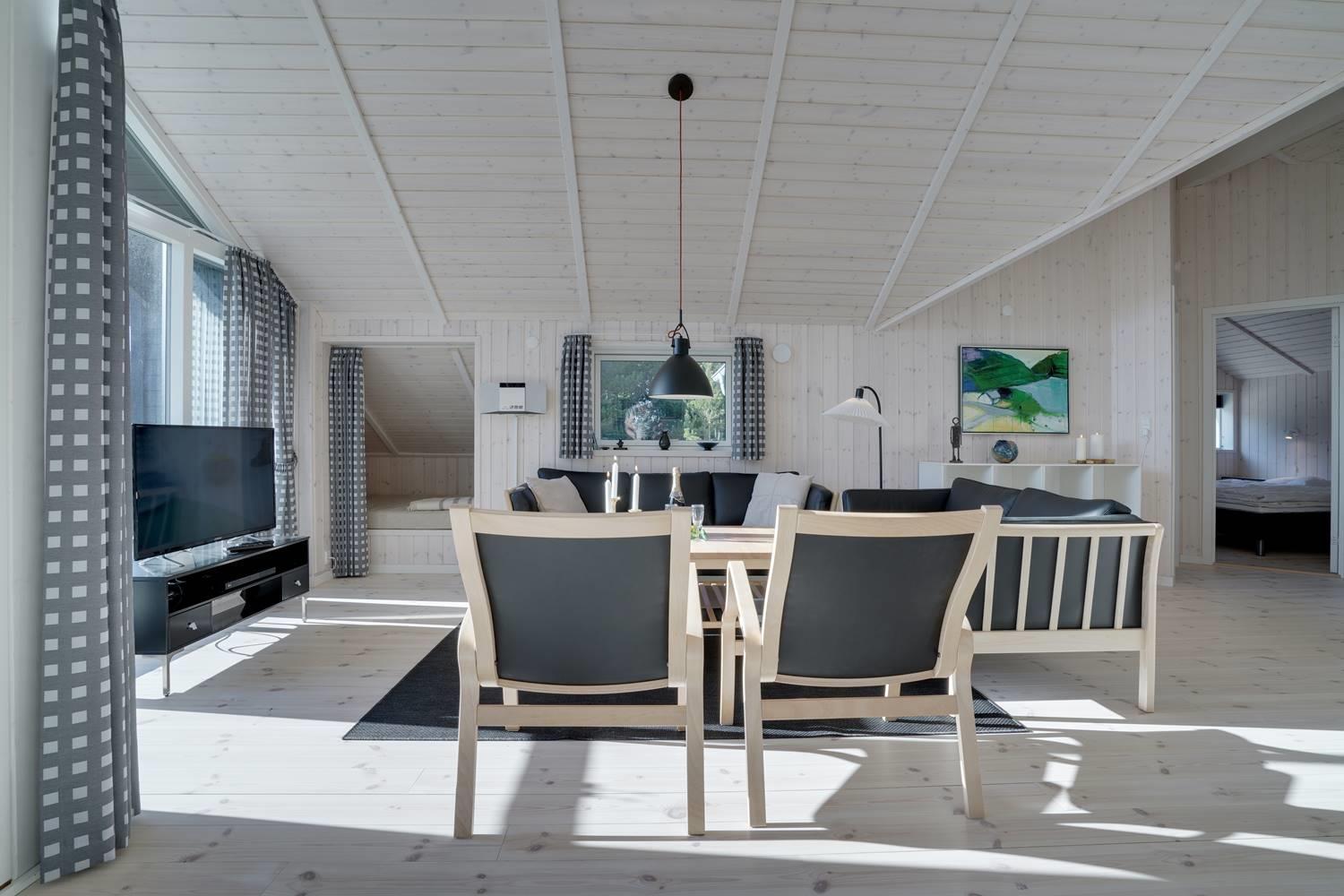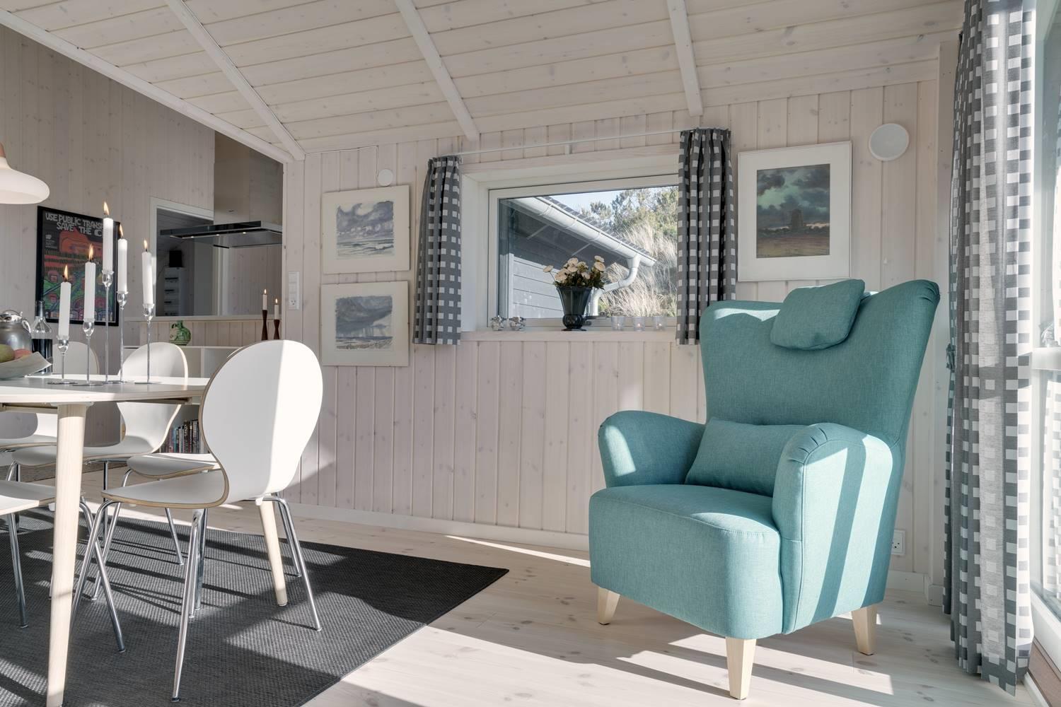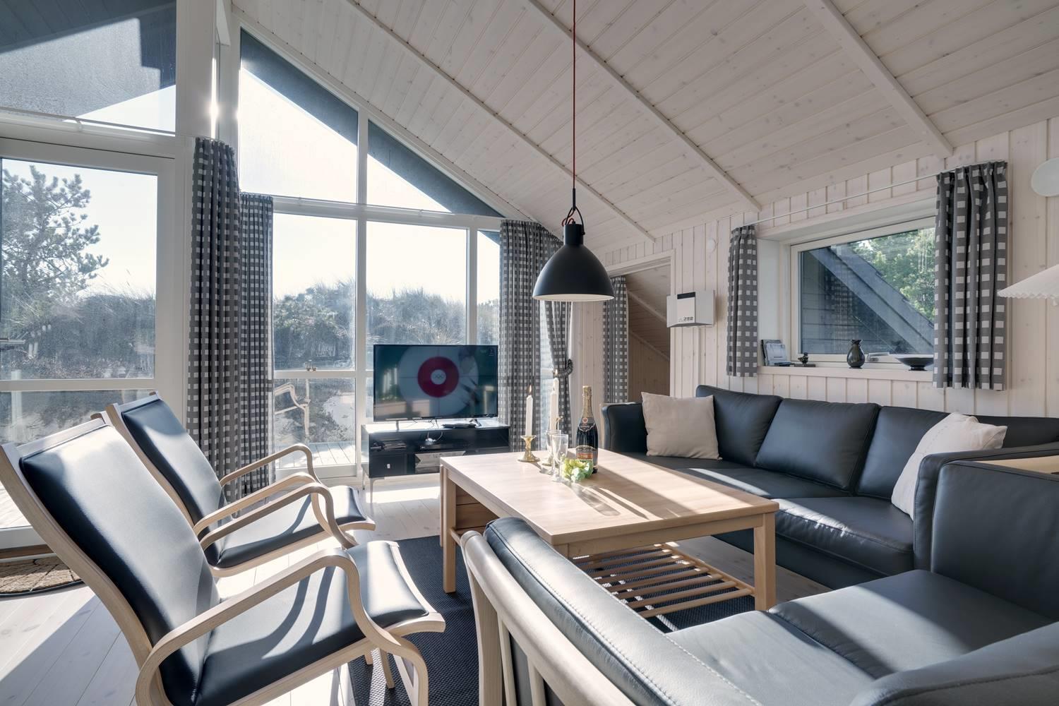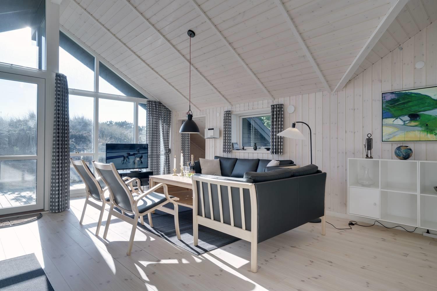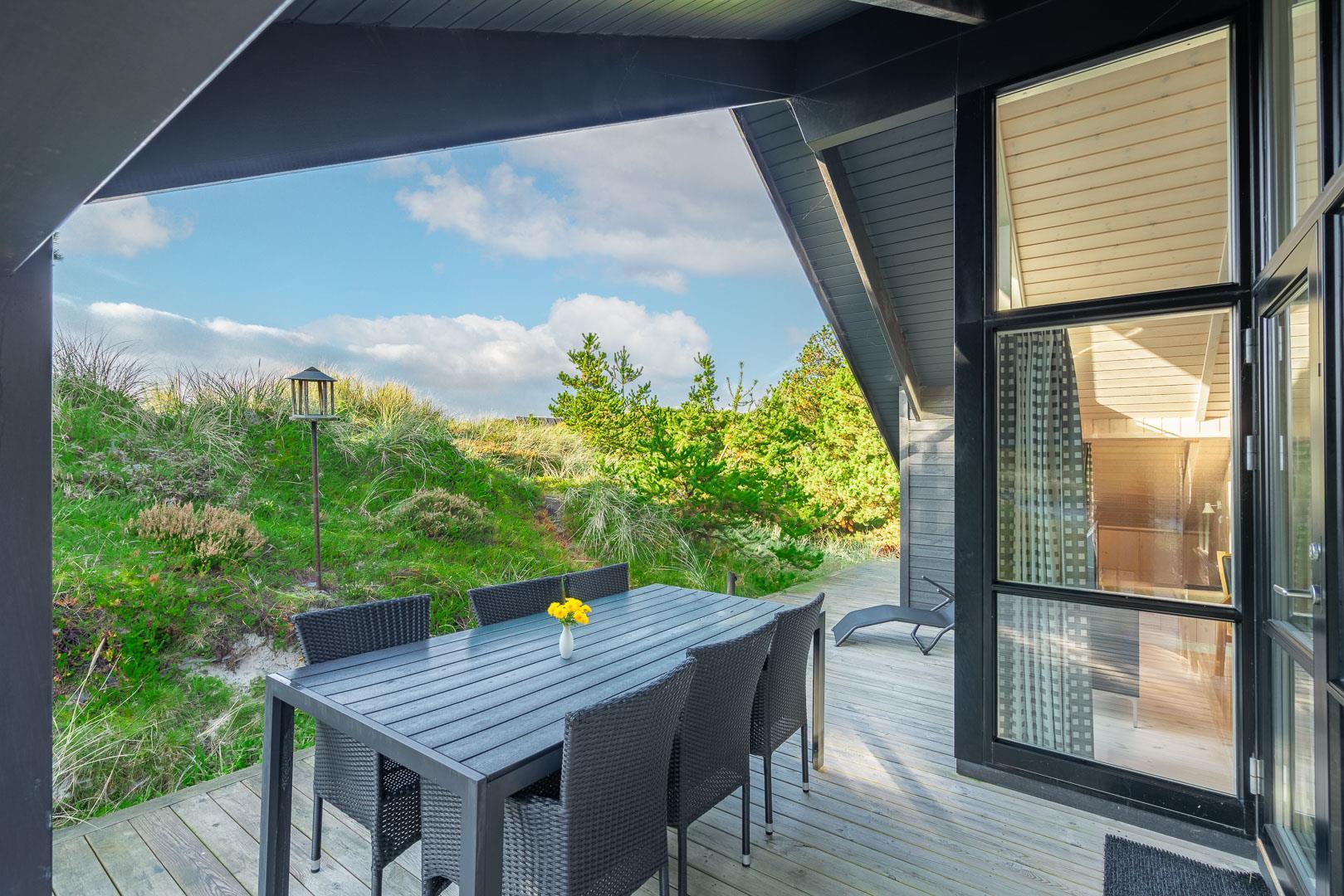 Ferienhaus gelegen auf einem fantastischen und ungestörten Dünengrundstück ganz nah an der geschützten Dünenlandschaft und an der Nordsee. Im Eingang vom Haus gibt es eine Waschmaschine und einen Trockner. Großes und tolles Badezimmer mit Badewanne und Sauna. Extra Badezimmer mit Dusche. Große schöne Küche, die in offener Verbindung mit der gemütlich eingerichteten Stube liegt. Es gibt auch einen Alkoven in der Stube. Mehrere schöne Terrassen umgeben das Haus, von wo es Möglichkeiten gibt für Sonne und Windschutz. Gute Schlafzimmer mit reichlich Schrankplatz. Ein fantastisches Haus, wo der Rahmen für einen richtig schönen Urlaub geschaffen ist - das ganze Jahr über.