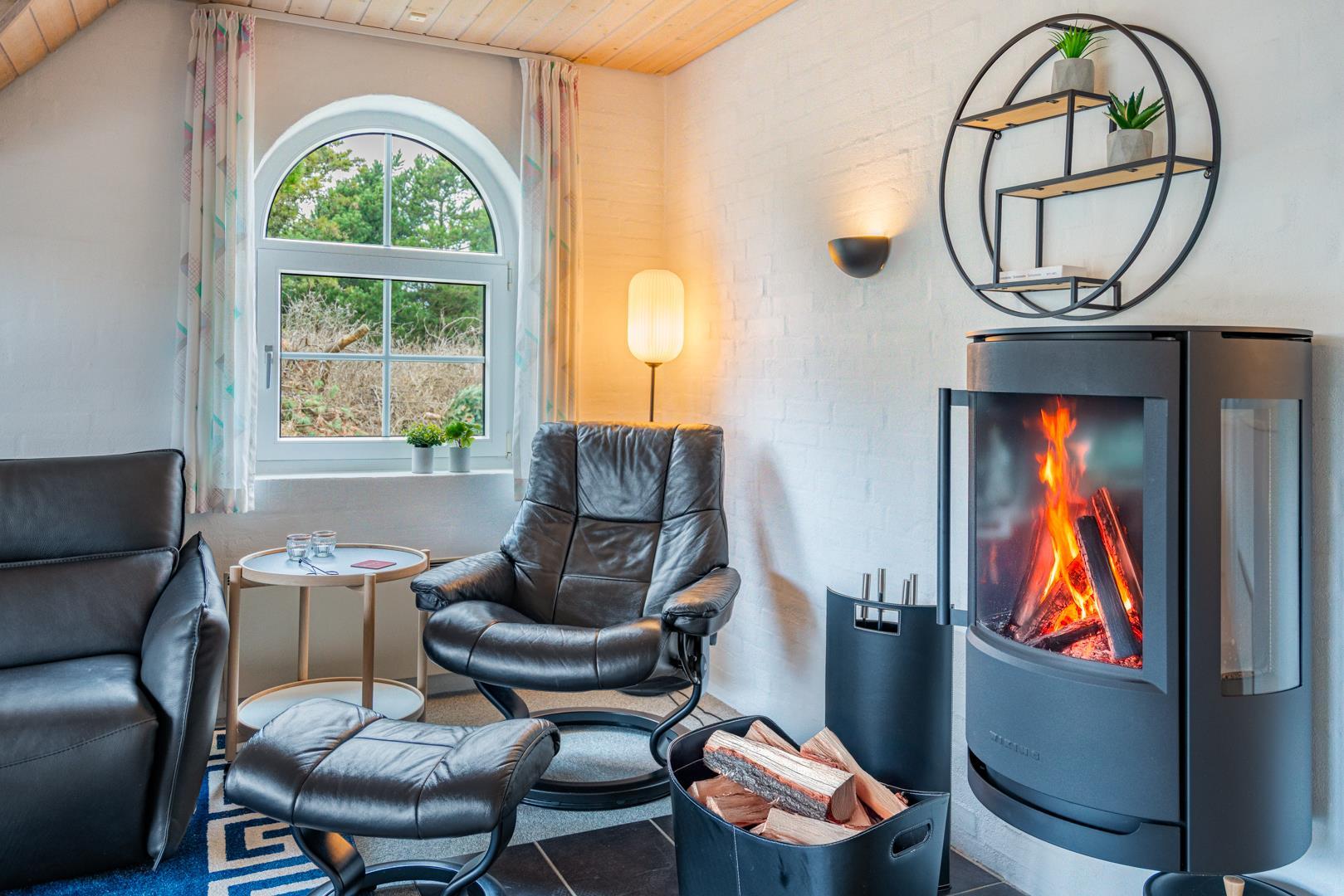 Heller Wohnbereich mit Kamin – Wohlfühlatmosphäre für deinen Nordseeurlaub