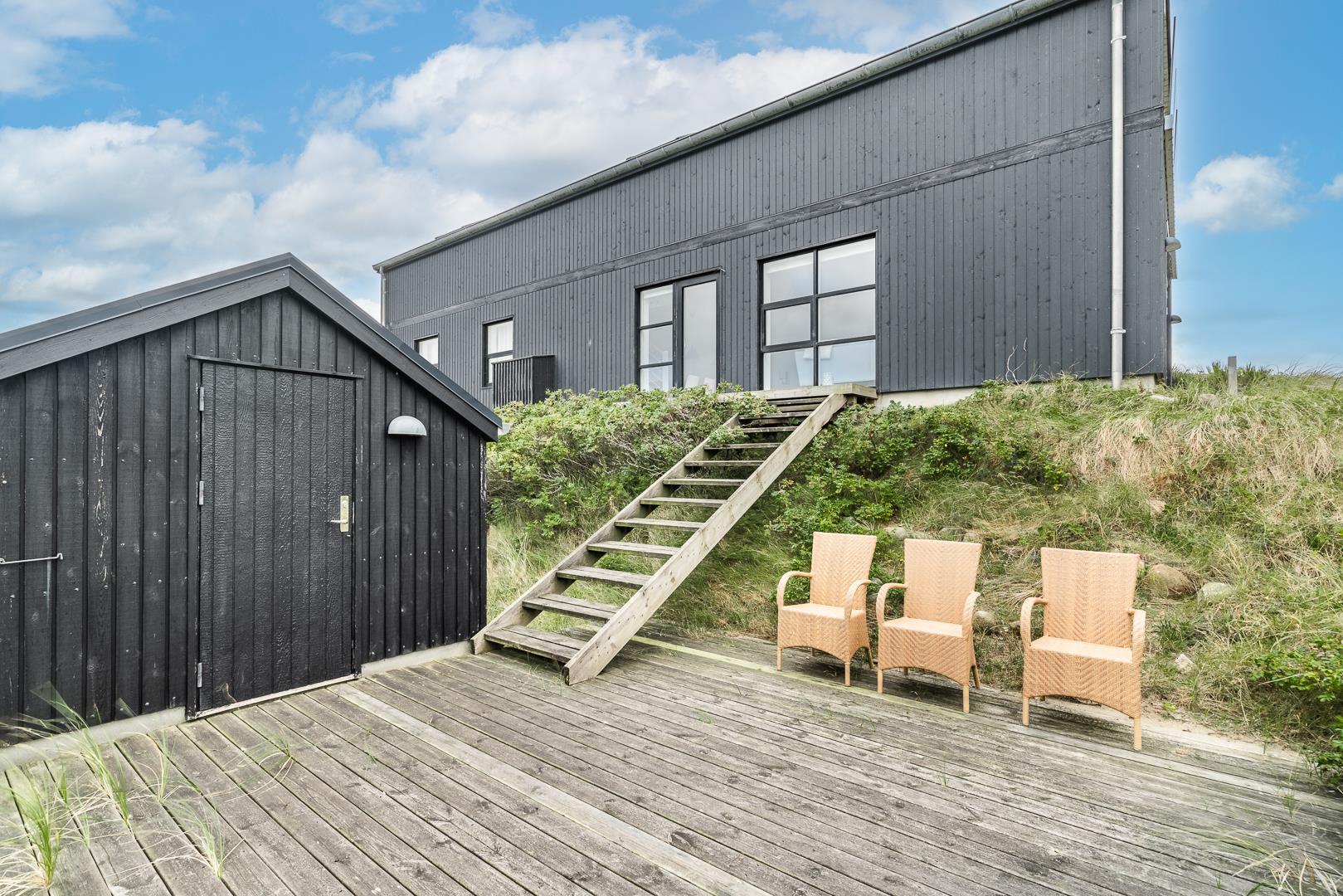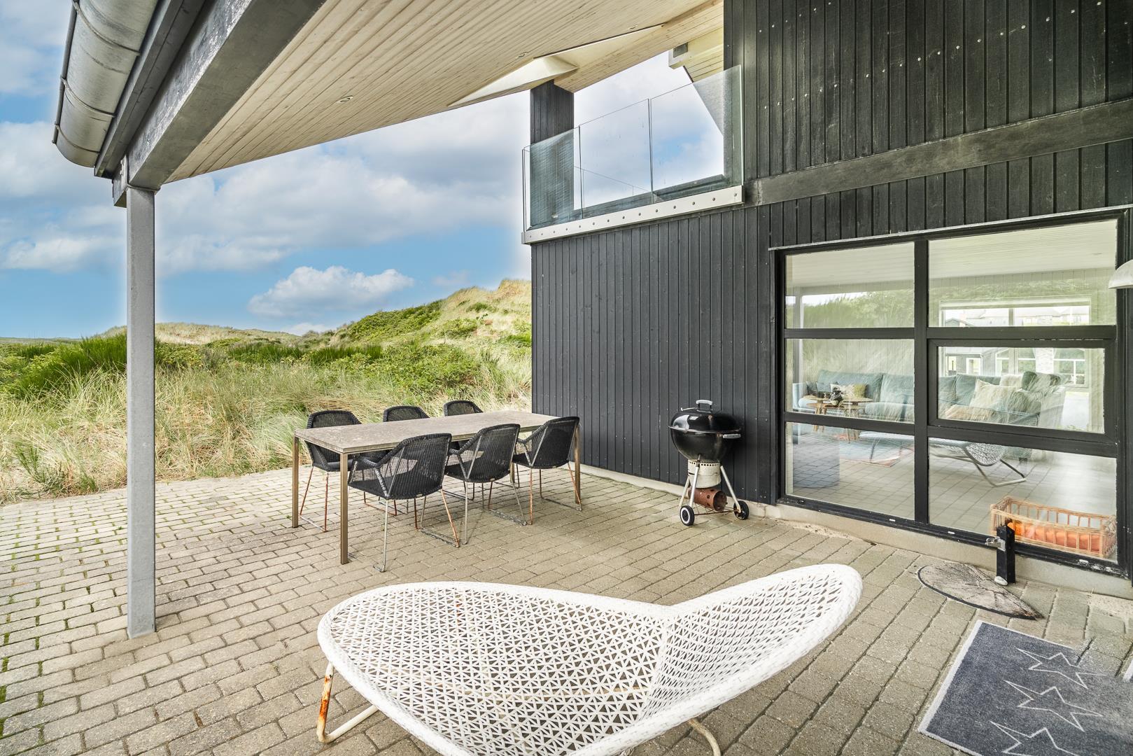 Das Sommerhaus ist von mehreren Terrassen umgeben, auf denen Sie die Natur bei Tageslicht genießen können. Installierte Außendusche. Hier haben Sie die Gelegenheit, einen wirklich guten und unvergesslichen Urlaub zu verbringen. Zum Strand sind es 5 Gehminuten über einen öffentlichen Naturpfad und 10 Gehminuten zum Ferienort Henne Strand mit guten Einkaufsmöglichkeiten und mehreren Restaurants.