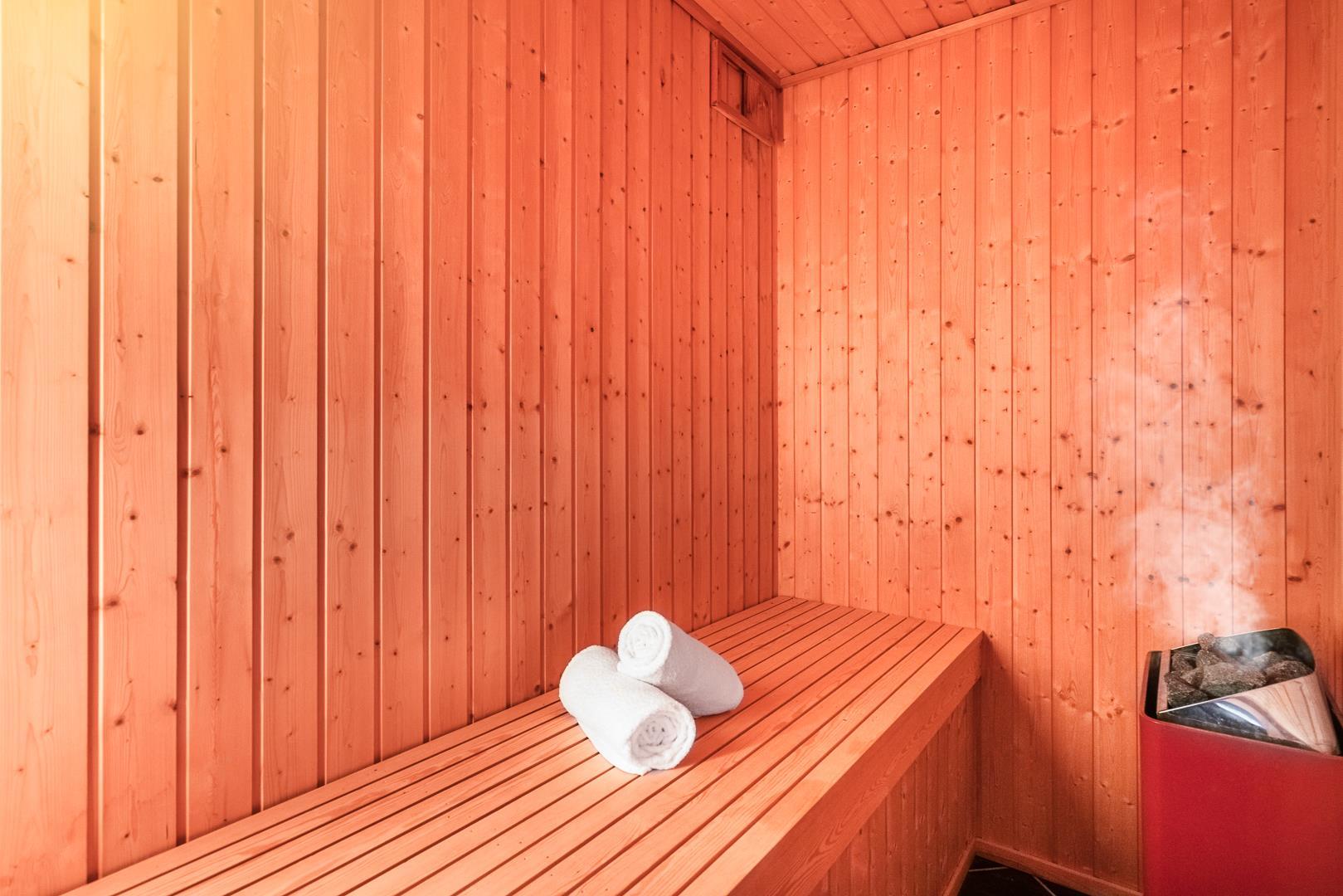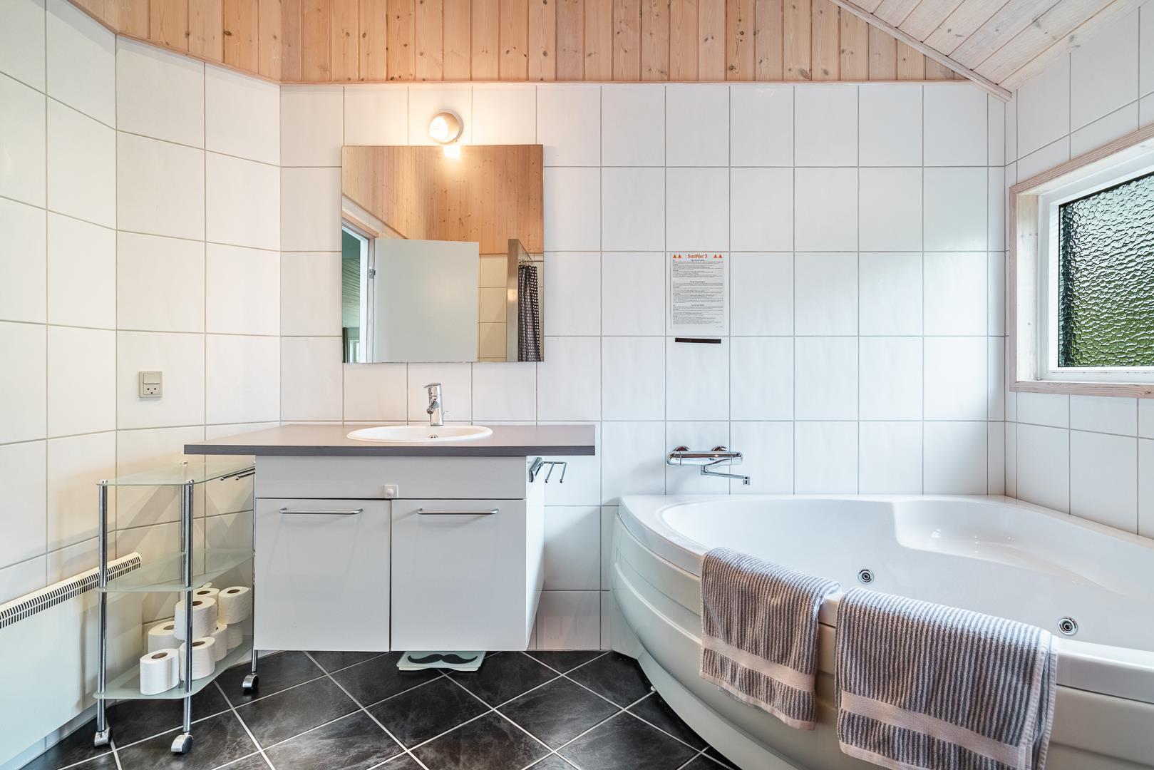 2 Badezimmer, wobei im großen Badezimmer ein Whirlpool und eine Sauna vorhanden ist. Es gibt 3 gute Schlafzimmer.