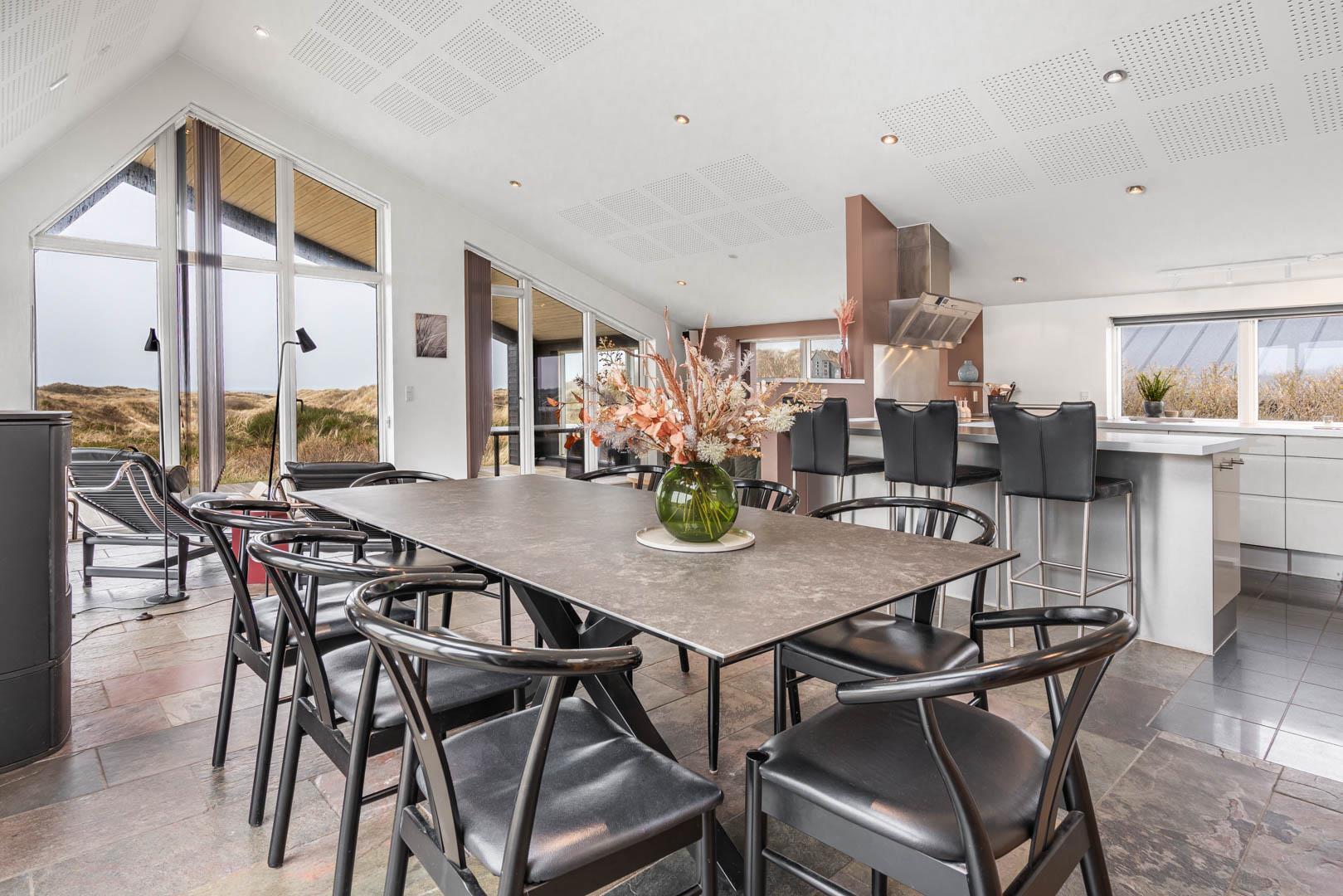 Mögen Sie die wunderschöne Natur entlang der Küste Westjütlands und schätzen Sie Qualität, Wohlbefinden und Zusammensein? Dann ist dieses Ferienhaus genau das Richtige für Sie. Hier machen Sie Urlaub in einem großen, vom Architekten entworfenen Qualitätshaus mit Aktivitätsraum, Wellnessabteilung und einem einzigartigen Blick auf die weichen Dünenlinien mit der rauschenden Nordsee im Hintergrund.