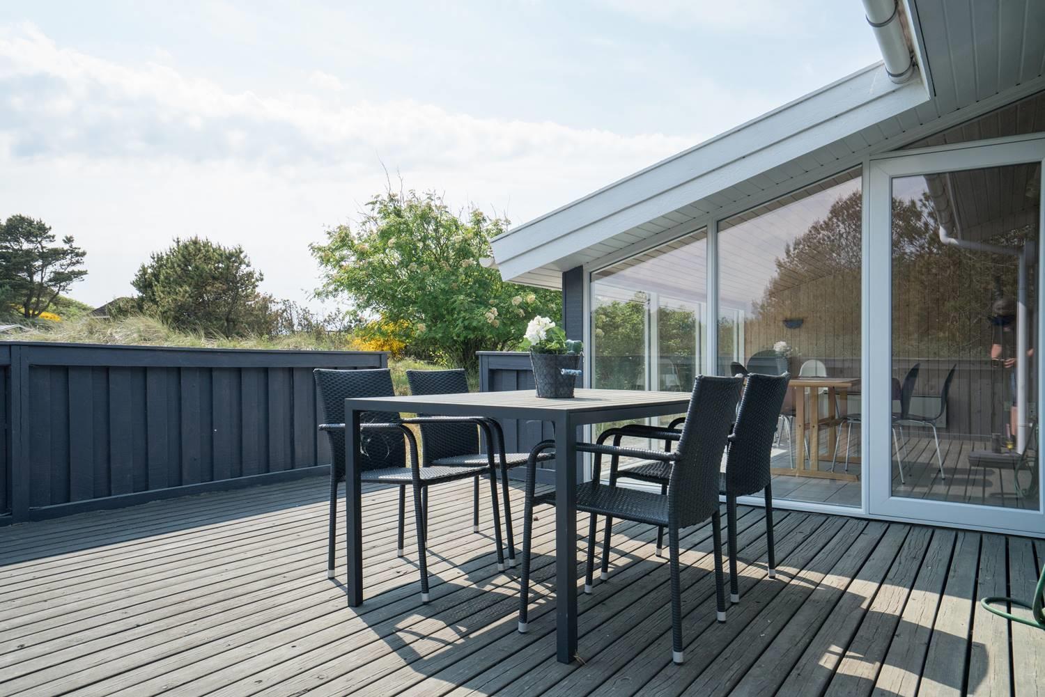 Das Haus befindet sich auf einem großen, ungestörten Naturgrundstück, wo Sie die Ruhe und die frische Westjütländische Luft in vollen Zügen genießen können. Draußen stehen Ihnen sowohl eine überdachte als auch eine offene Terrasse zur Verfügung – ideal für Mahlzeiten unter freiem Himmel oder entspannte Stunden mit einem guten Buch und einem traumhaften Blick über die Umgebung.