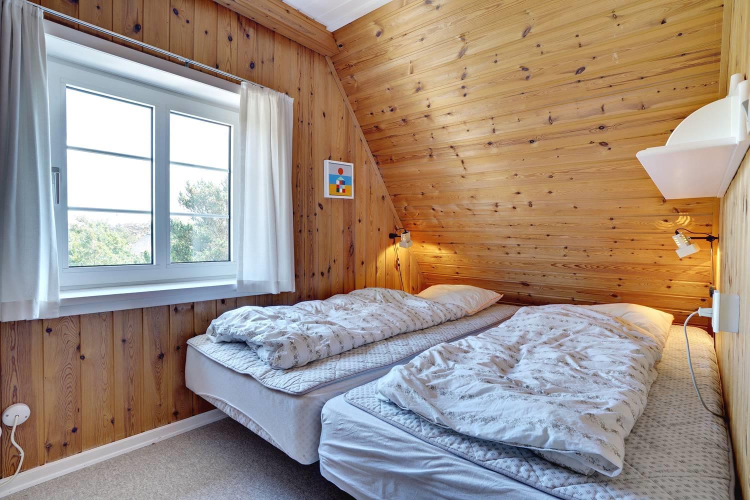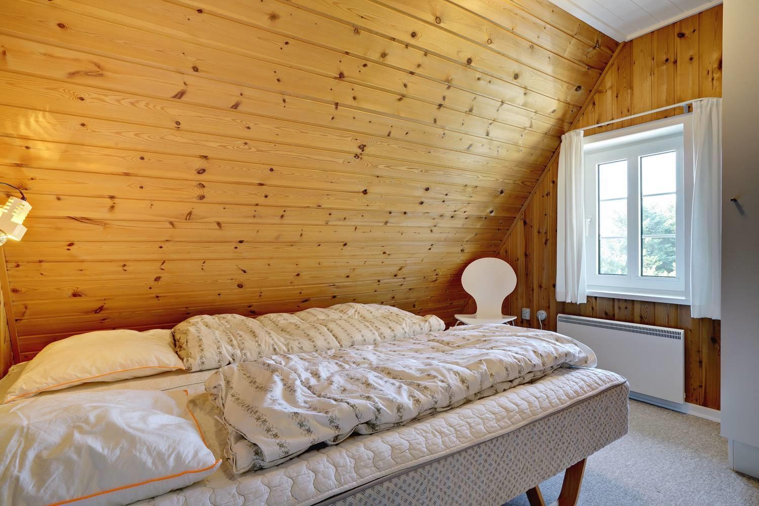 Im Obergeschoss des Ferienhauses befinden sich drei Schlafzimmer, die jeweils mit einem Doppelbett ausgestattet sind.
