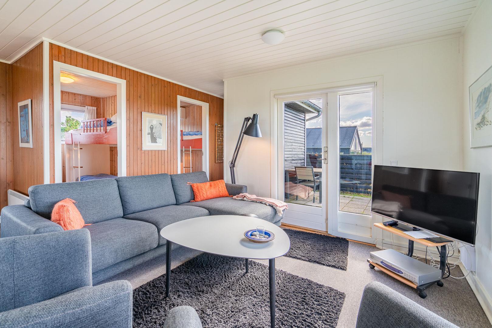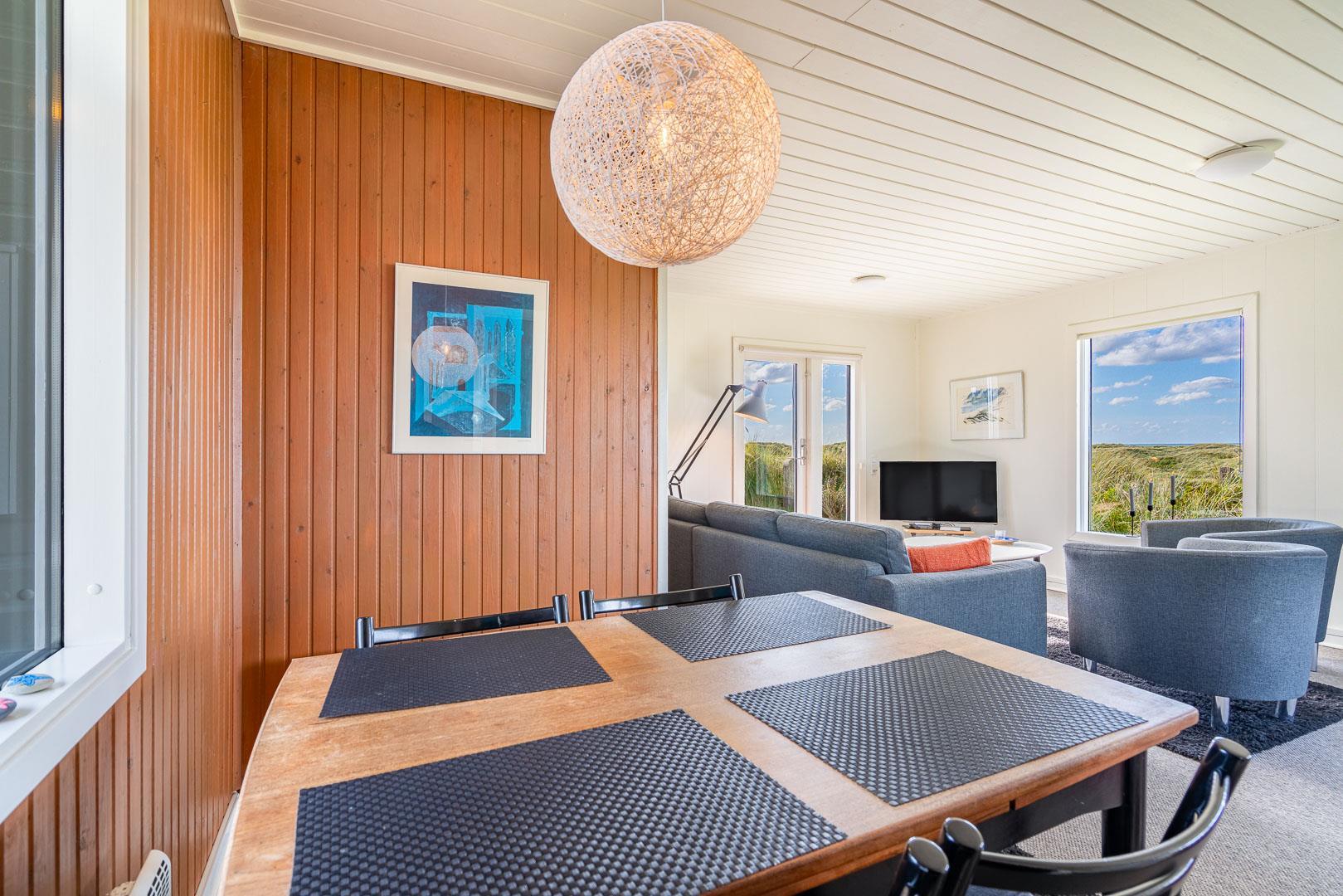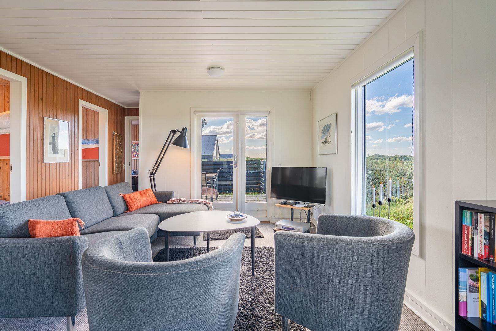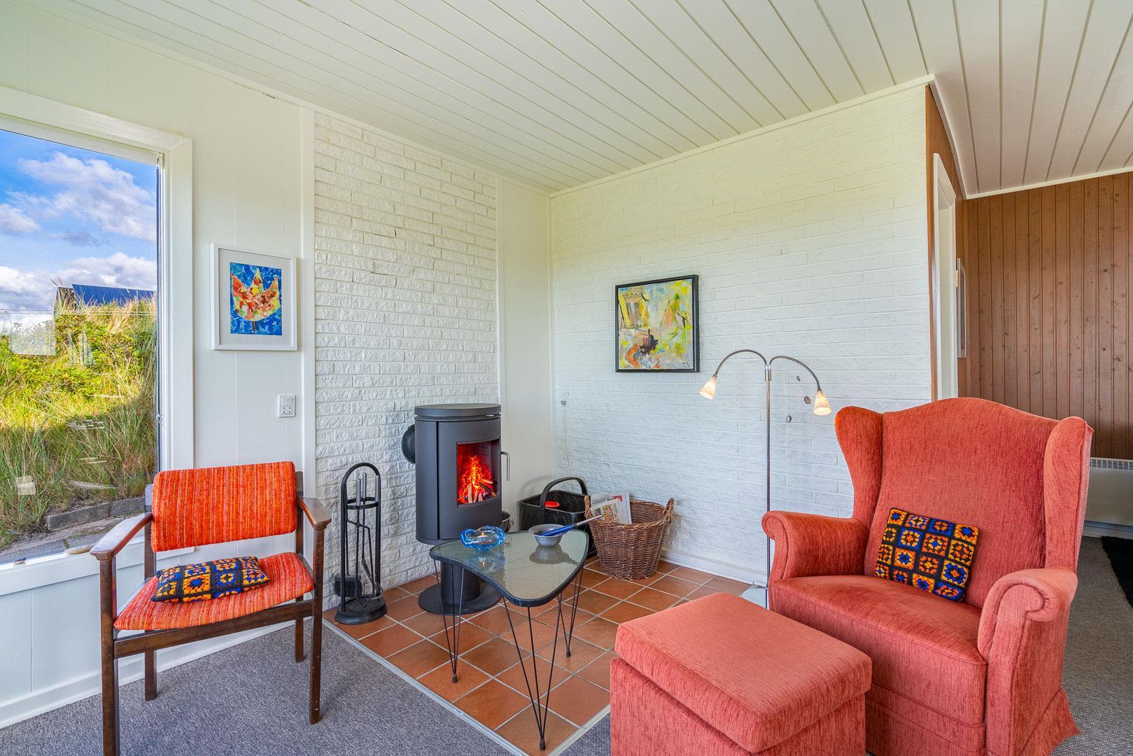 Charmantes Ferienhaus mit Meerblick gelegen auf einem prachtvollen und hochgelegenen Dünengrundstück in erster Dünenreihe in Henne Strand. Das Haus ist 2015 komplett modernisiert, so dass das ganze Haus hell und freundlich ist. Gemütliche Stube, die eingerichtet ist in gutem Stil und mit guten Möbeln. Die Stube hat große Fenster, so dass man das Meer und die fantastische Aussicht über die Dünen voll genießen kann. Ein Schlafzimmer mit guten Einzelbetten und Schränken. Gut ausgestattete Küche mit Spülmaschine und Mikrowelle. Es gibt auch vom Küchenfenster eine tolle Aussicht über die Dünenlandschaft. Badezimmer mit Dusche, extra Toilette. Es gibt mehrere tolle und ganz ungestörte Terrassen um das Haus herum. Ein fantastisches und super gemütliches Ferienhaus für 2 Personen. Depotraum auf der Terrasse ist privat.