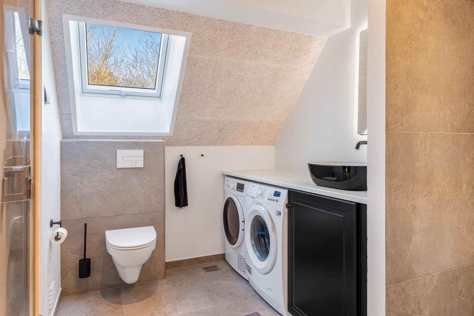 Zusätzlich stehen Waschmaschine und Trockner zur Verfügung, und im praktischen Eingangsbereich findest du ausreichend Platz für Jacken, Schuhe und sonstige Kleidung.
