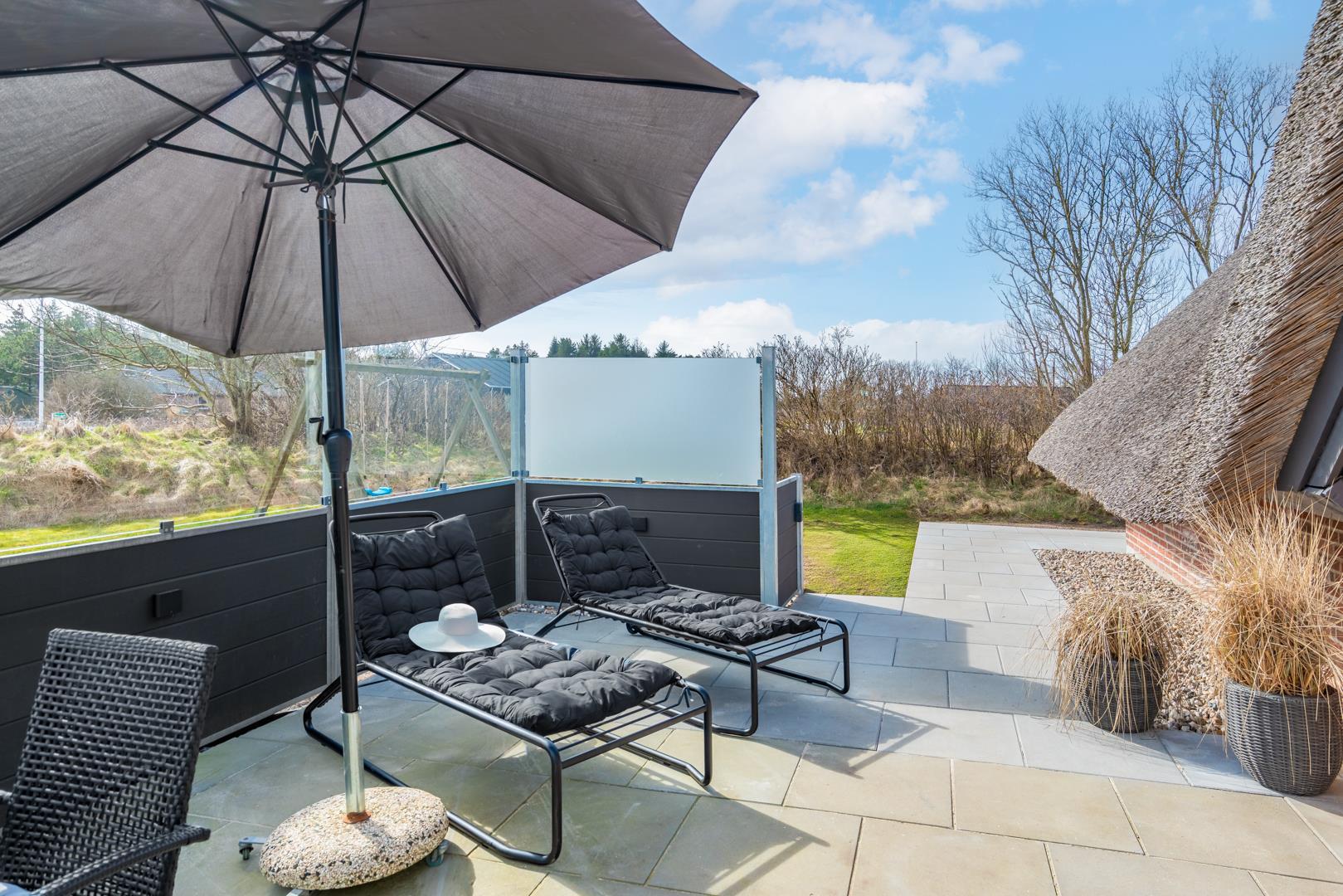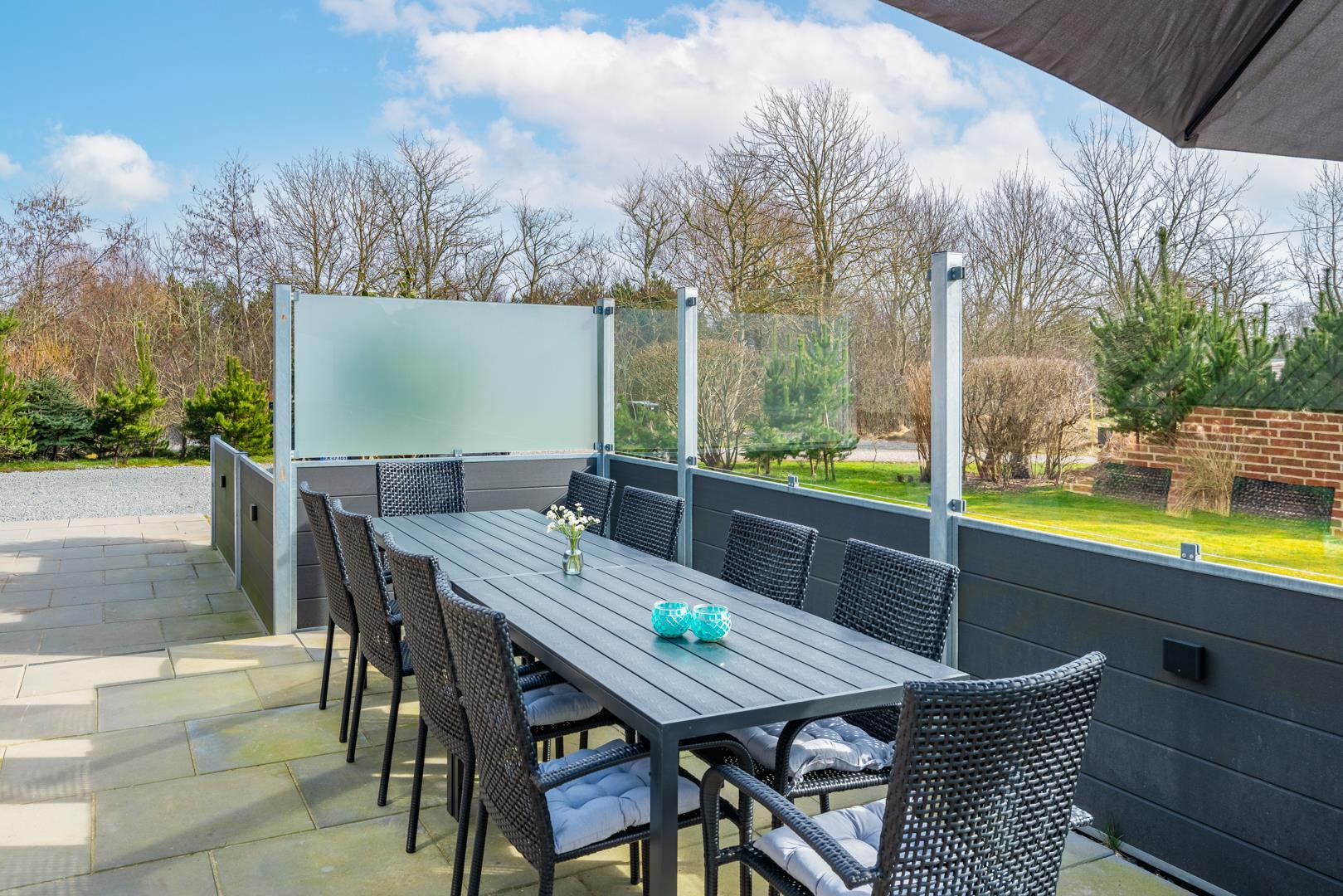 Der Außenbereich im Hennebysvej 54 ist ideal für entspannte Urlaubstage. Das Grundstück ist von Büschen und Bäumen umgeben, wodurch du hier viel Privatsphäre und Ruhe genießen kannst.