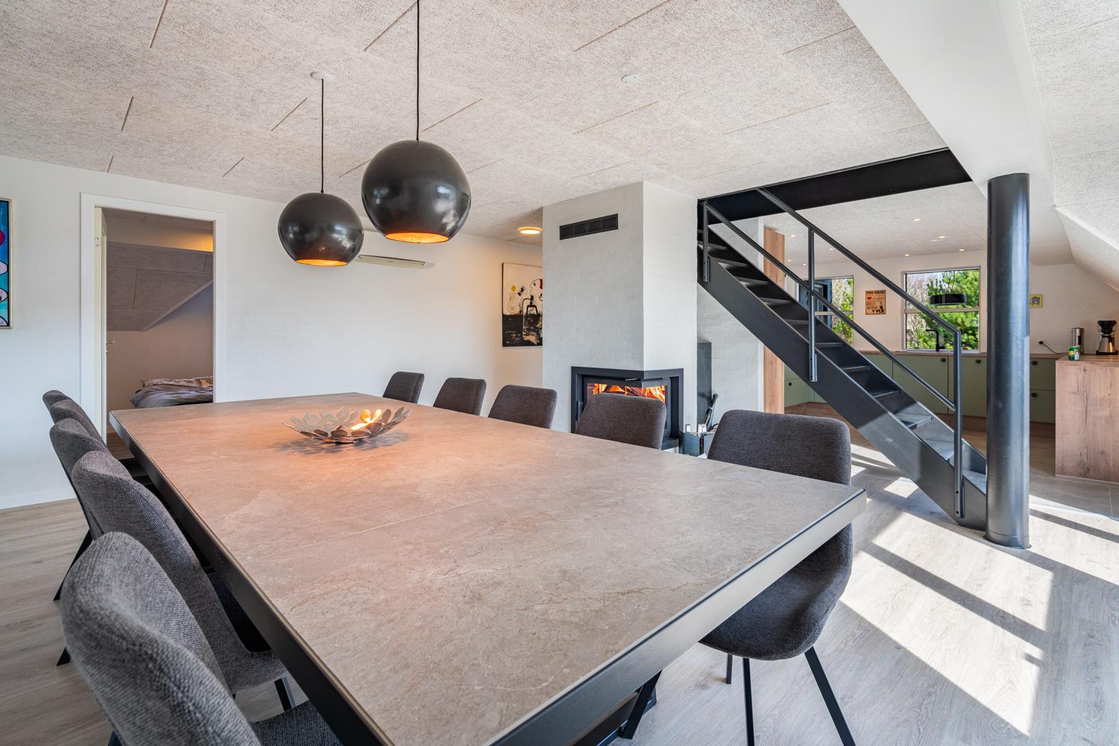 Dieses stilvolle Ferienhaus in Henne Strand überzeugt mit einer hellen und offenen Raumaufteilung. Das Herzstück ist die große Küche in offener Verbindung mit Essbereich und Wohnzimmer. Hier kannst du gemeinsam kochen, essen und entspannen. Die Küche ist modern ausgestattet – inklusive Spülmaschine, Fußbodenheizung und viel Arbeitsfläche, damit auch größere Gruppen bequem zusammen kochen können.