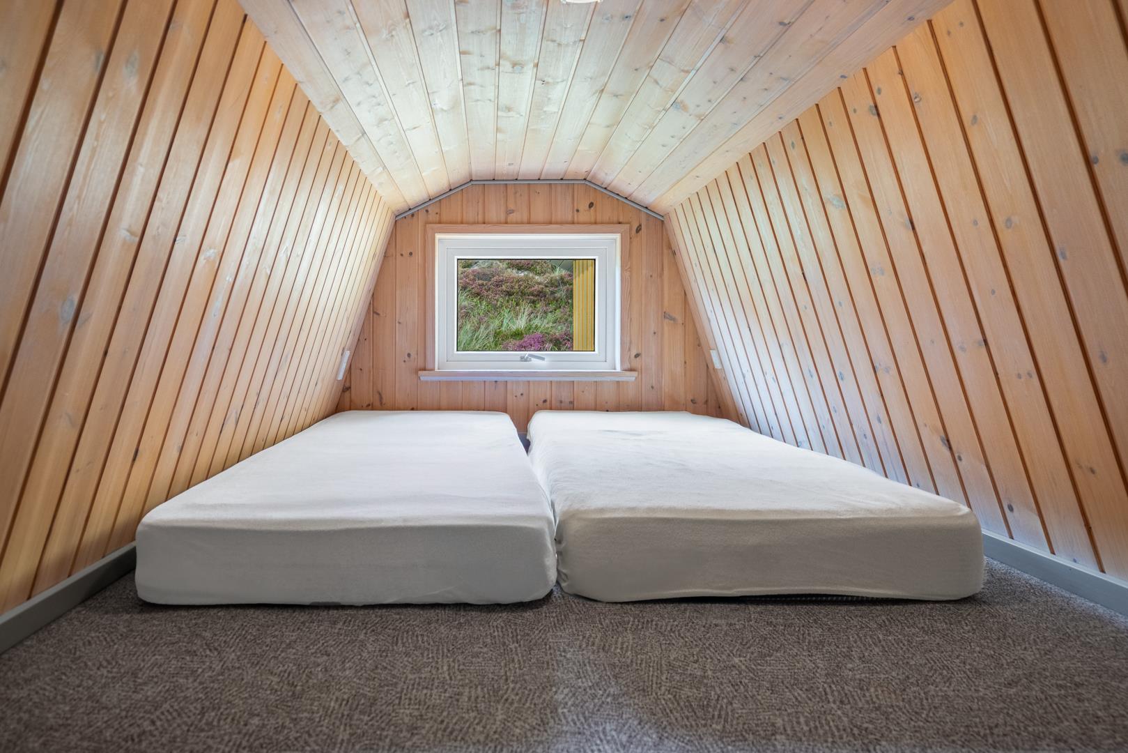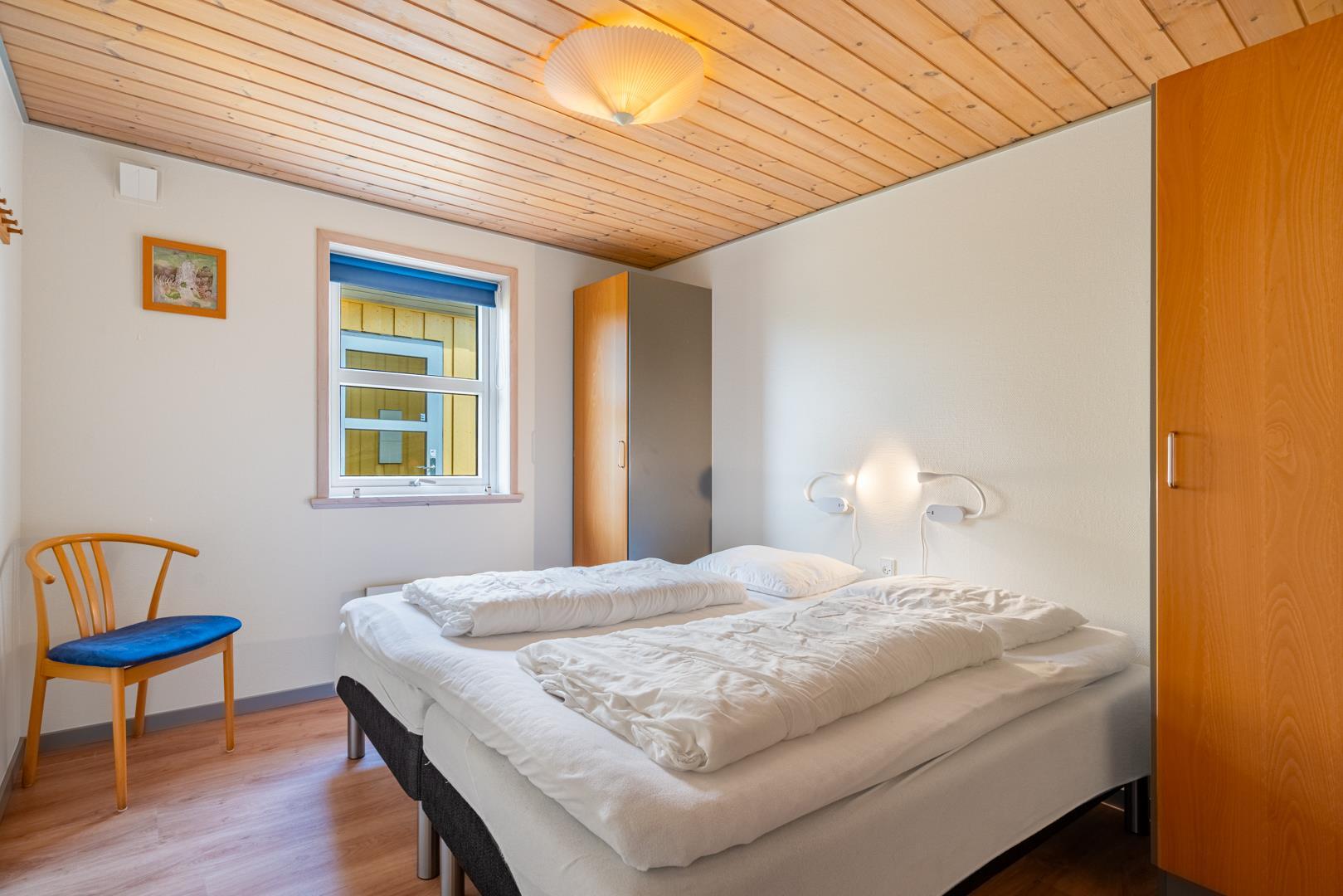 Es gibt zwei Schlafzimmer mit Doppelbetten 180x200 cm (1 Matratze) und 160x200 cm (1 Matratze), ein Zimmer mit zwei Etagenbetten mit Bettgrößen von 80x200 cm und zwei Schlafplätze auf dem Dachboden.