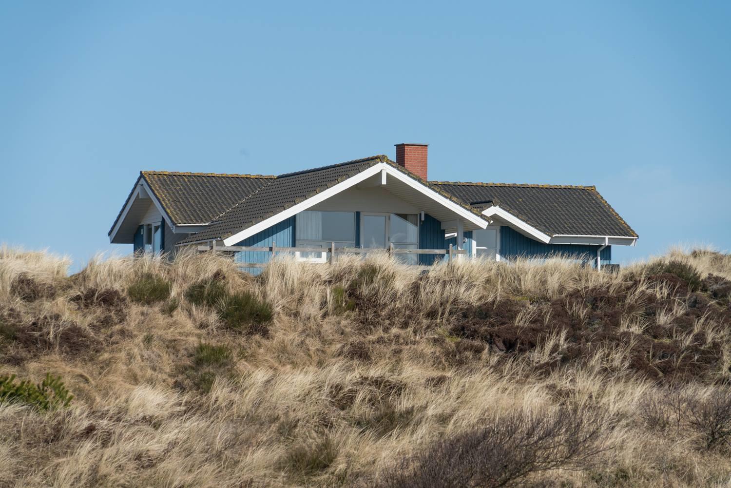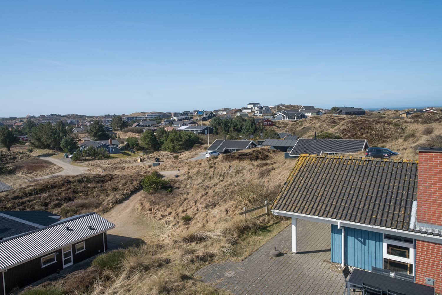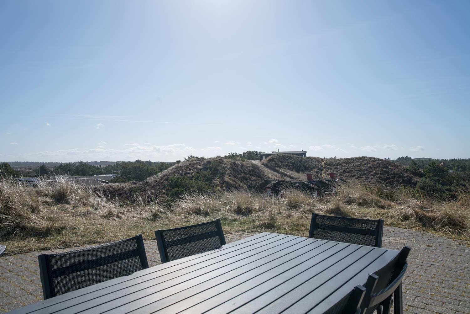 Auf einem Dünengipfel mit einer prachtvollen, fantastischen Aussicht mit Blick über den Ort der Lyngbo's Heide und Blåbjerg Plantage liegt dieses schöne Ferienhaus.