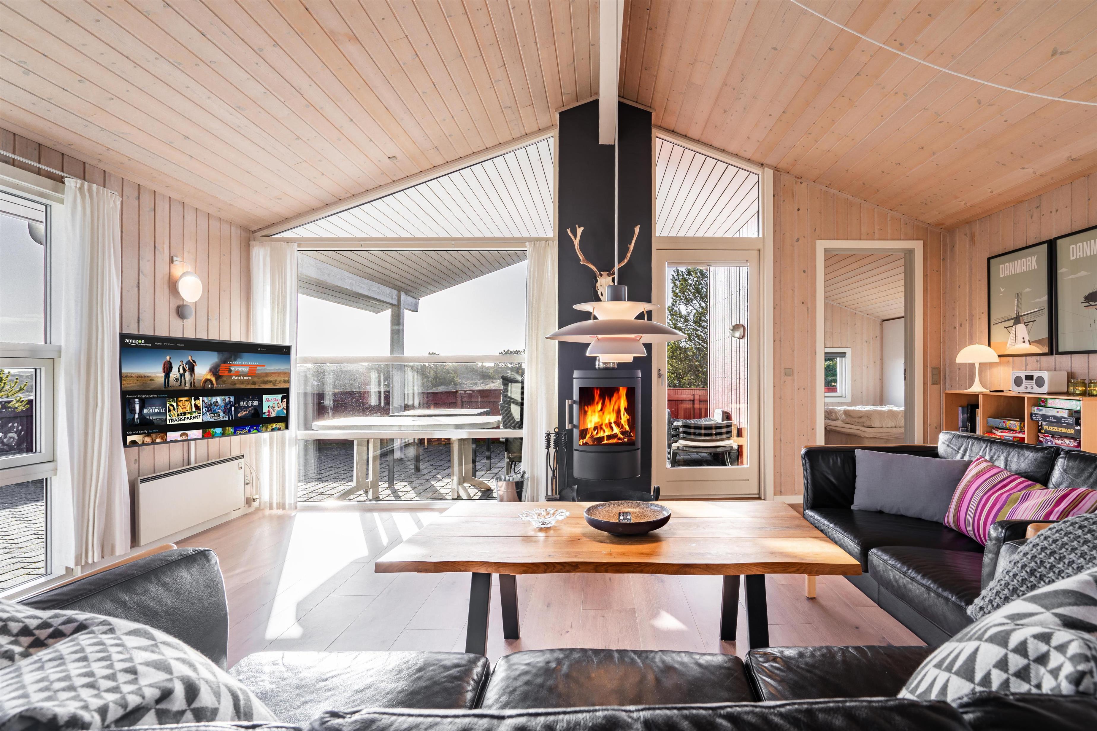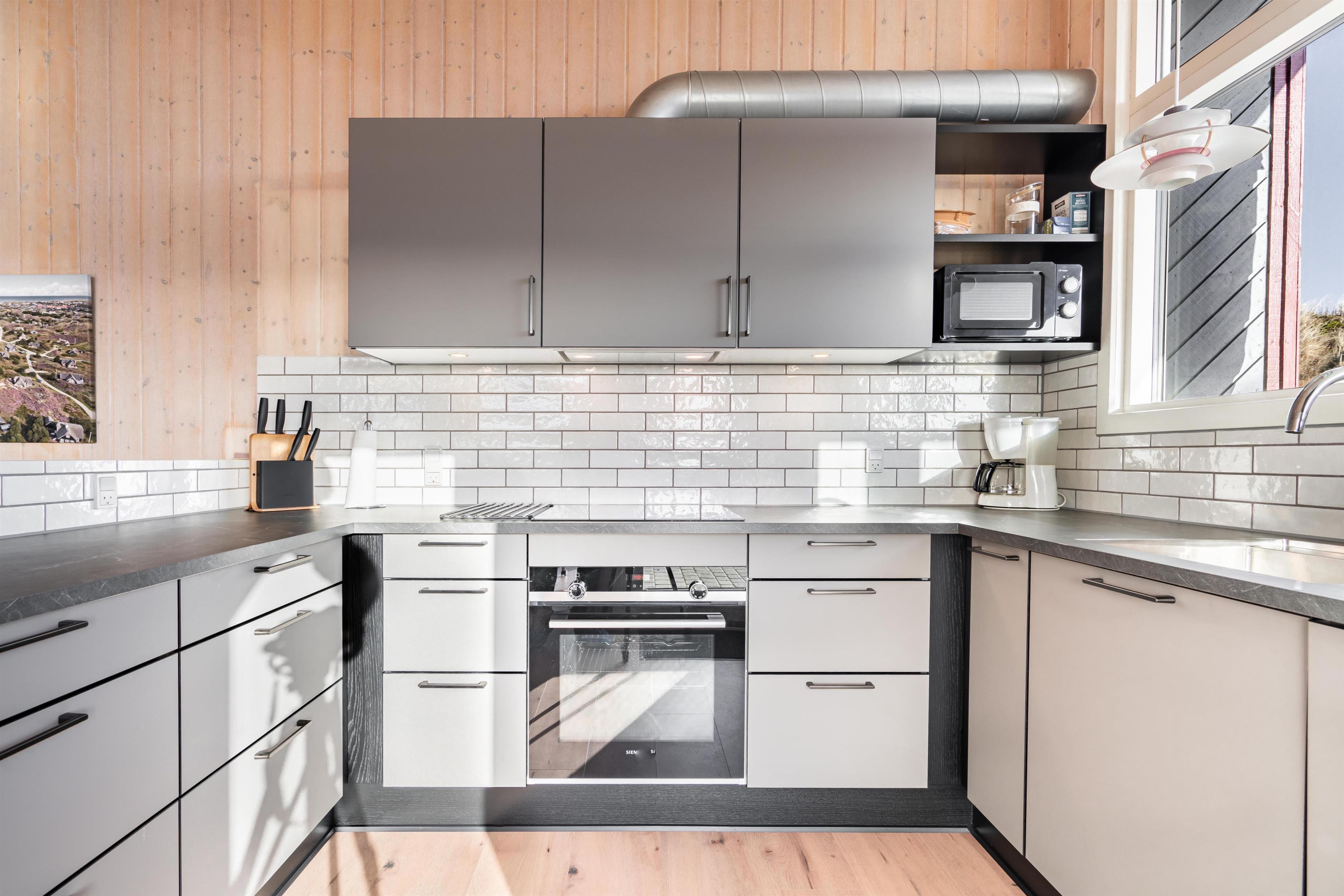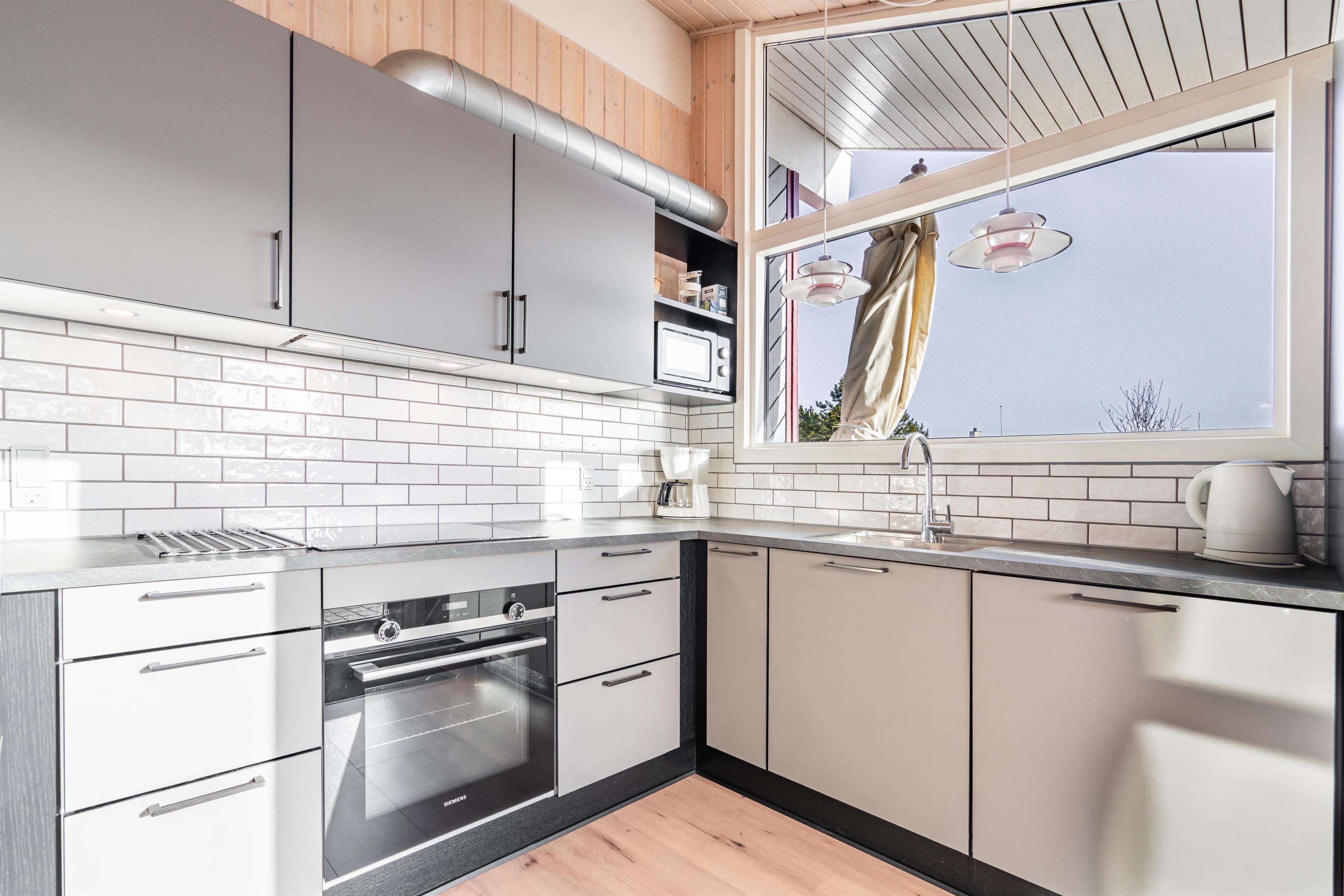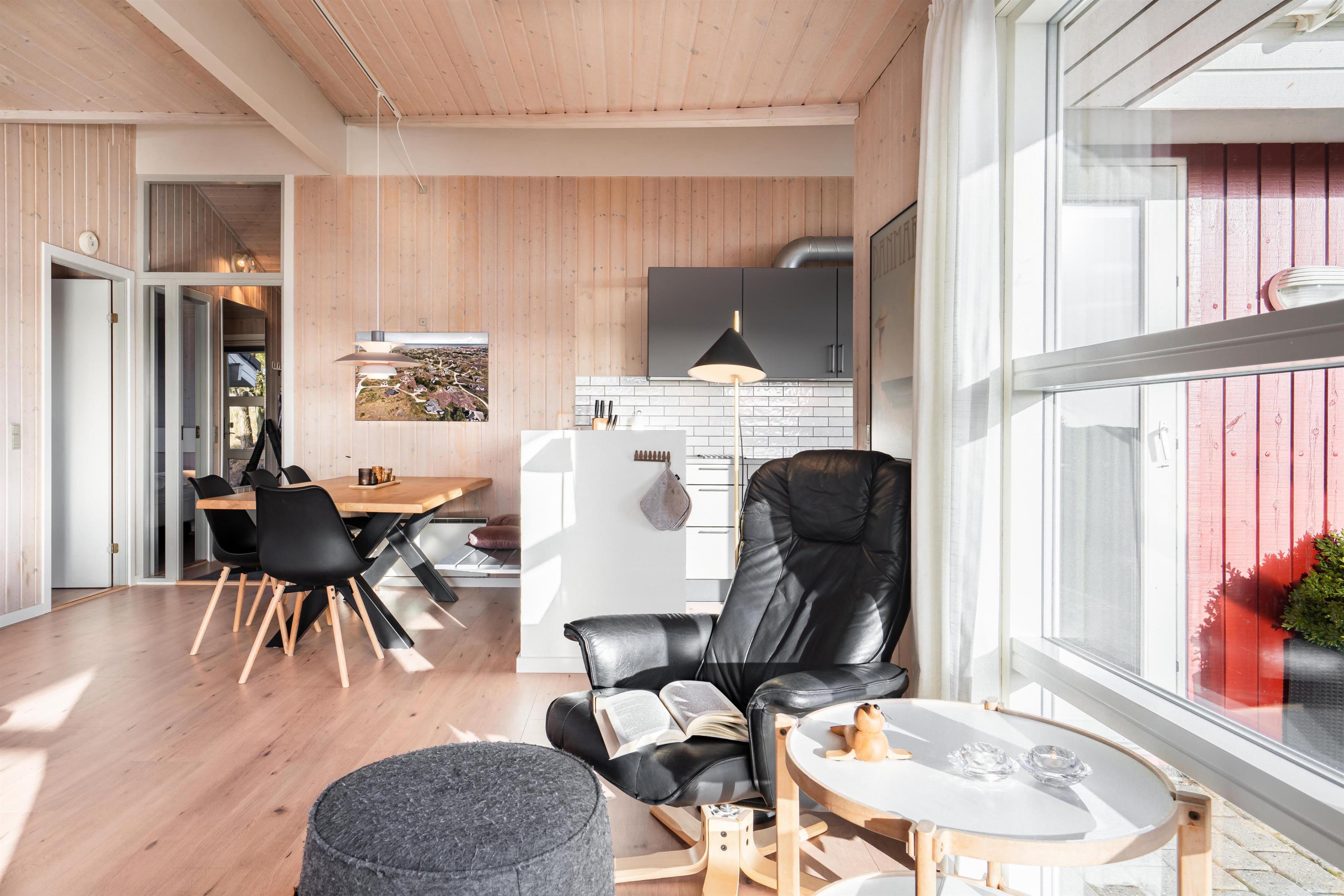2021 sind eine neue tolle Küche und neue Holzböden hinzugekommen. Das Haus hat ein großes Fenster, das viel Licht in das Wohnzimmer bringt, welches mit guten und schönen Möbeln und einem Holzofen eingerichtet ist.