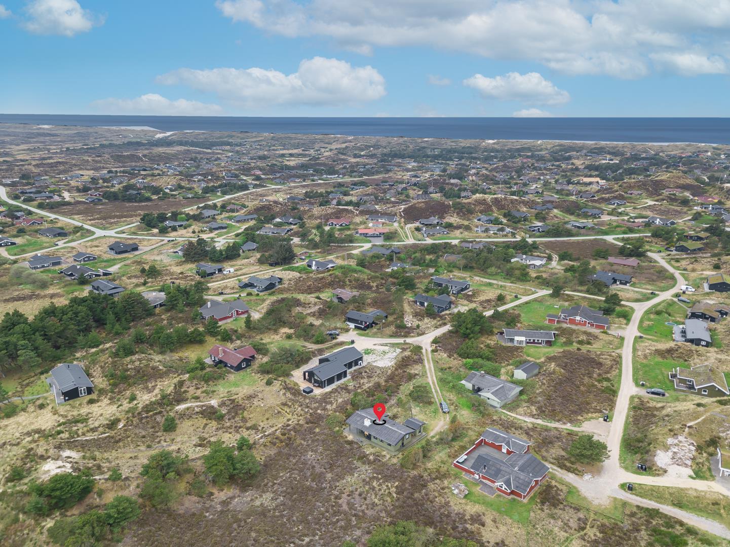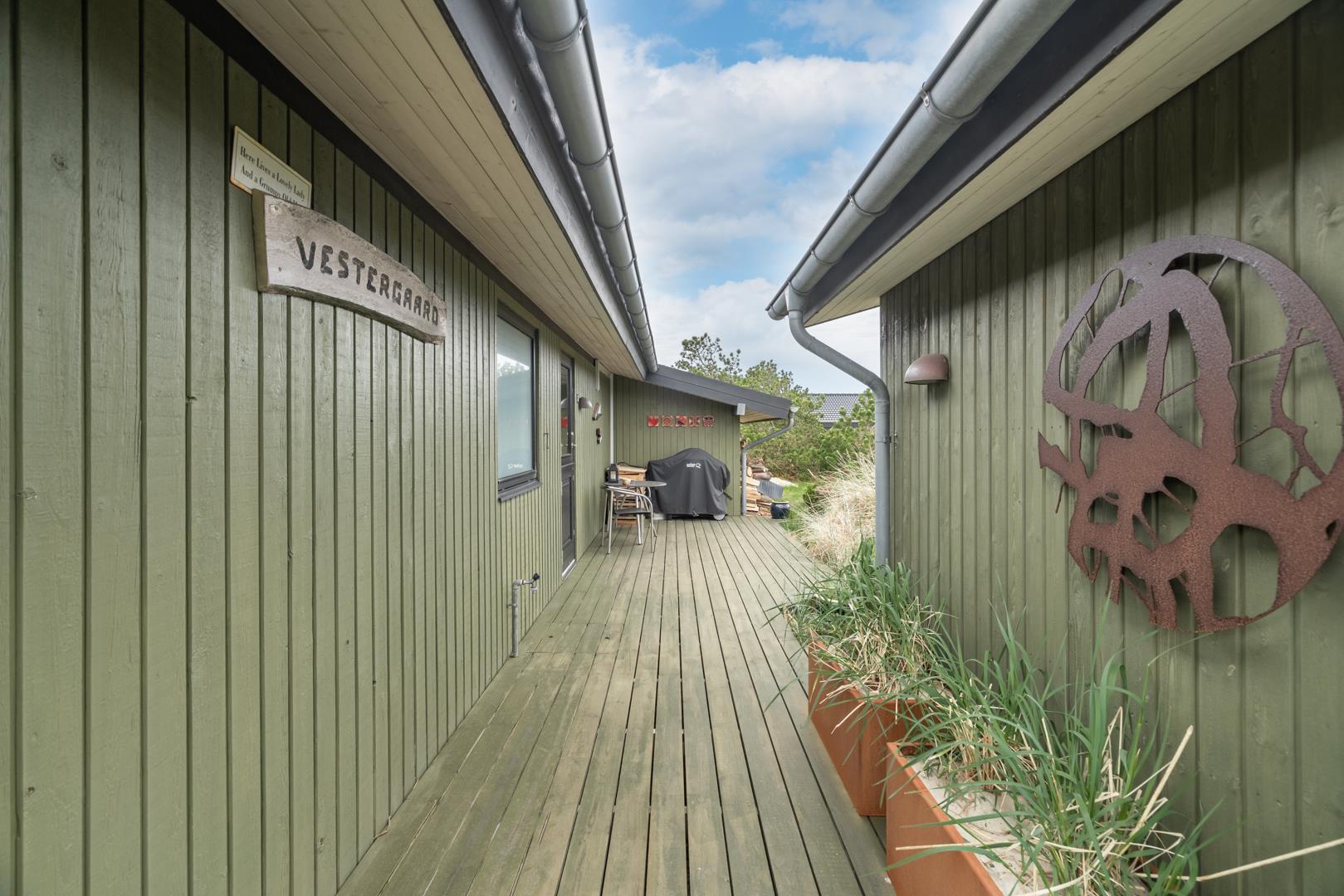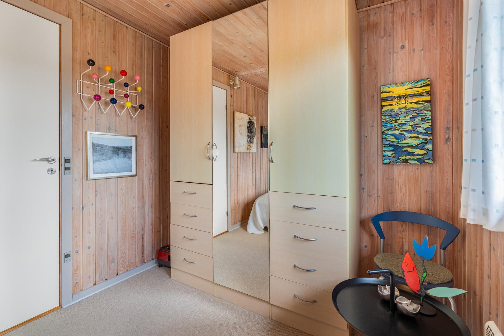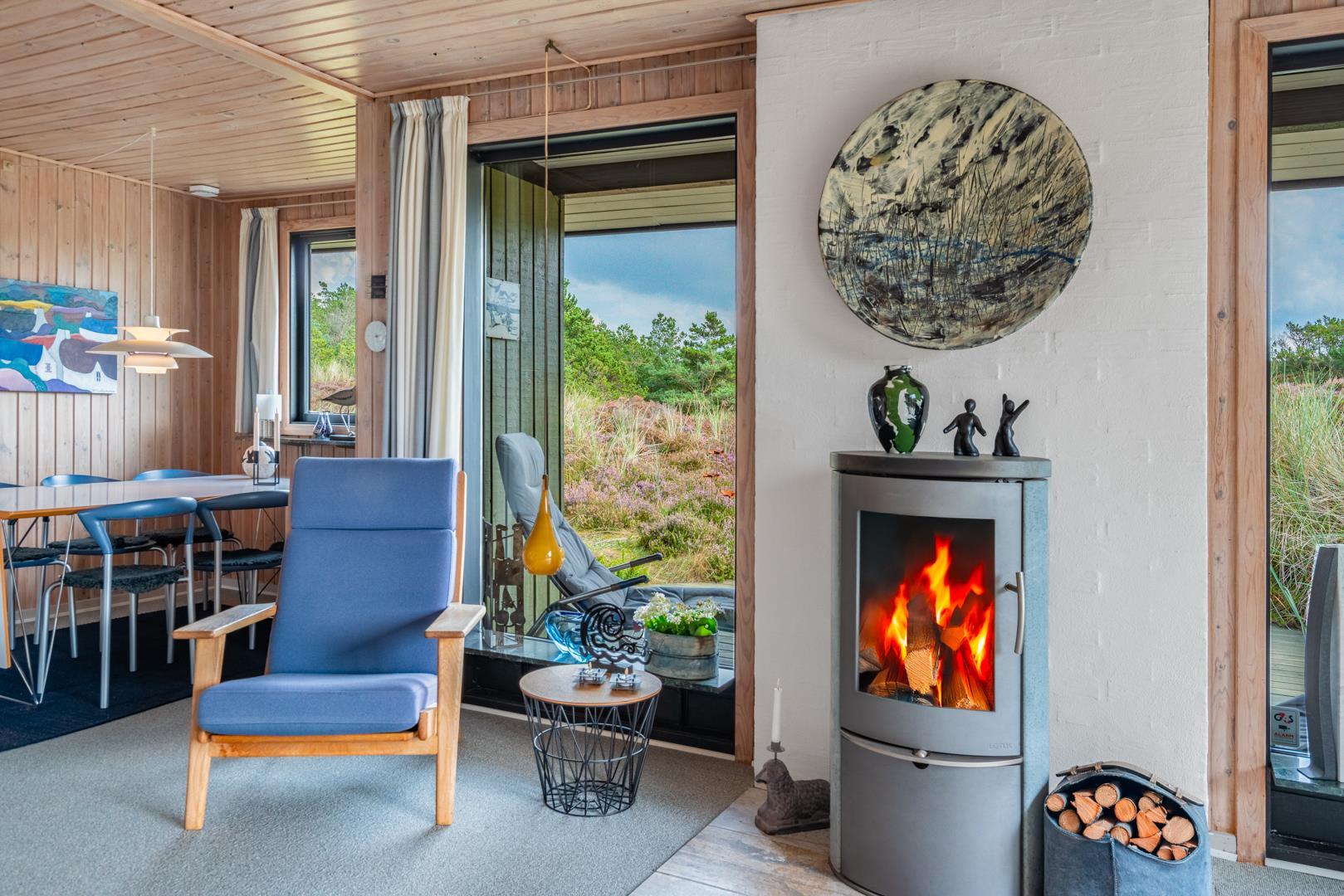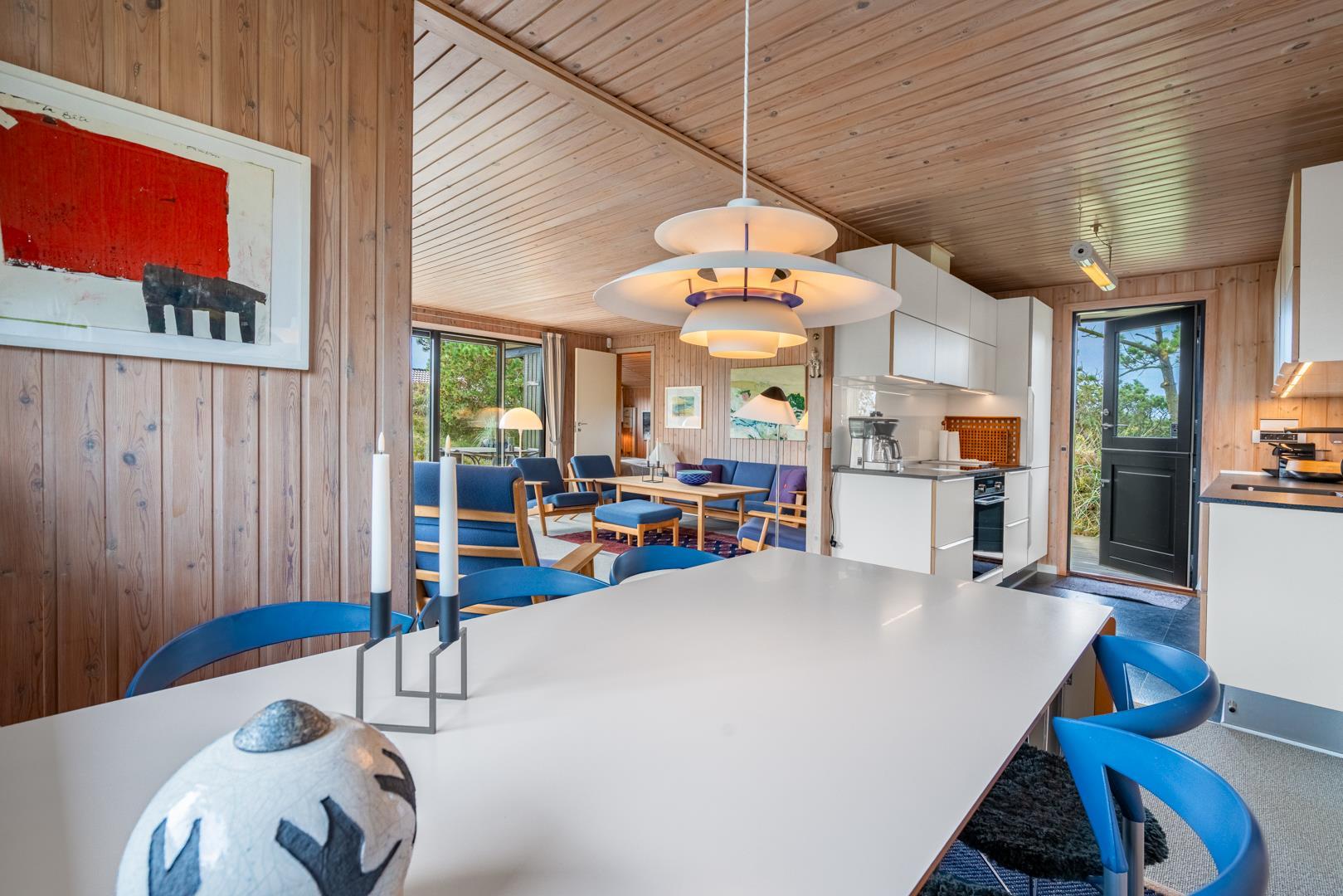 Dieses private, geschmackvoll eingerichtete Ferienhaus befindet sich auf einem ruhigen, hügeligen Naturgrundstück nahe dem Naturschutzgebiet. Das Haus liegt etwas abseits des Weges. Die ungestörte, teilweise überdachte Terrasse mit toller Aussicht über die mit Heide bewachsenen Dünen ist vom Wohnbereich aus zugänglich. Bettengrösse: Doppelbett 180x200 cm. (2 Matratzen), Einzelbetten 85x200 cm., dobbeltbett 140 x 200