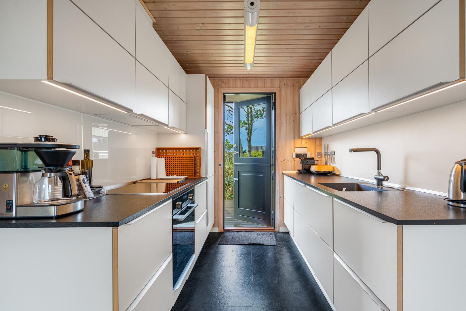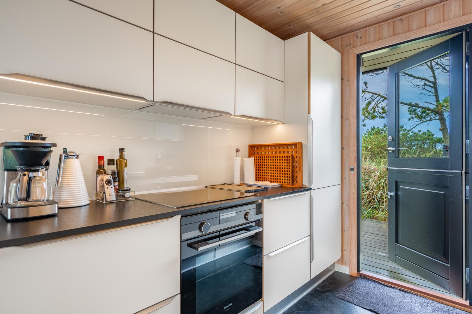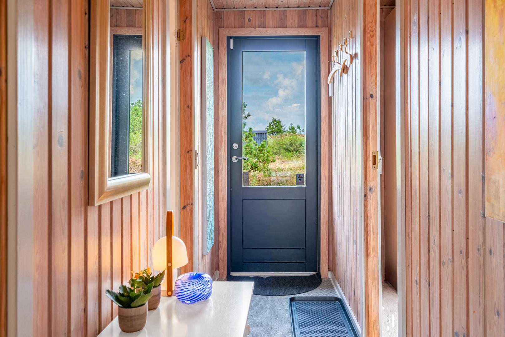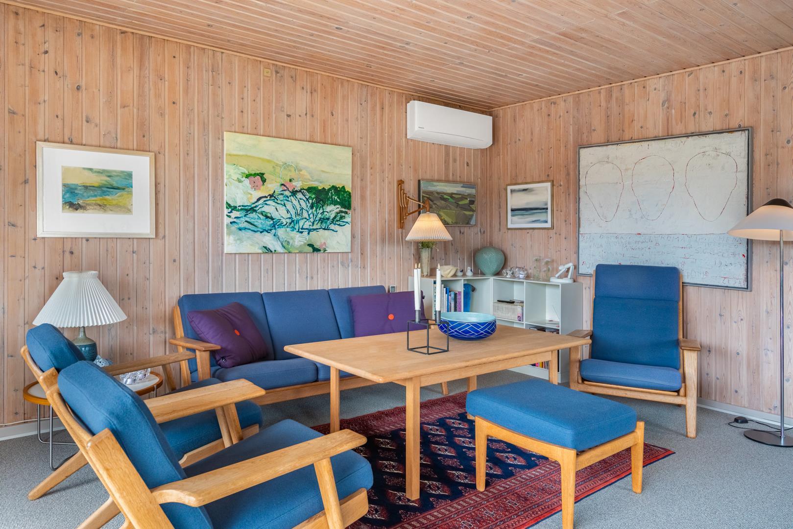 Dieses private, geschmackvoll eingerichtete Ferienhaus befindet sich auf einem ruhigen, hügeligen Naturgrundstück nahe dem Naturschutzgebiet. Das Haus liegt etwas abseits des Weges. Die ungestörte, teilweise überdachte Terrasse mit toller Aussicht über die mit Heide bewachsenen Dünen ist vom Wohnbereich aus zugänglich. Bettengrösse: Doppelbett 180x200 cm. (2 Matratzen), Einzelbetten 85x200 cm., dobbeltbett 140 x 200