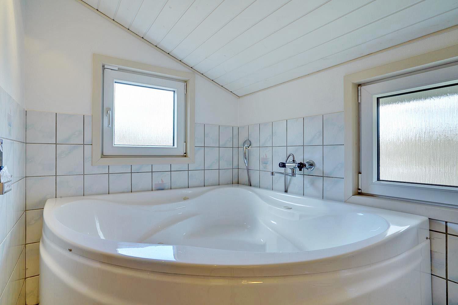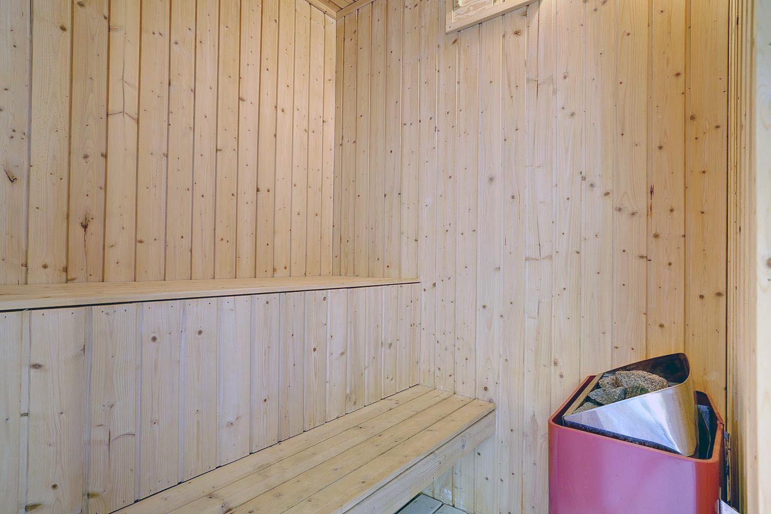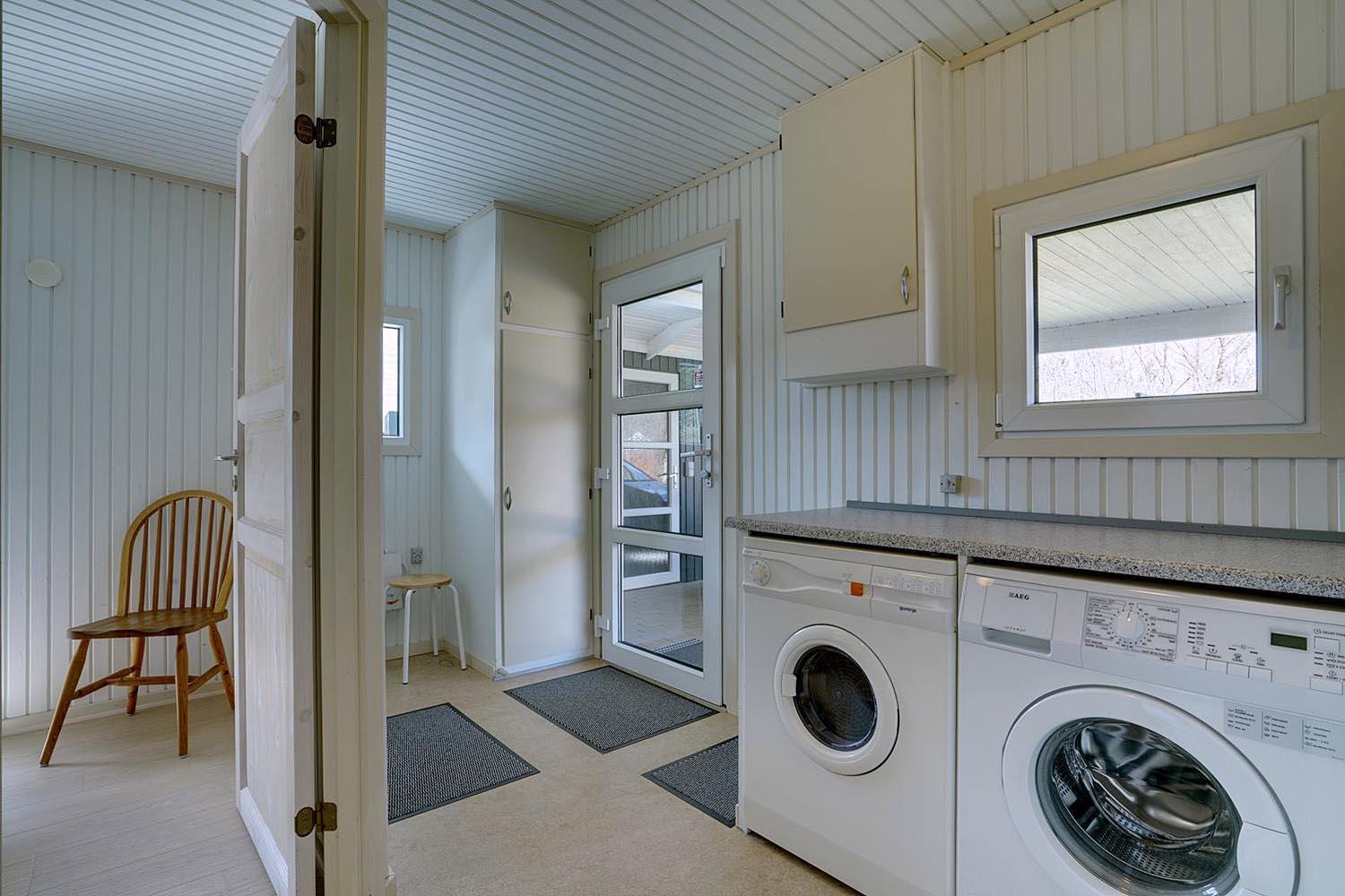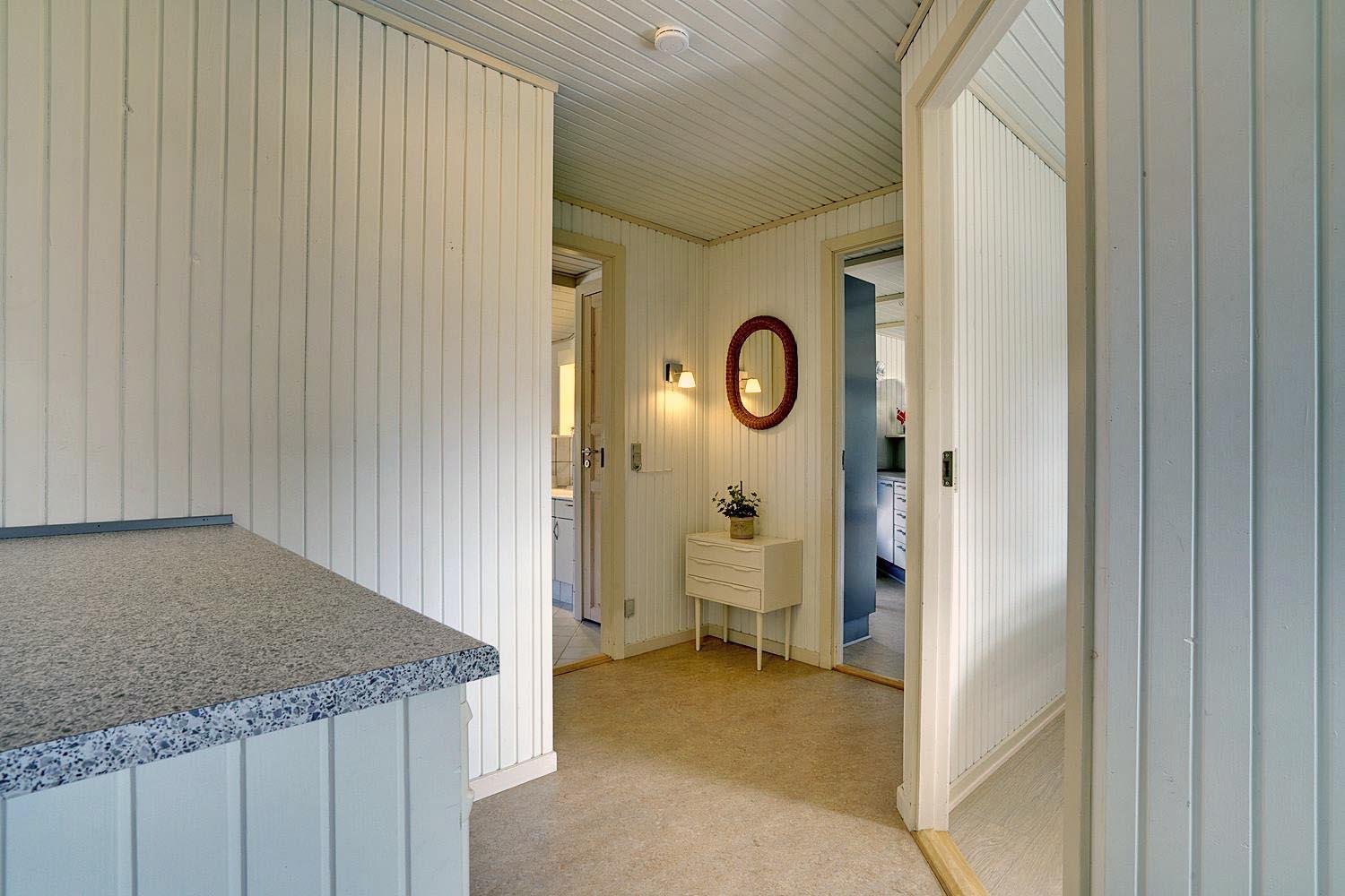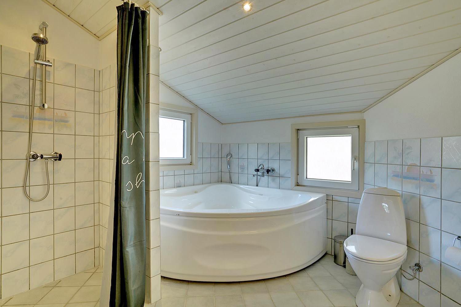 Schönes helles und gepflegtes Ferienhaus mit mehreren Holzterrassen. Das Haus liegt auf einem geschützten Waldgrund umgeben von Bäumen und mit viel Platz für Ballspiele. Hübsche und gut ausgestattete Küche in offener Verbindung zum Wohnraum. Vom großen Wohnraum gelang man auf zwei große Terrassen, von denen die eine teilweise überdacht ist. Auch von zwei Schlafräumen aus gelangt man auf die Terrassen. Großes Badezimmer mit Whirlpool, Duschnische und kleinerer Sauna. Carport mit Abstellraum für Fahrräder und Anderes.